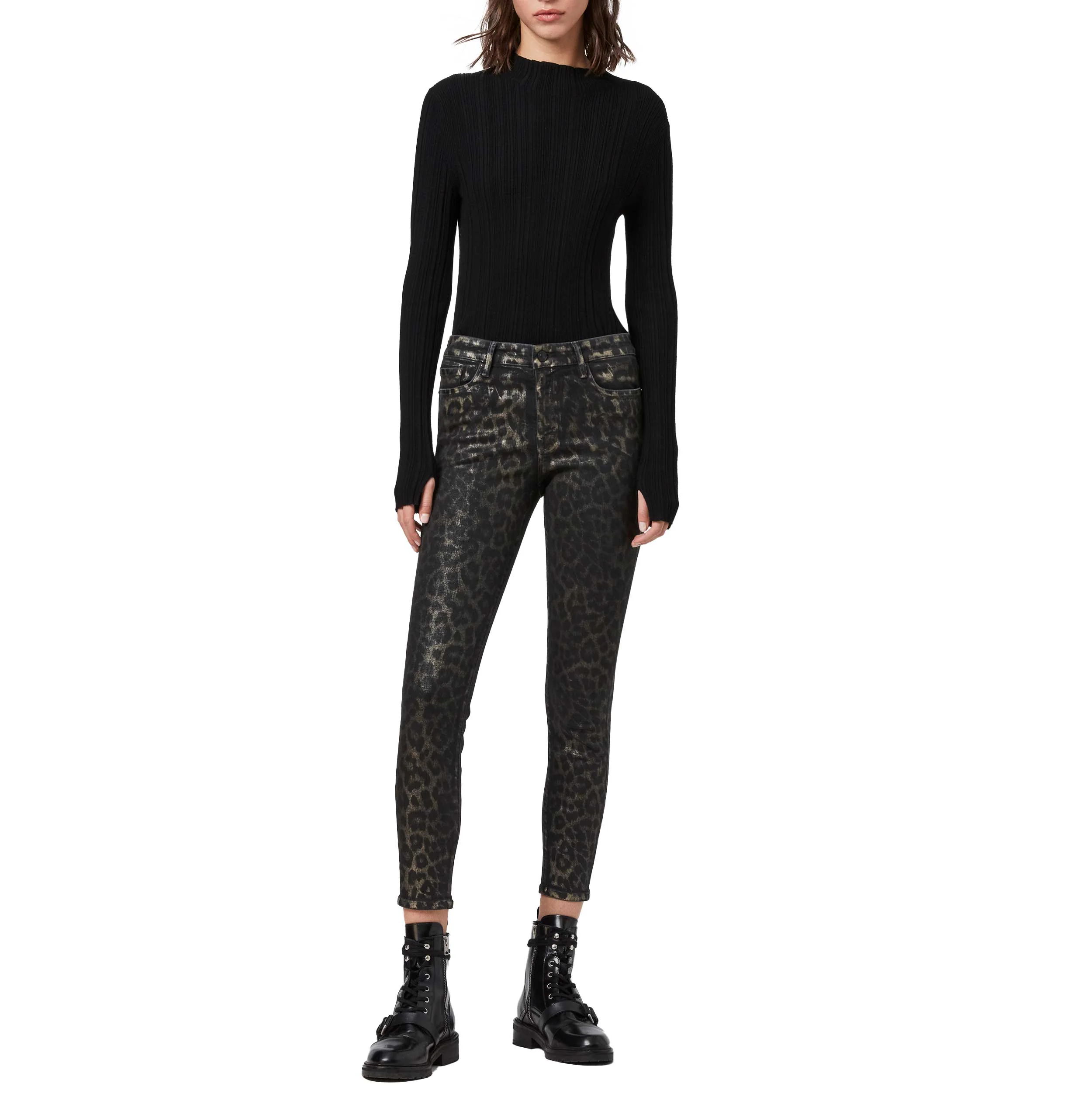JEANS ALLSAINTS DE CORTE SLIM FIT CON DISEÑO ANIMAL PRINT, CINCO BOLSILLOS, TRABILLAS PARA CINTURÓN, MARCA ALLSAINTS. COMPOSICIÓN: 91% ALGODÓN, 5% POLIÉSTER, 4% ELASTANO. INSTRUCCIONES DE LAVADO: LAVADO A MANO.