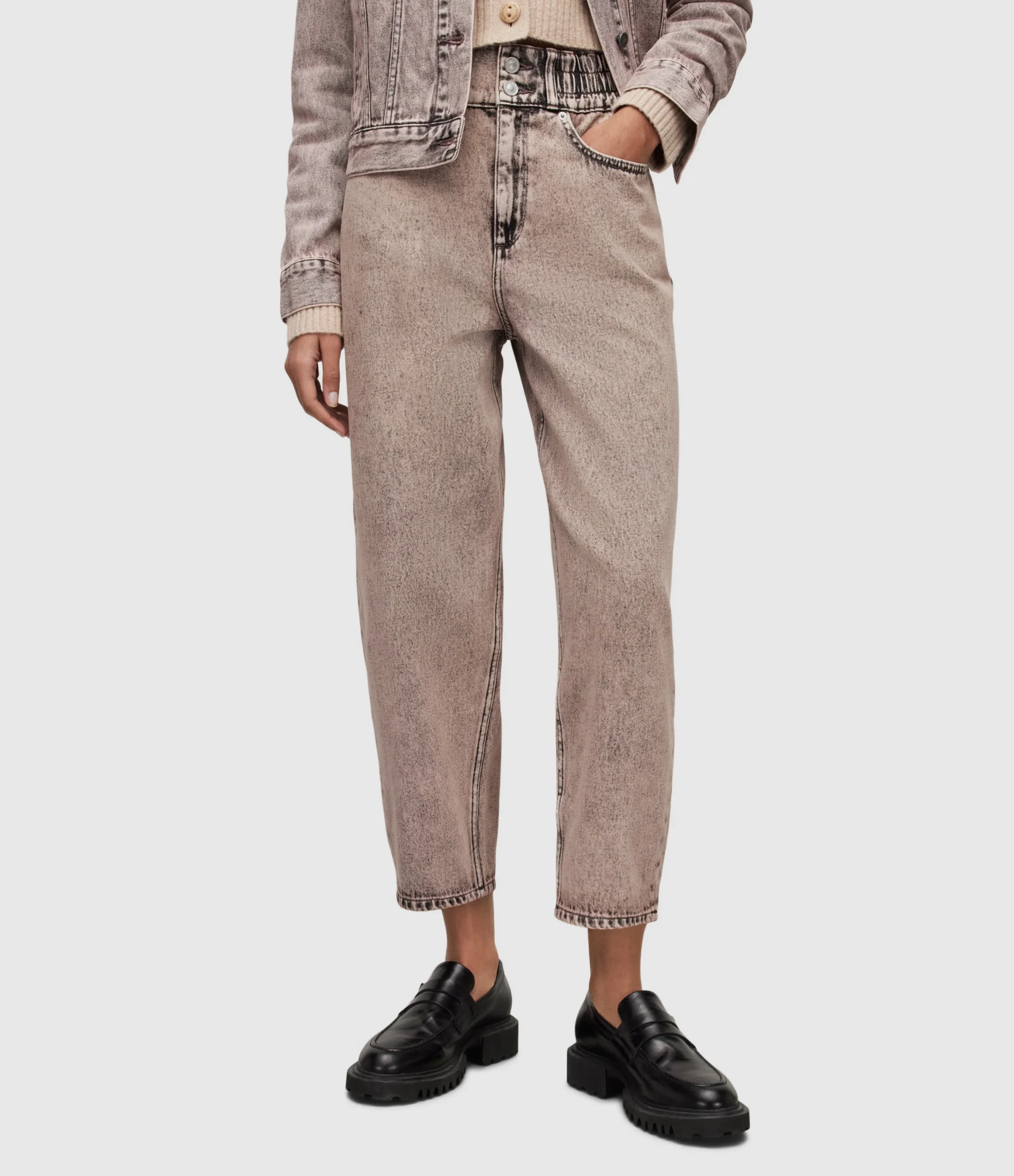 Jeans Hailey Rosa para mujer, marca AllSaints. COMPOSICIÓN Y LAVADO: Consultar etiqueta interna.