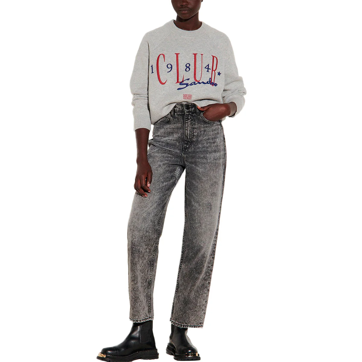 JEANS LONE GRIS, MARCA SANDRO. COMPOSICIÓN: REVISAR ETIQUETA INTERNA. INSTRUCCIONES DE LAVADO: R5