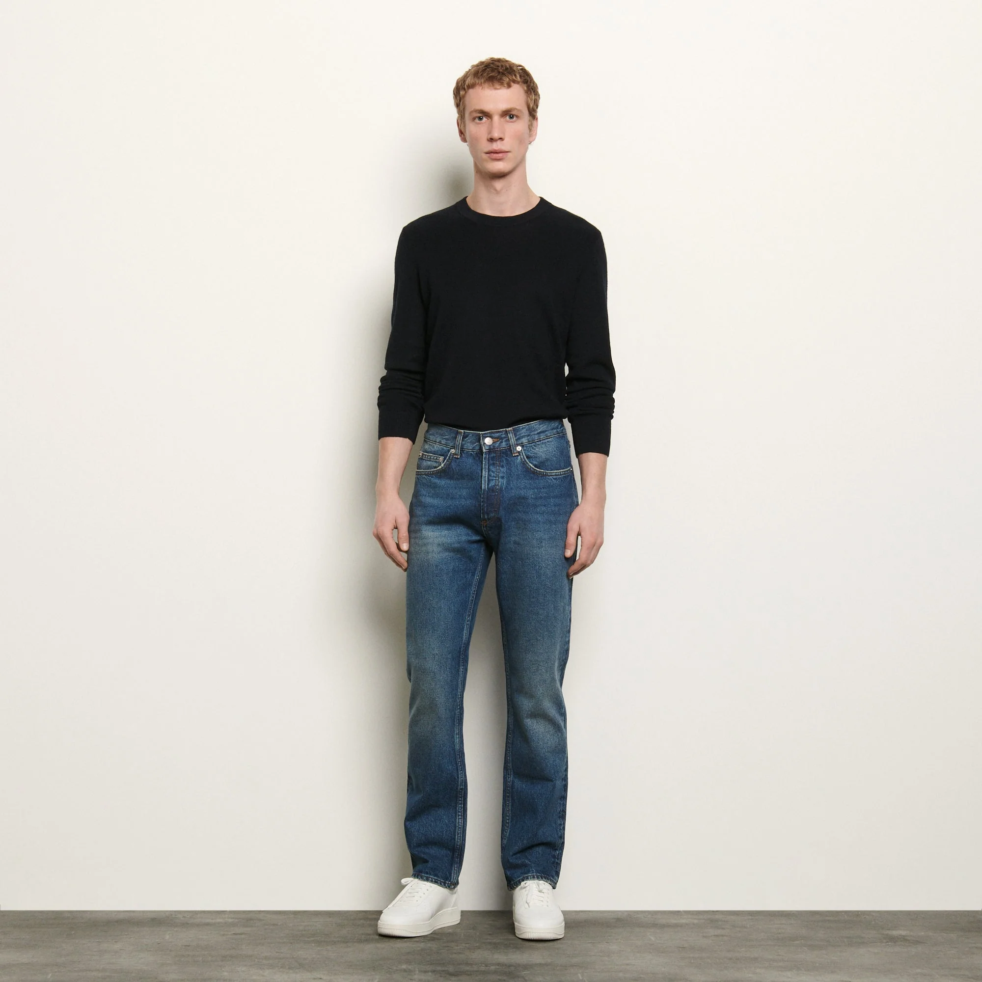 JEANS REGULAR WASHED AZUL DENIM, MARCA SANDRO. COMPOSICIÓN: REVISAR ETIQUETA INTERNA. INSTRUCCIONES DE LAVADO: R5