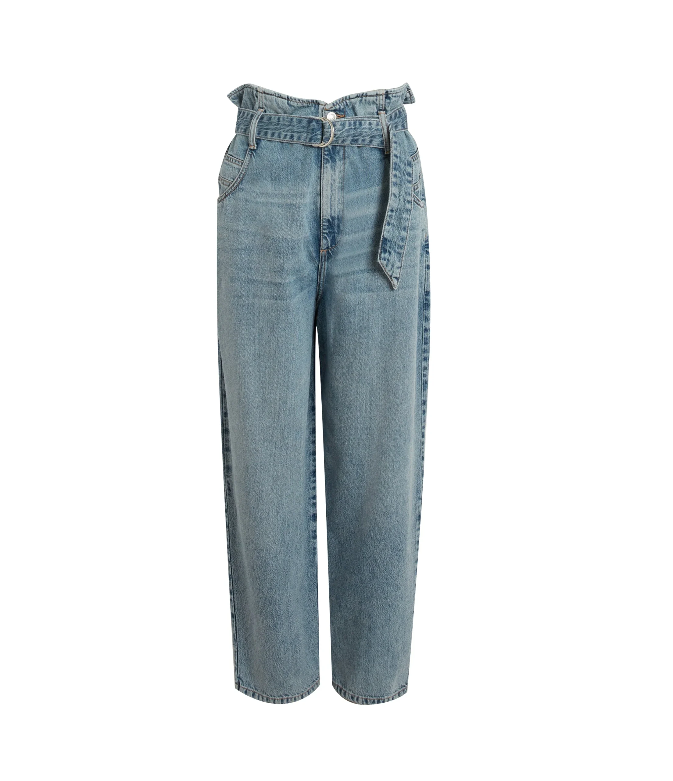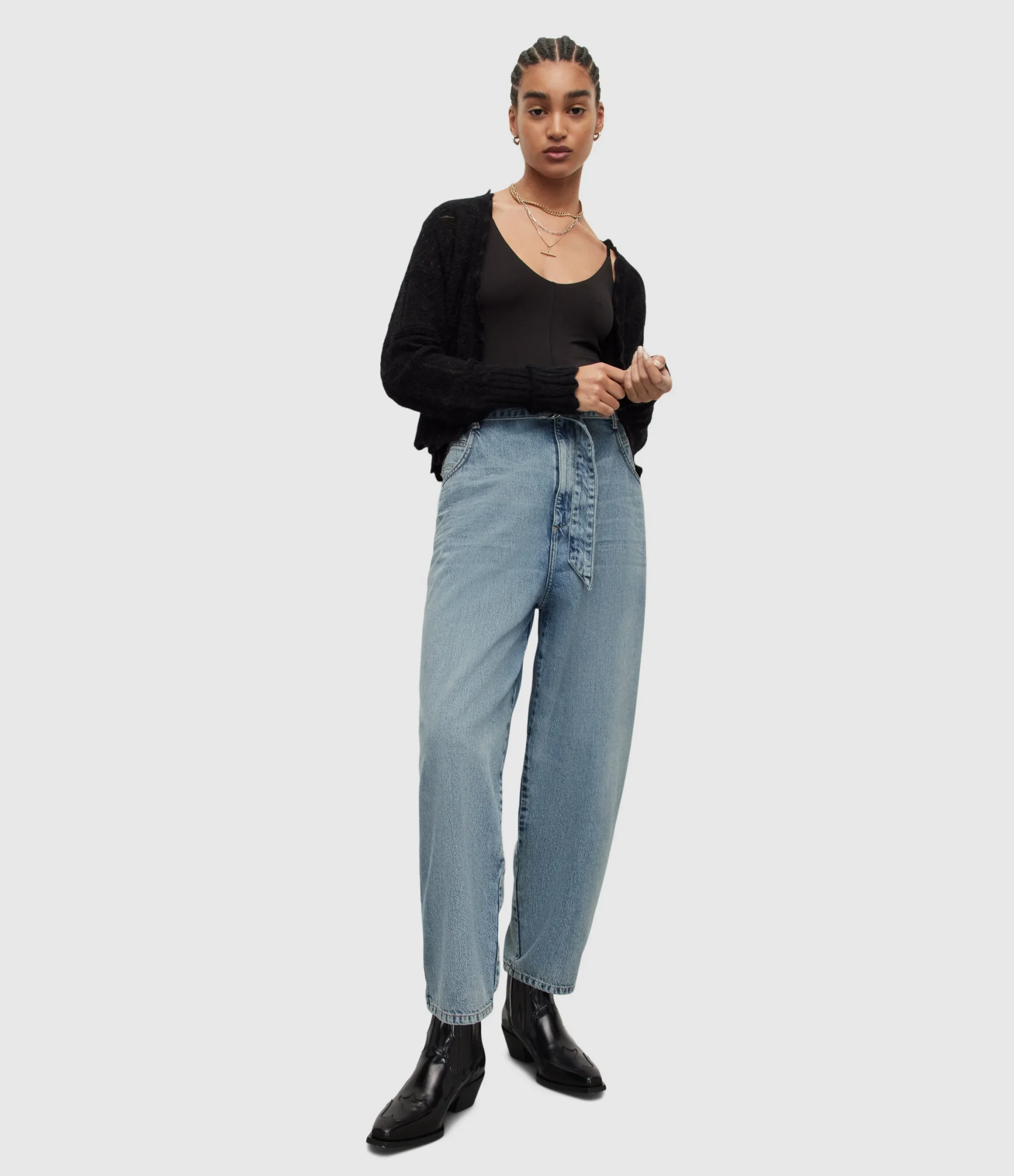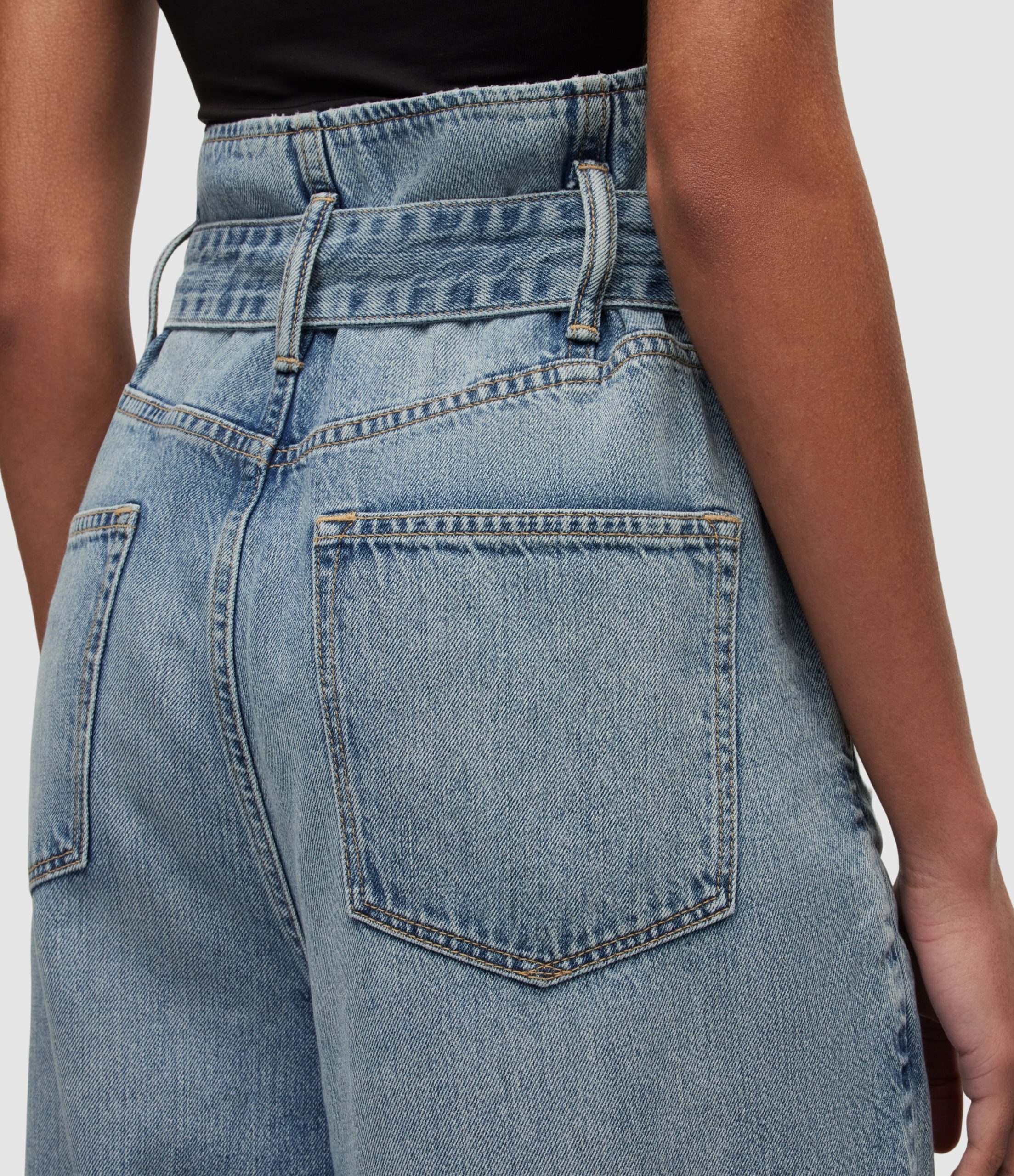 Jeans Sammy Paperbag Azul Medio para mujer, marca AllSaints. COMPOSICIÓN Y LAVADO: Consultar etiqueta interna.