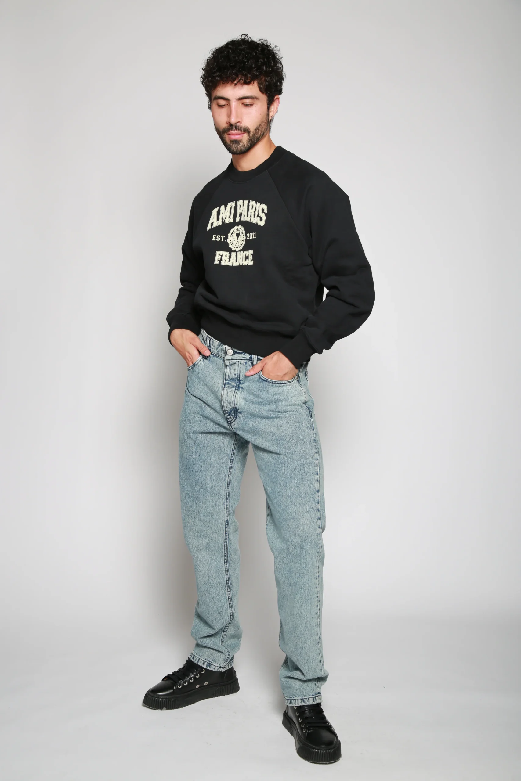 Jeans Straight Fit Azul para hombre, marca AMI Paris. COMPOSICIÓN Y LAVADO: Consultar etiqueta interna.