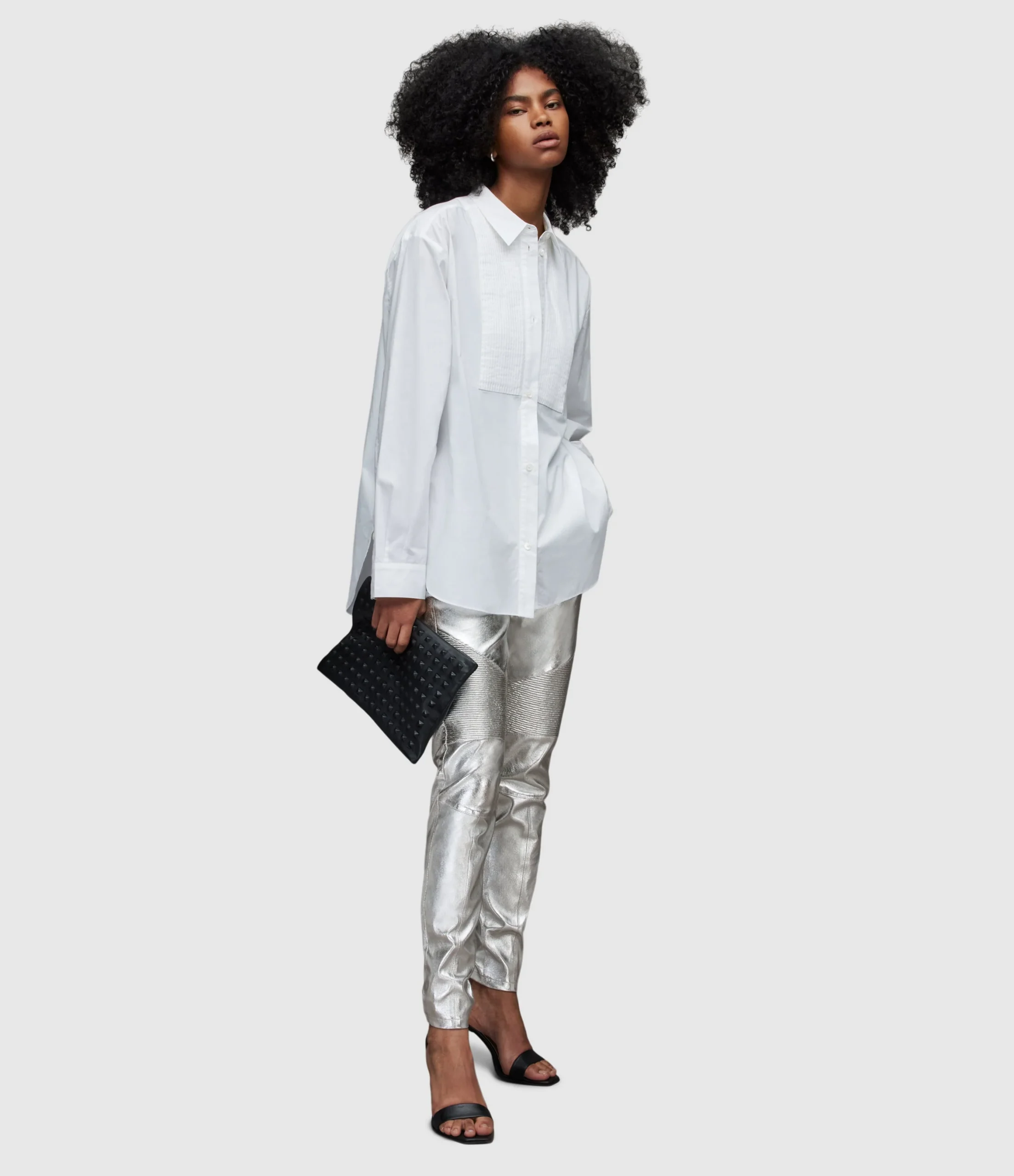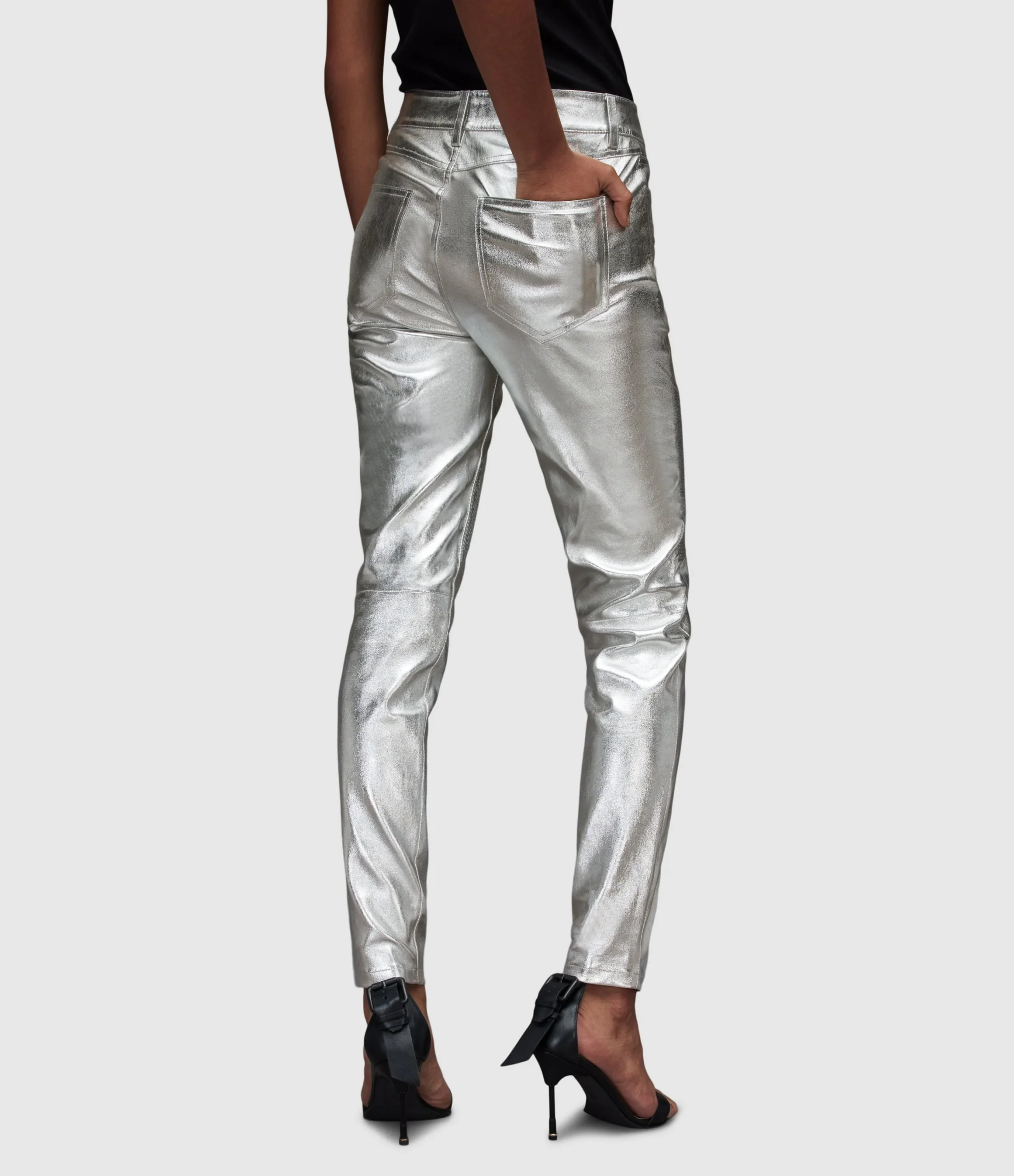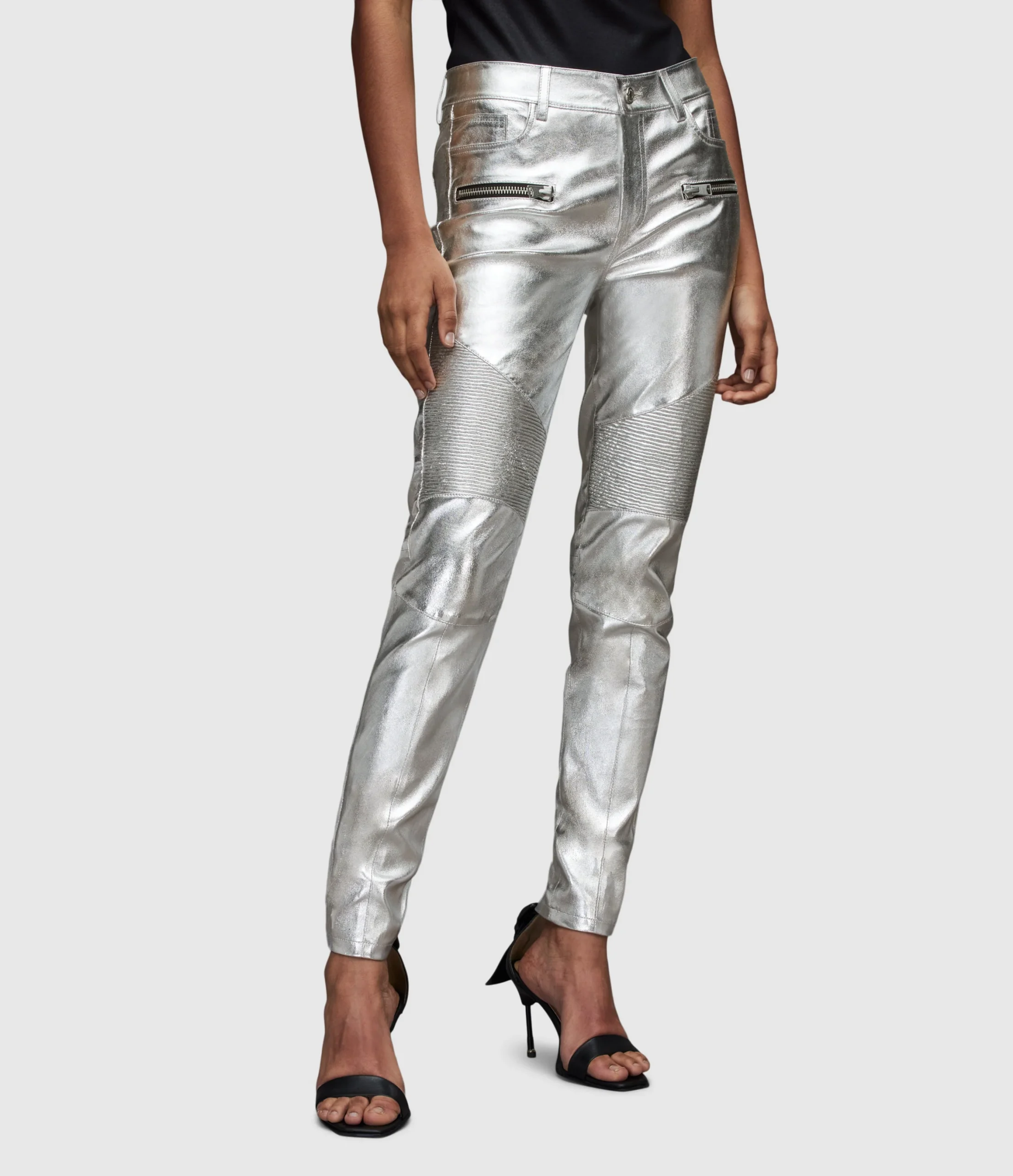Jeans Suri Metálico para mujer, marca AllSaints, estilo biker. COMPOSICIÓN Y LAVADO: Consultar etiqueta interna.