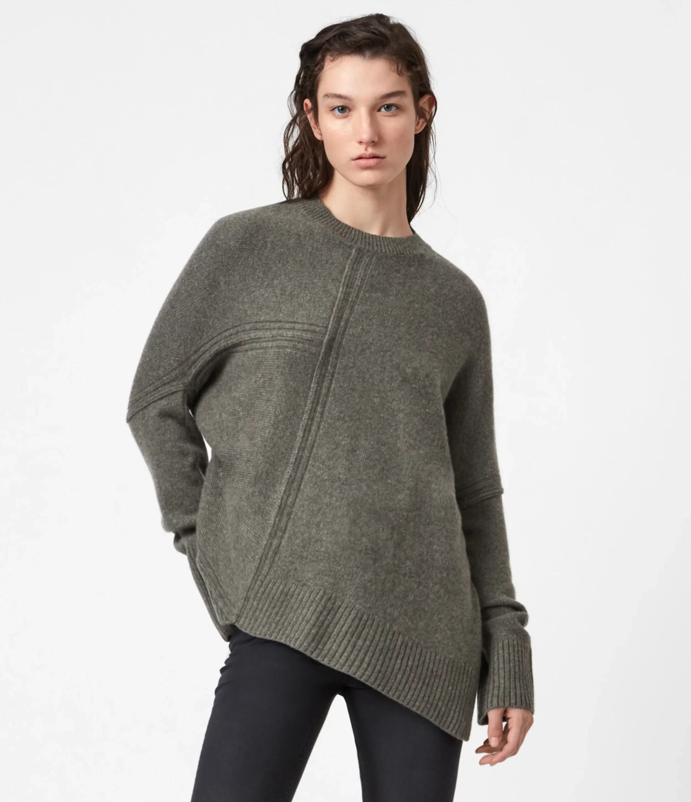 Jumper Lock Cashmere Khaki Green, marca AllSaints. Composición: 70% CASHMERE (RECYCLED) 25% CASHMERE 5% WOOL