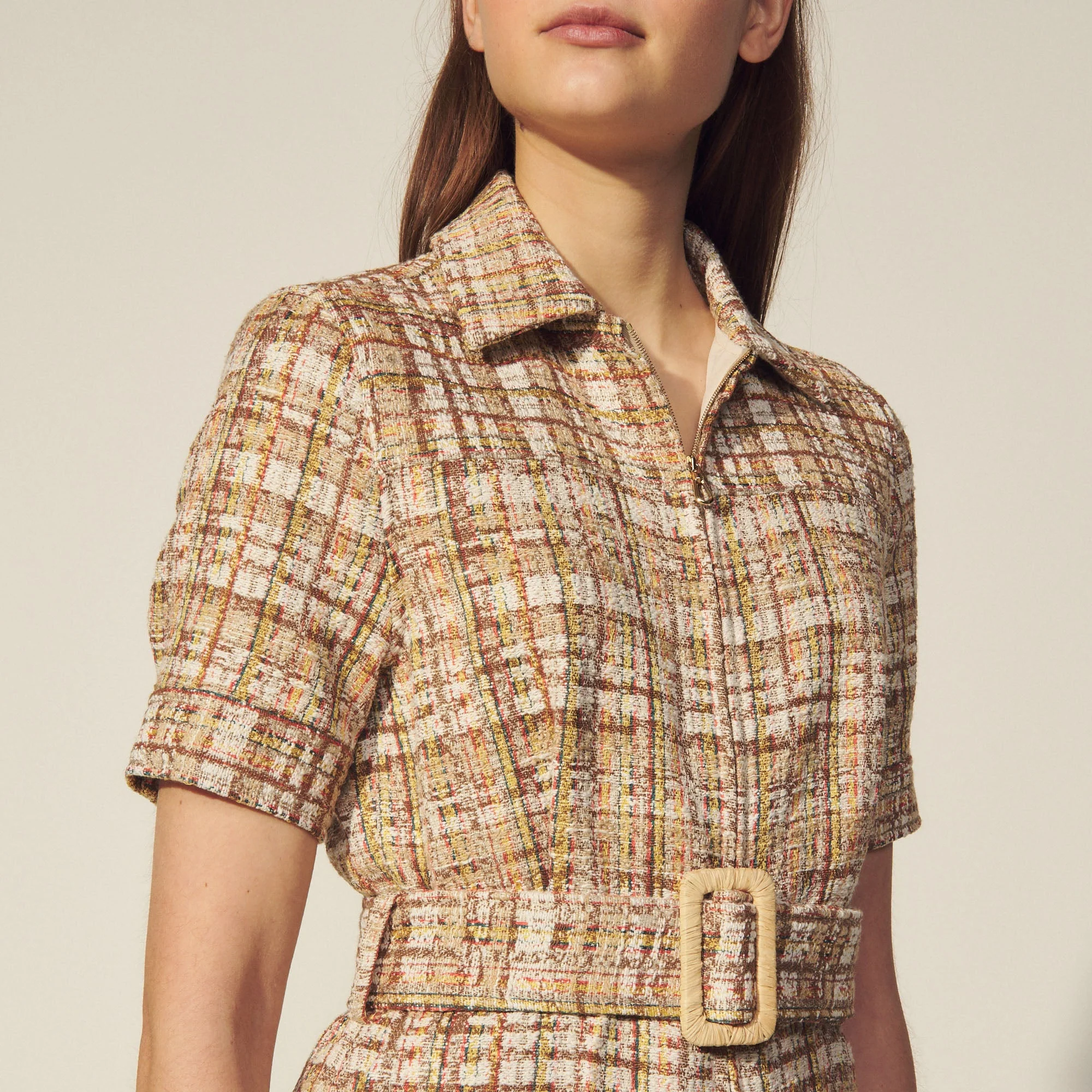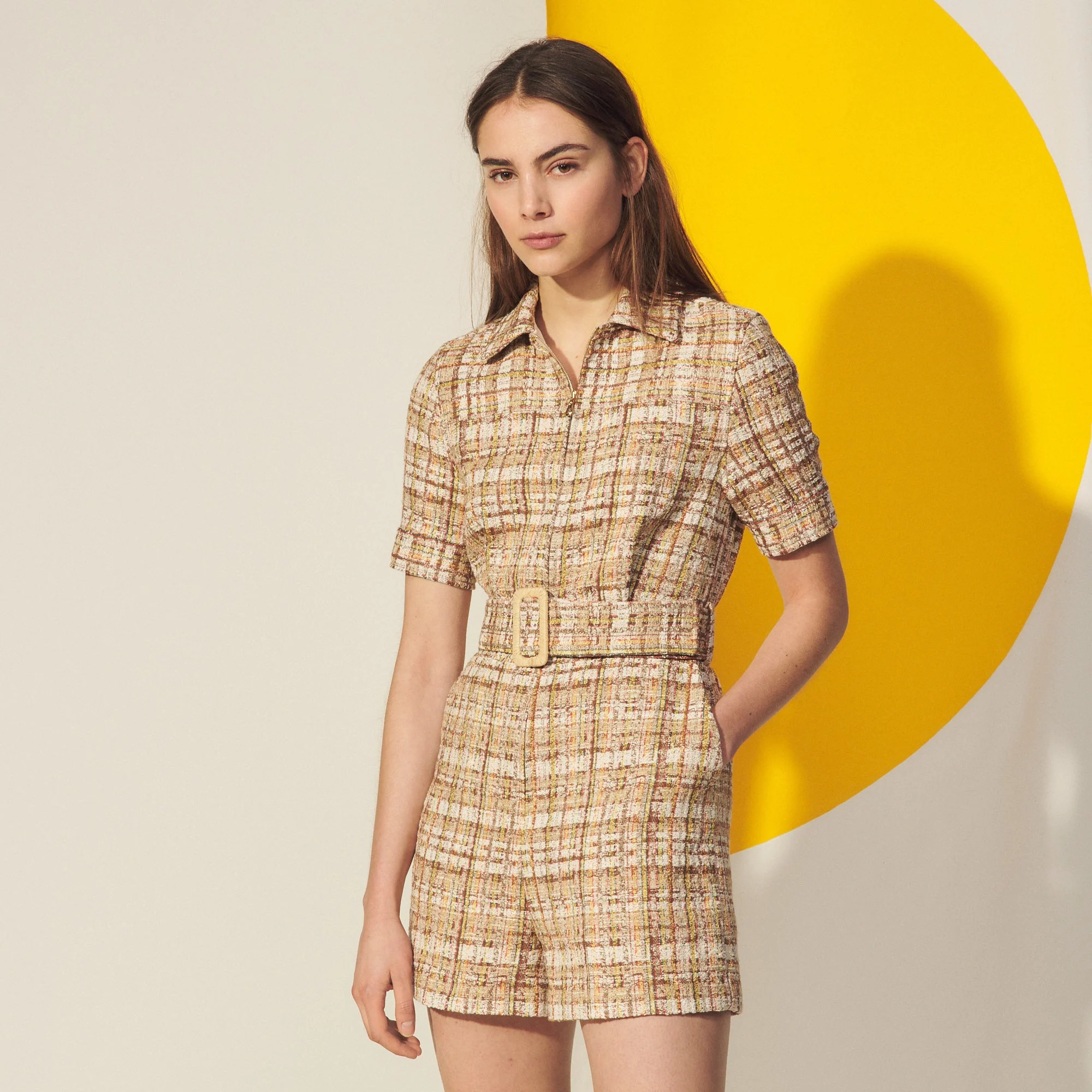 Mono Corto De Mujer Sandro • Mono Corto De Tweed • Cuello Camisero • Inserto En La Anchura De Espaldas, En Las Partes Delantera Y Trasera • Cremallera En El Centro De La Parte Delantera • Bolsillos Italianos • Cinturón Extraíble Con Hebilla Rectangular • Mono Corto Completamente Forrado • La Modelo Lleva La Talla 36Référence : Sfpco00122 Composición Tejido Principal: 62% Algodón, 23% Poliéster, 13% Acrílico, 2% Poliamida / Forro: 100% Poliéster