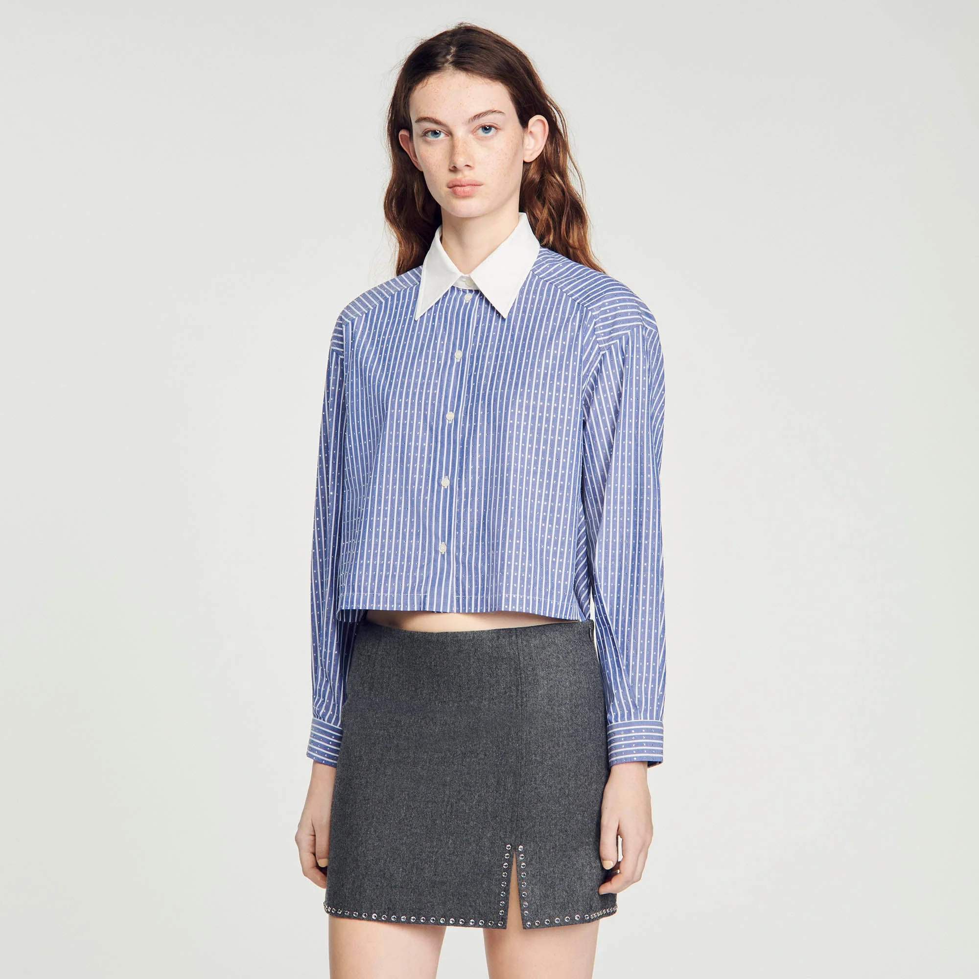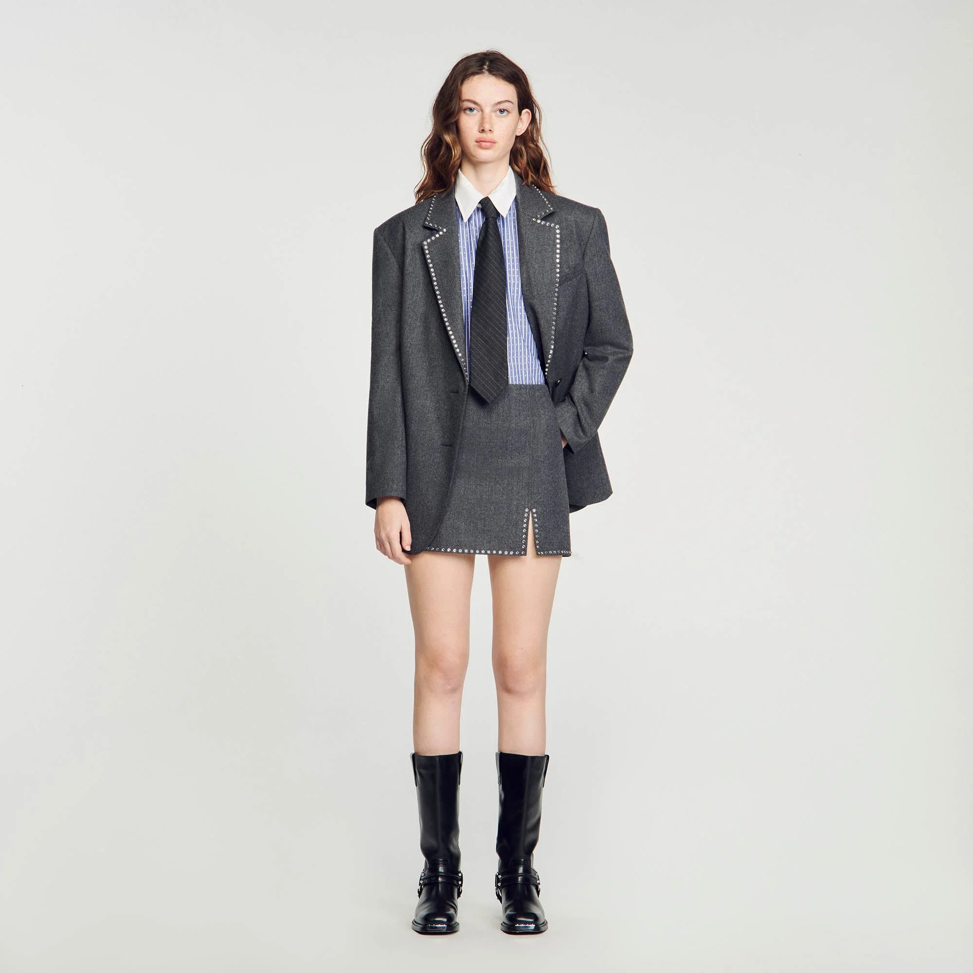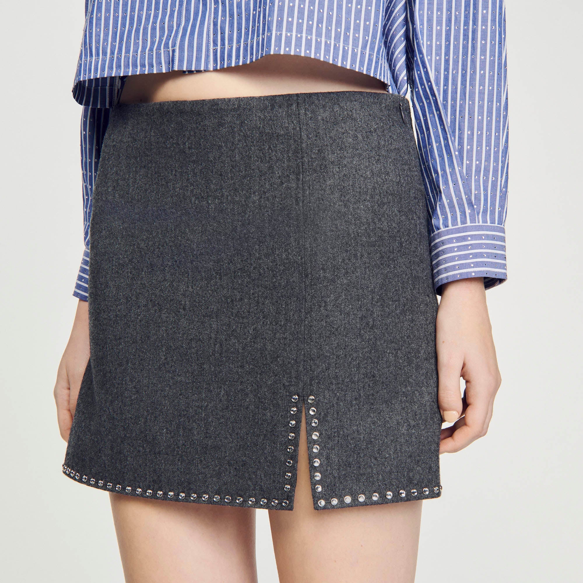 Minifalda de lana con abertura lateral decorada con strass.• Minifalda Sandro Mujer