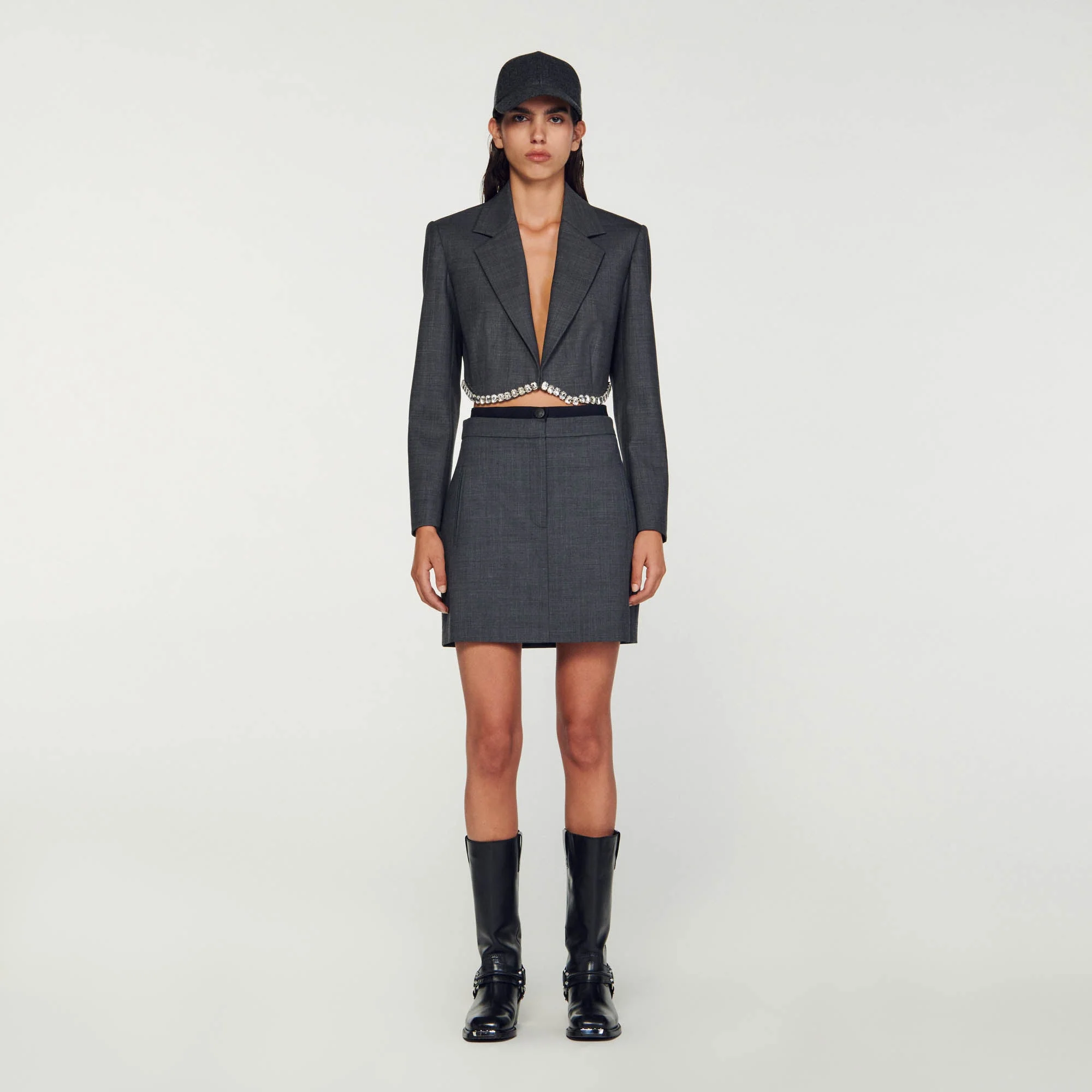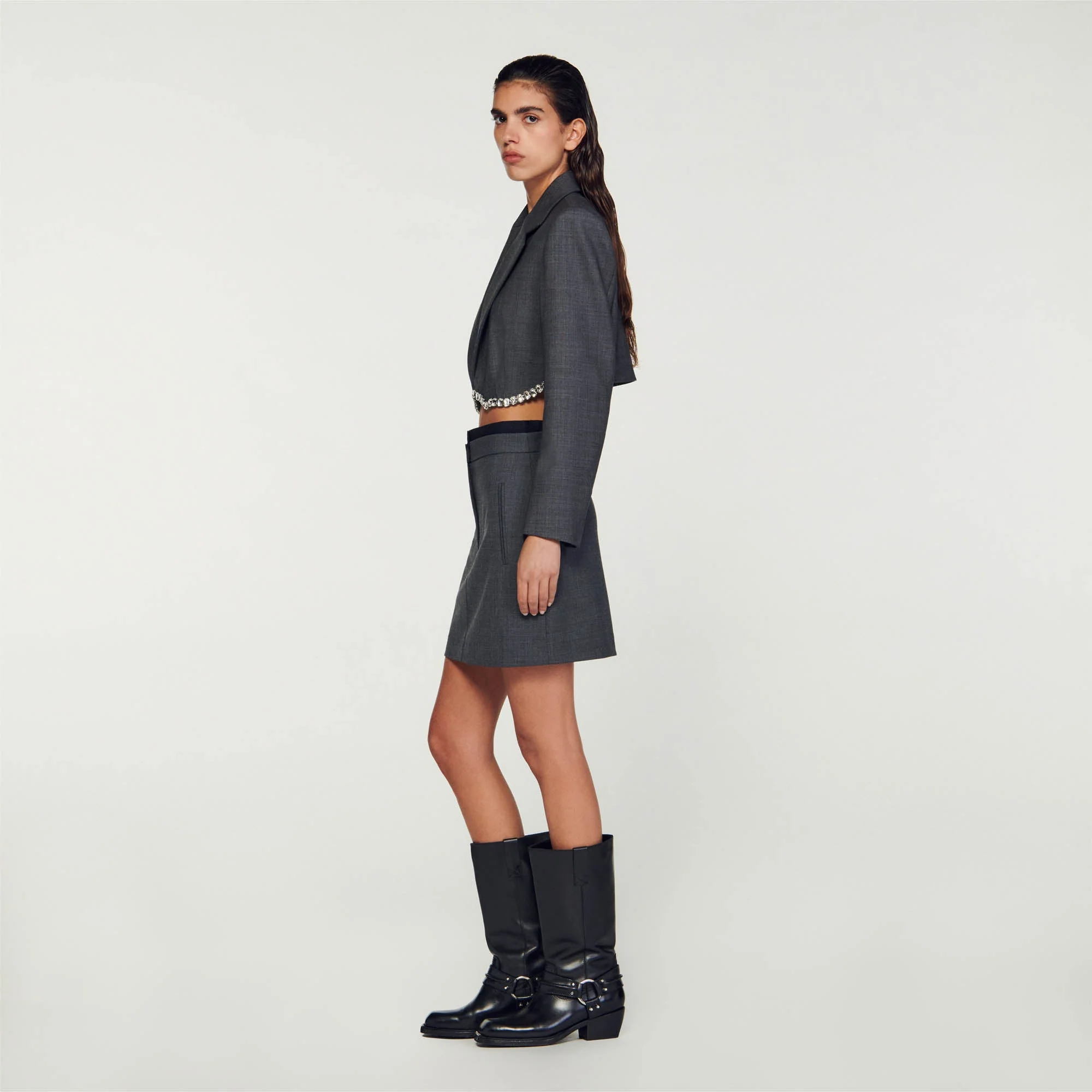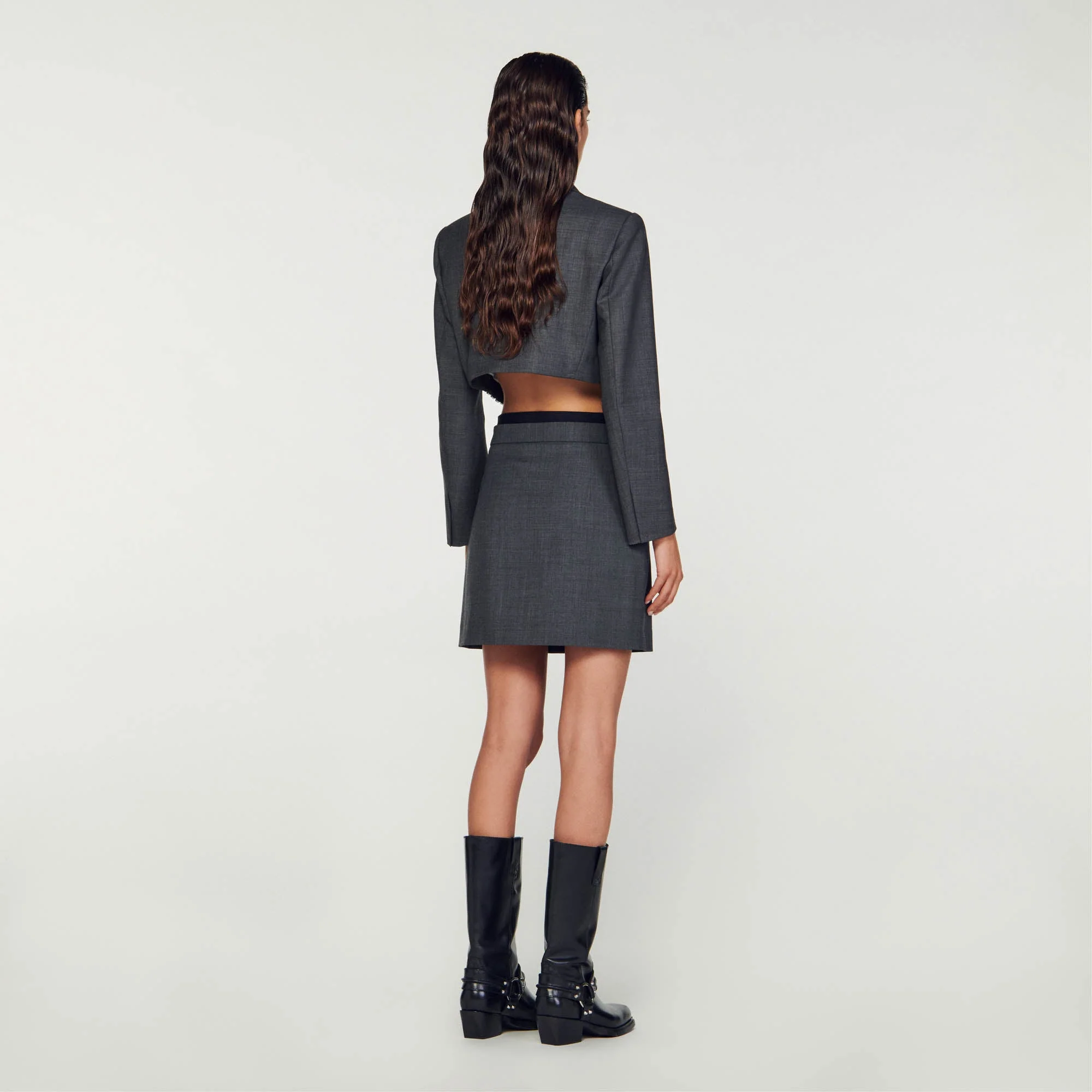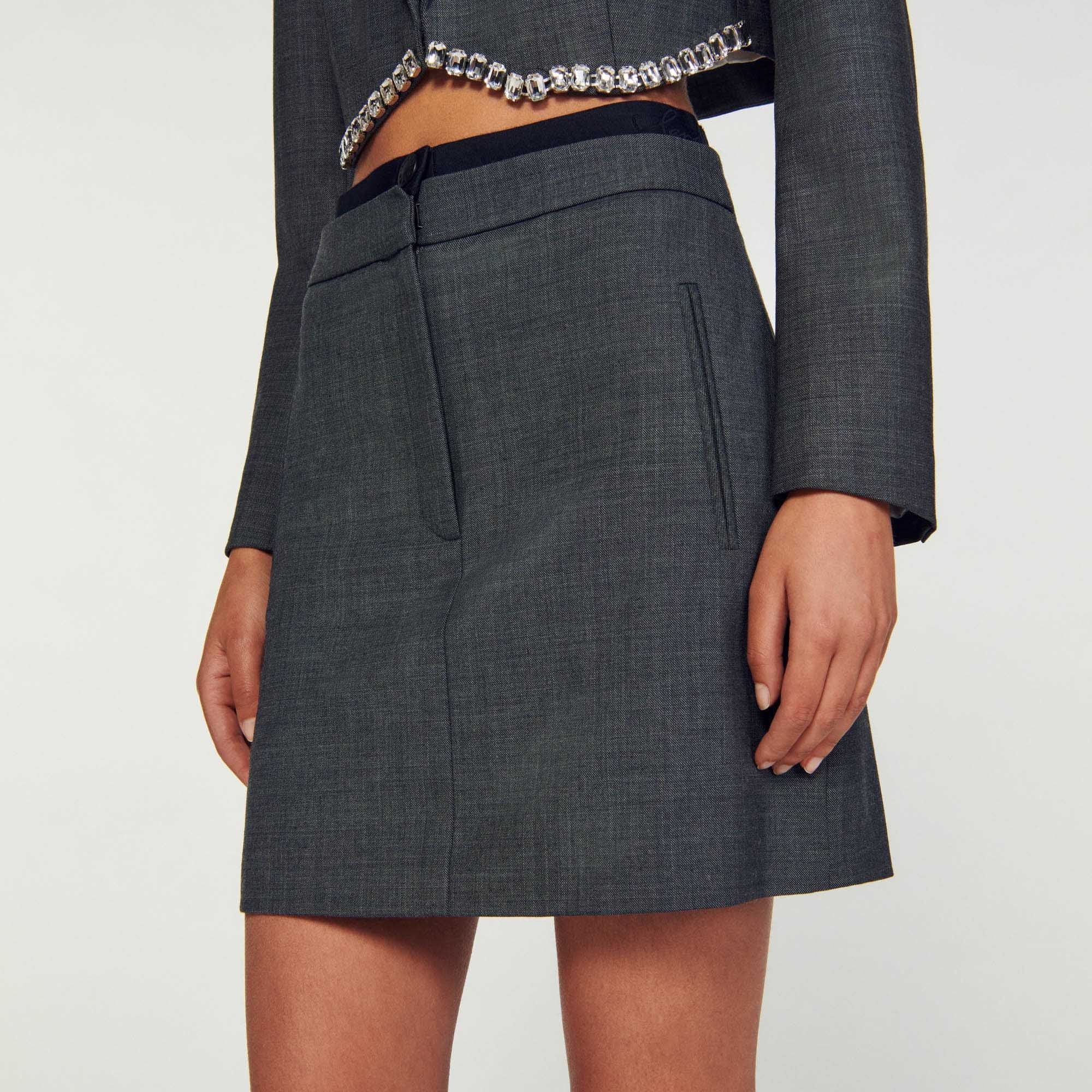 Minifalda de mezcla de lana con doble cinturilla decorada con una banda elástica con el logotipo de SANDRO, con bolsillos ribeteados verticales en los laterales.• Falda corta de mezcla de lana Sandro Femme