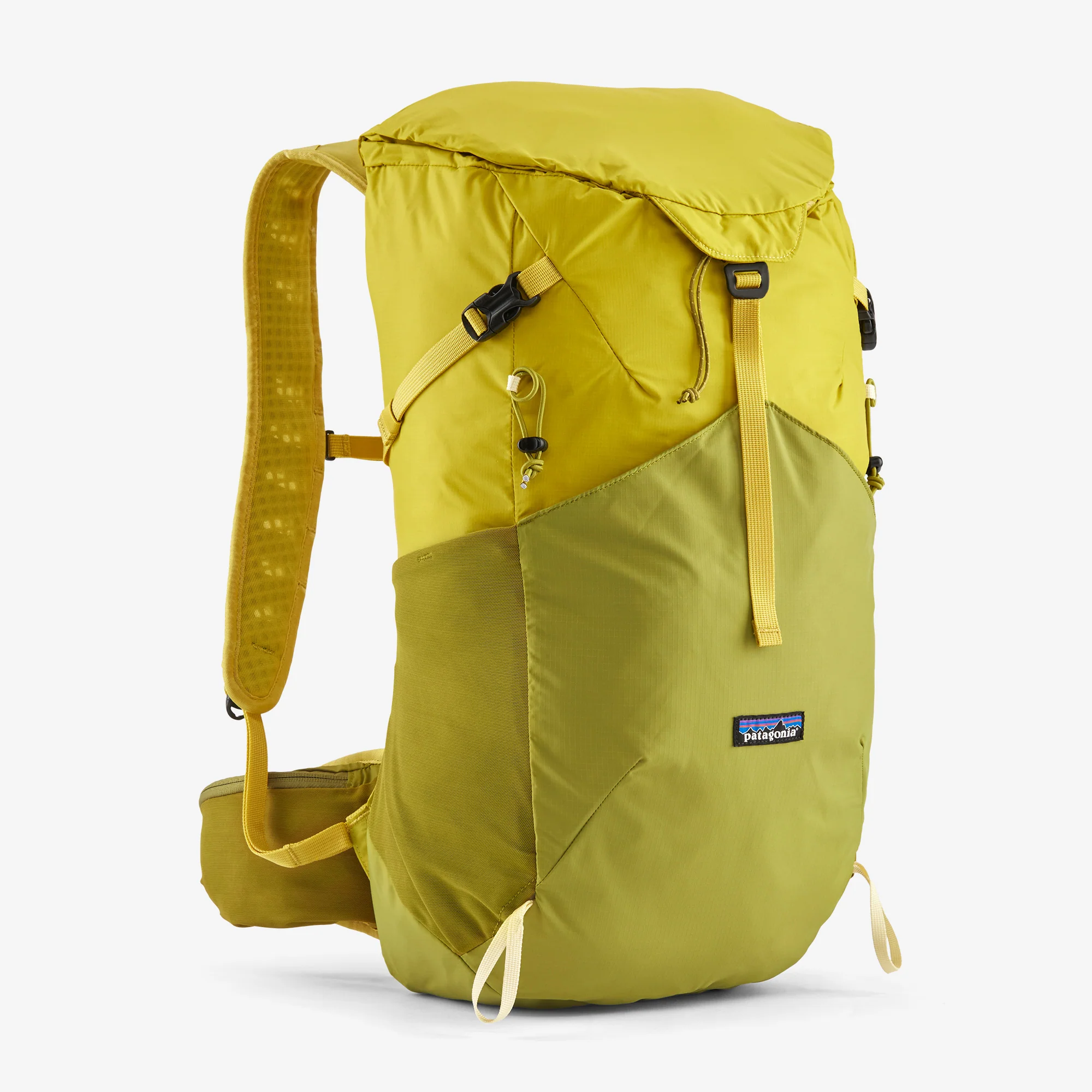 - Cuerpo: 2,4-Oz (68,03-g) 100% ripstop de nylon reciclado, de 70 denier, con cobertura PU (parte inferior: 3,8-oz/107,72-g, de 140 denier). Forro: 3-Oz (85,04-g) 100% tejido liso de poliéster reciclado, de 200 denier, con cobertura PU. Panel trasero y correas de hombros: 8,3-Oz (235,30-g) 100% malla de poliéster. Bolsillos laterales: 7,1-Oz (201,28-g) malla power mesh de 72% nylon reciclado/28% spandex. Funda impermeable: 2,2-Oz (62,36-g) 100% tafetán de poliéster reciclado, con cobertura PU y acabado repelente al agua duradero (DWR), libre de PFAS añadidos de forma intencionada. Los tejidos del panel trasero, de las correas de los hombros, de los bolsillos y de la funda impermeable cuentan con certificado de aprobación por Bluesign®. Hecho en una fábrica que cuenta con Certificación Fair Trade™. Instrucciones de cuidado: Lavar a mano, no aplicar cloro, secar al aire libre, no planchar.
