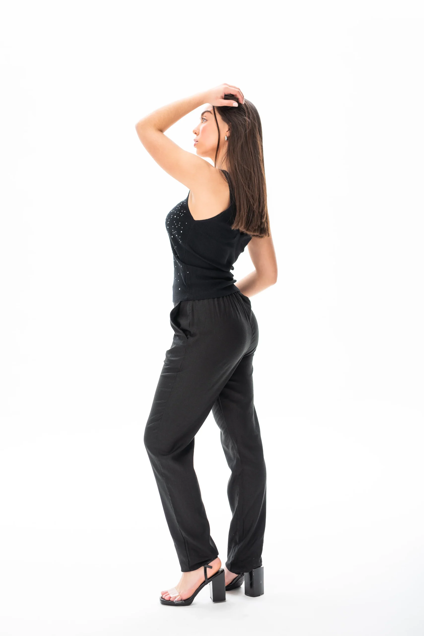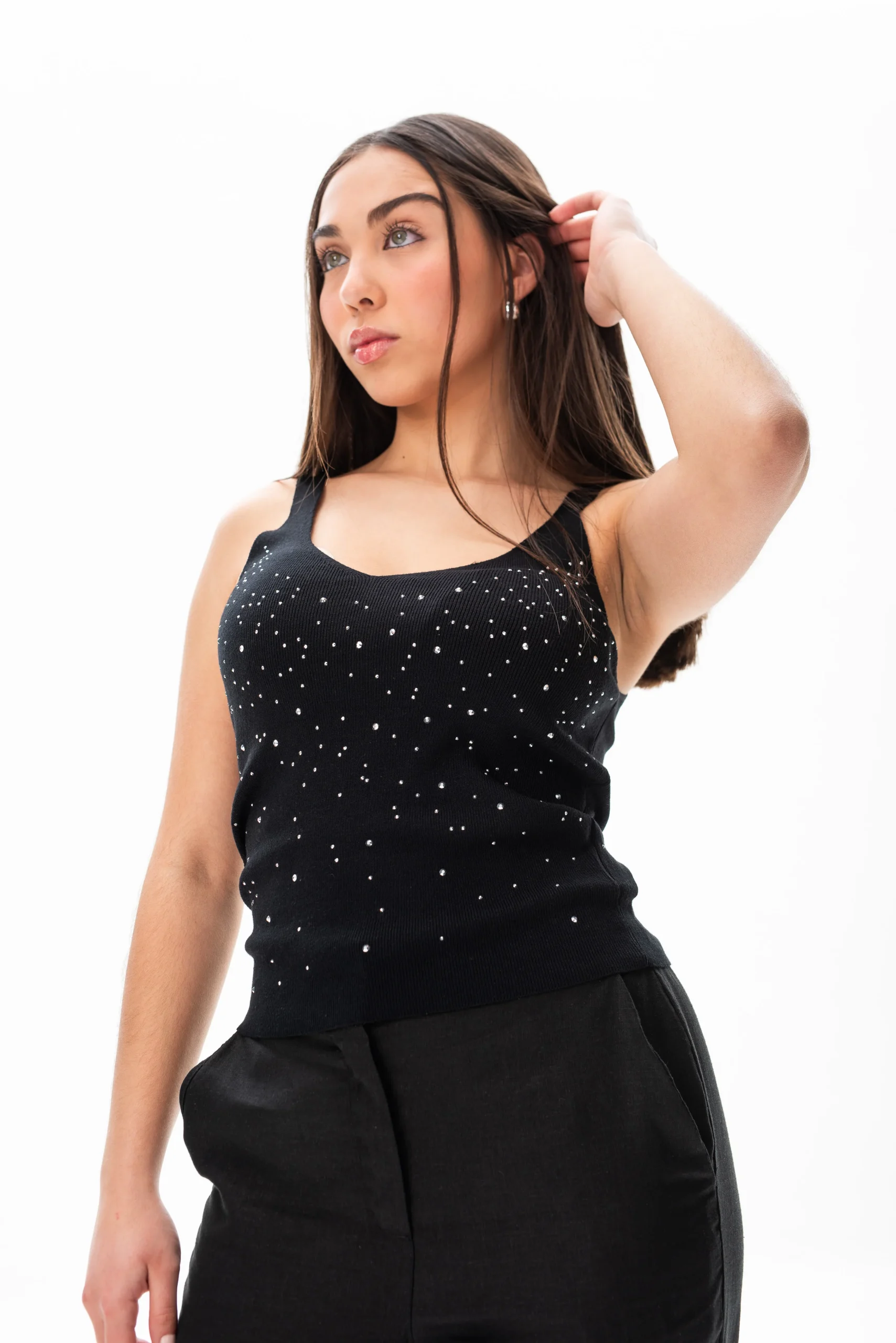 ¡Descubrí el encanto atemporal de la Musculosa Luna Negra en negro! Esta remera te aporta frescura y elegancia, ideal para mujeres que buscan comodidad con un toque de sofisticación.