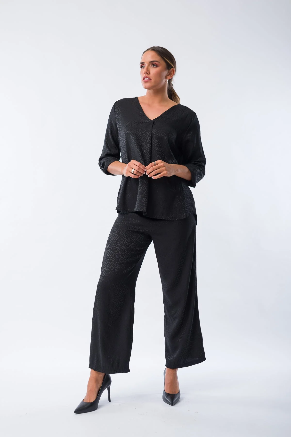 ¡Descubrí la sofisticación del Palazo Cir en un impactante negro! Este pantalón te aporta confianza absoluta y un estilo impecable, ideal para mujeres que buscan comodidad sin renunciar a un toque de distinción.