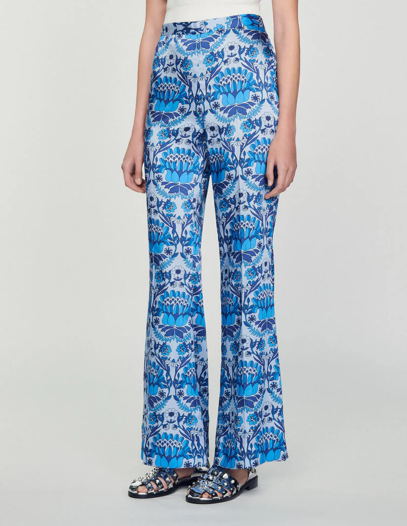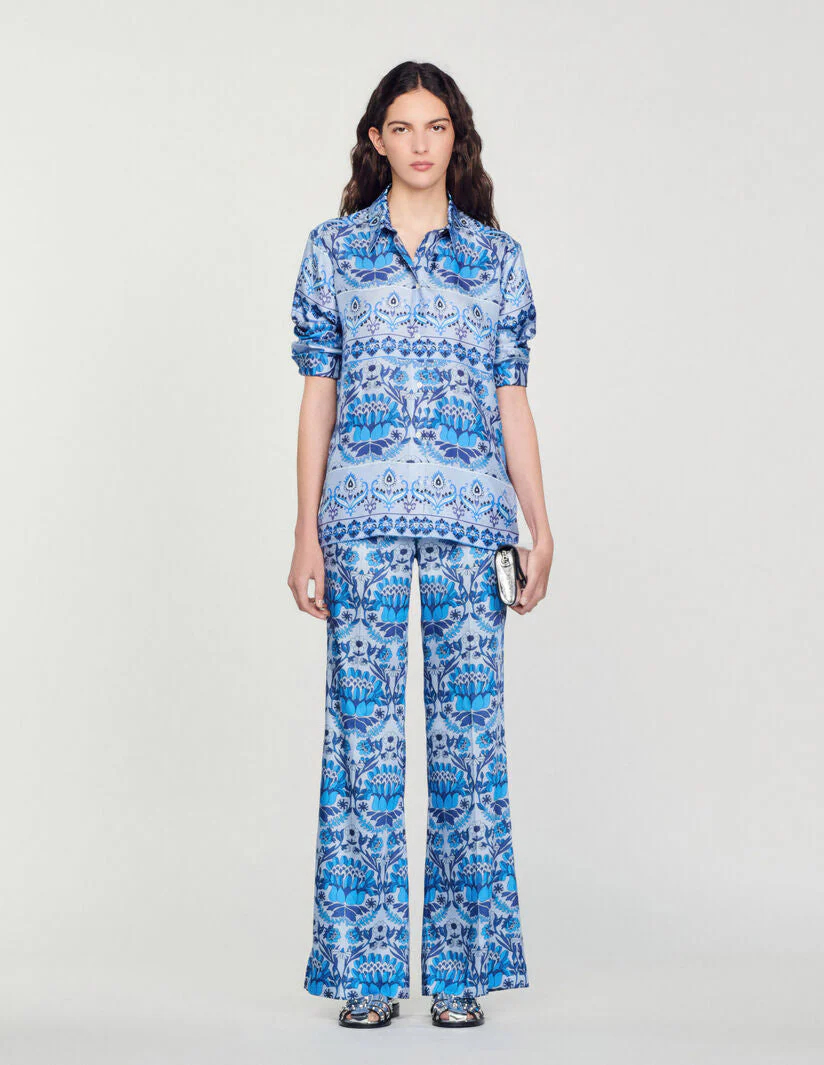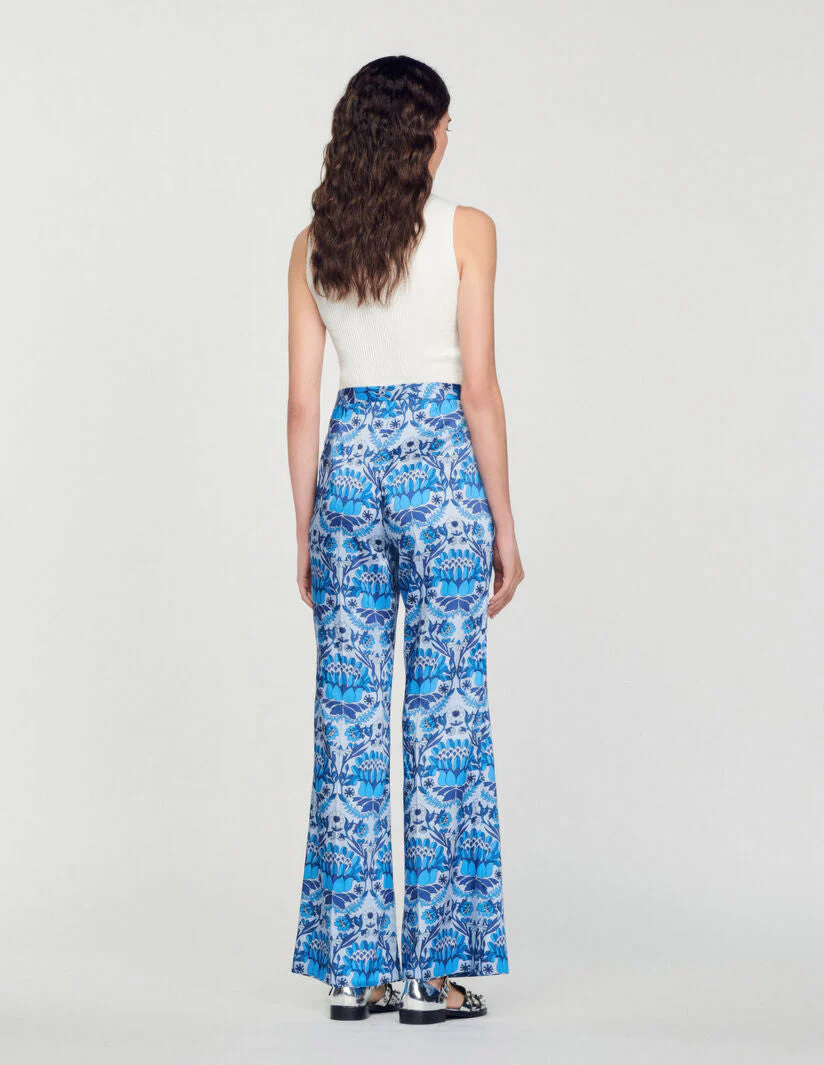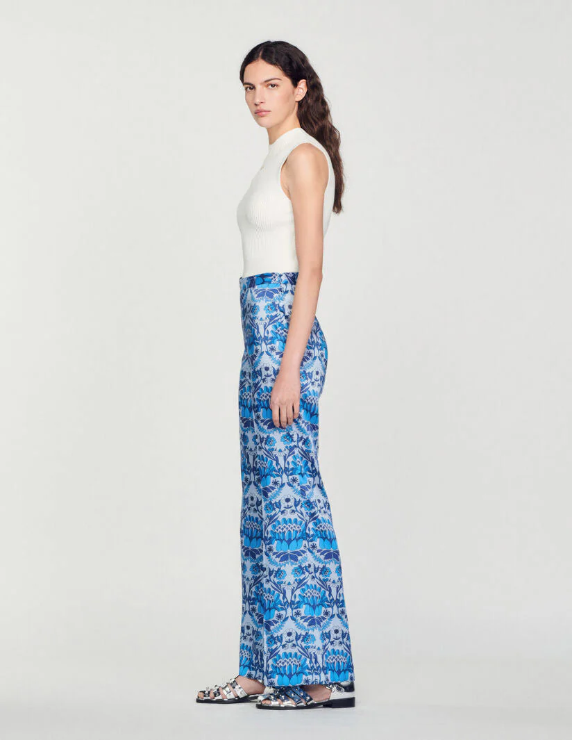 Pantalón ancho de talle alto y pliegue estirado, con grandes bolsillos de ojal y cierre de cremallera en el lateral.• Pantalón ancho Sandro de mujer