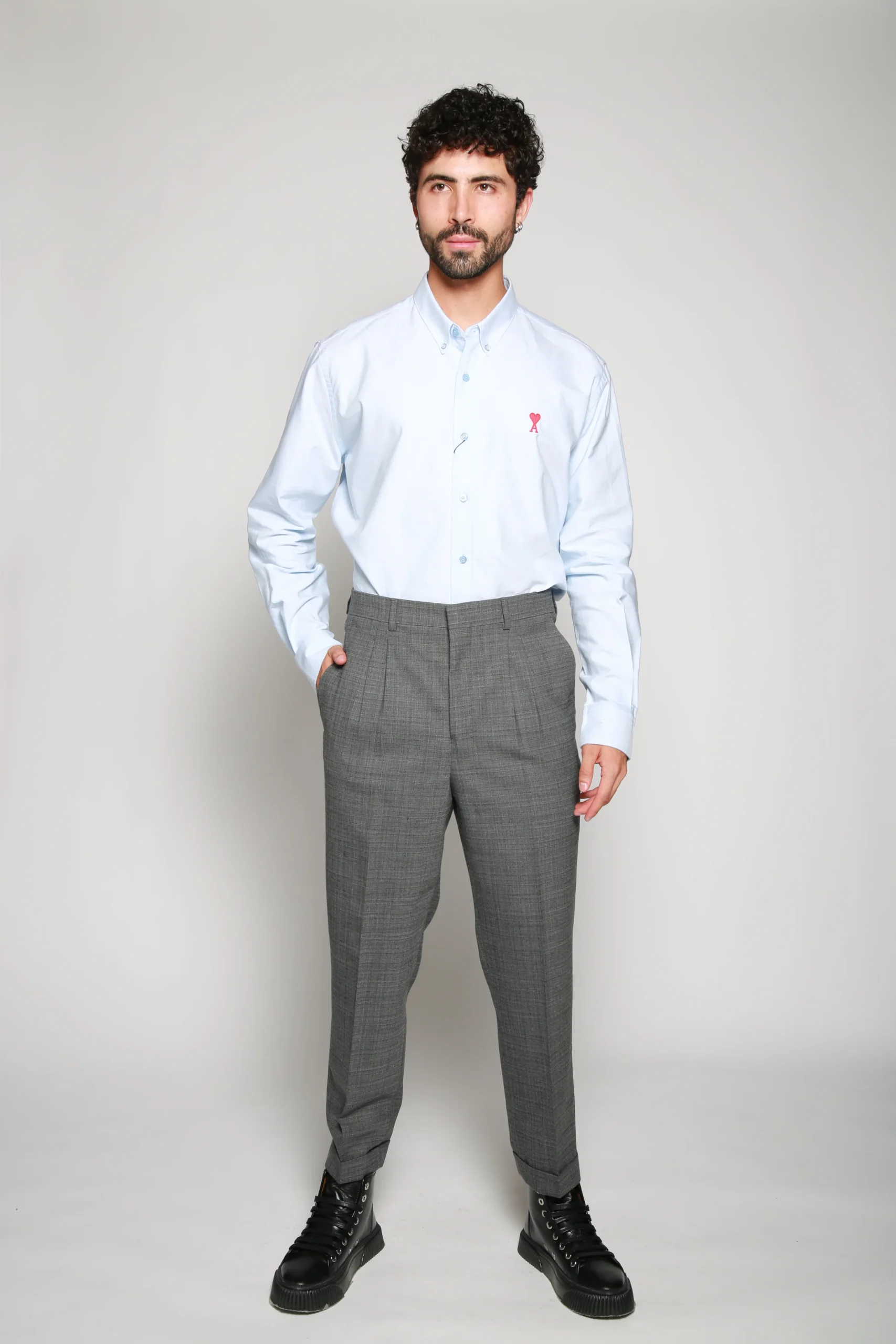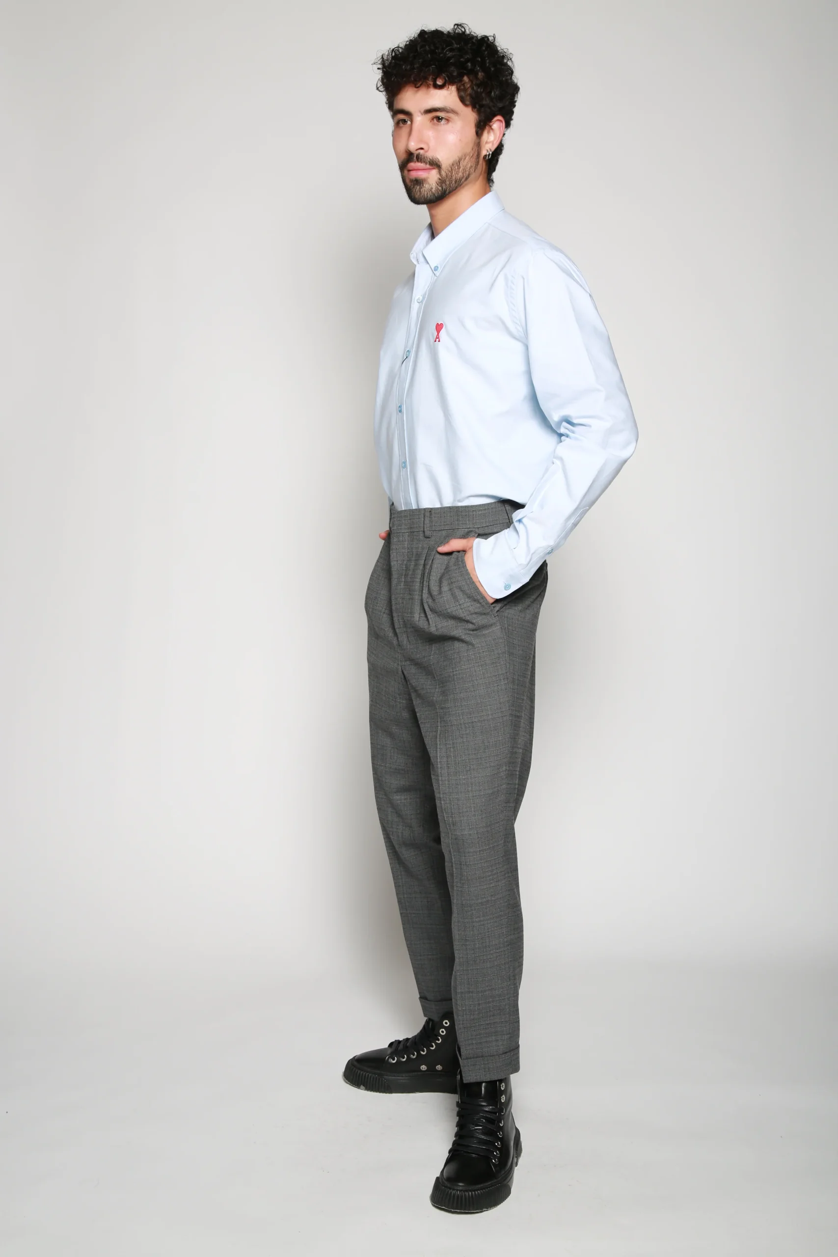 Pantalón Carotte A Plis Gris para hombre, marca AMI Paris. COMPOSICIÓN Y LAVADO: Consultar etiqueta interna.