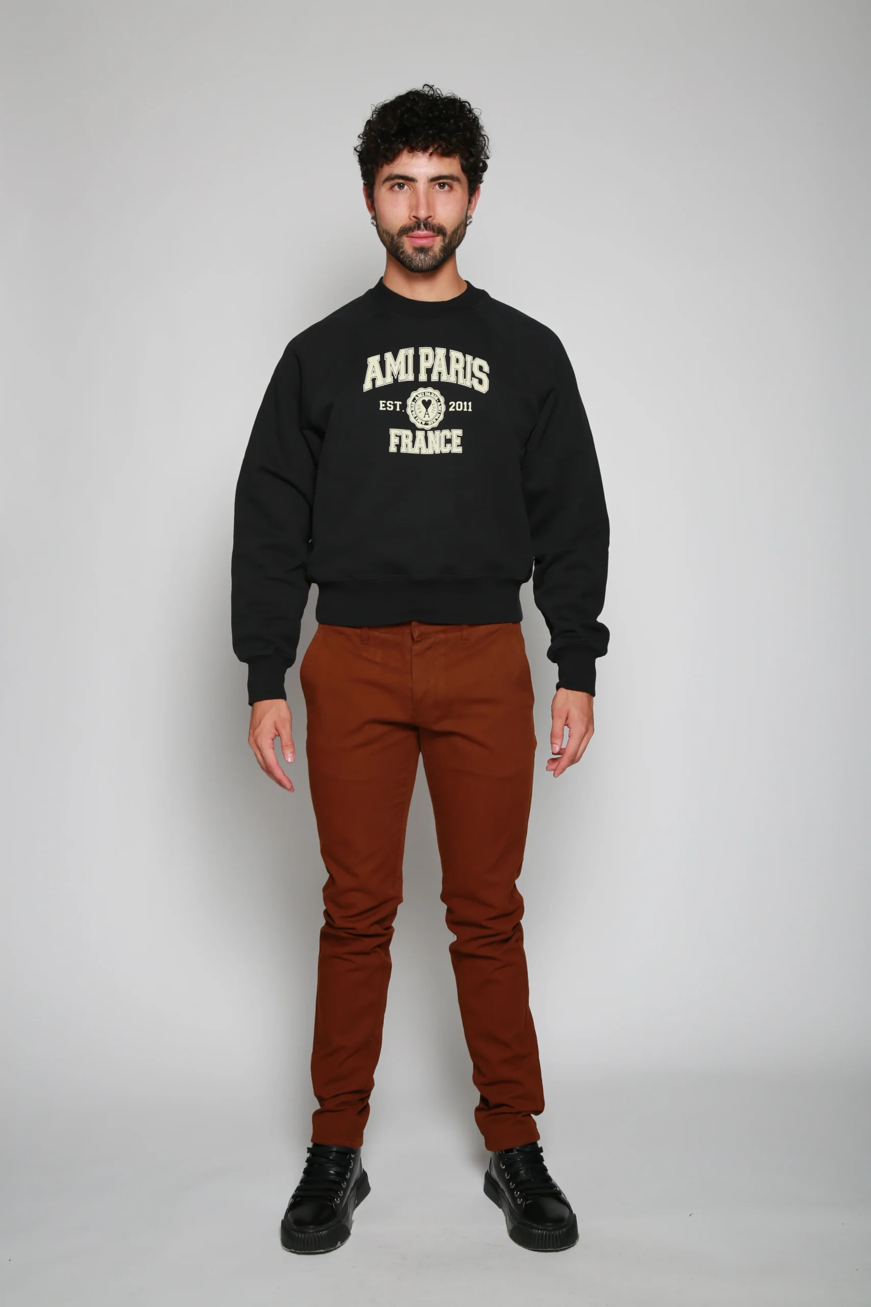 Pantalón Casual Chino Cafe para hombre, marca AMI Paris. COMPOSICIÓN Y LAVADO: Consultar etiqueta interna.