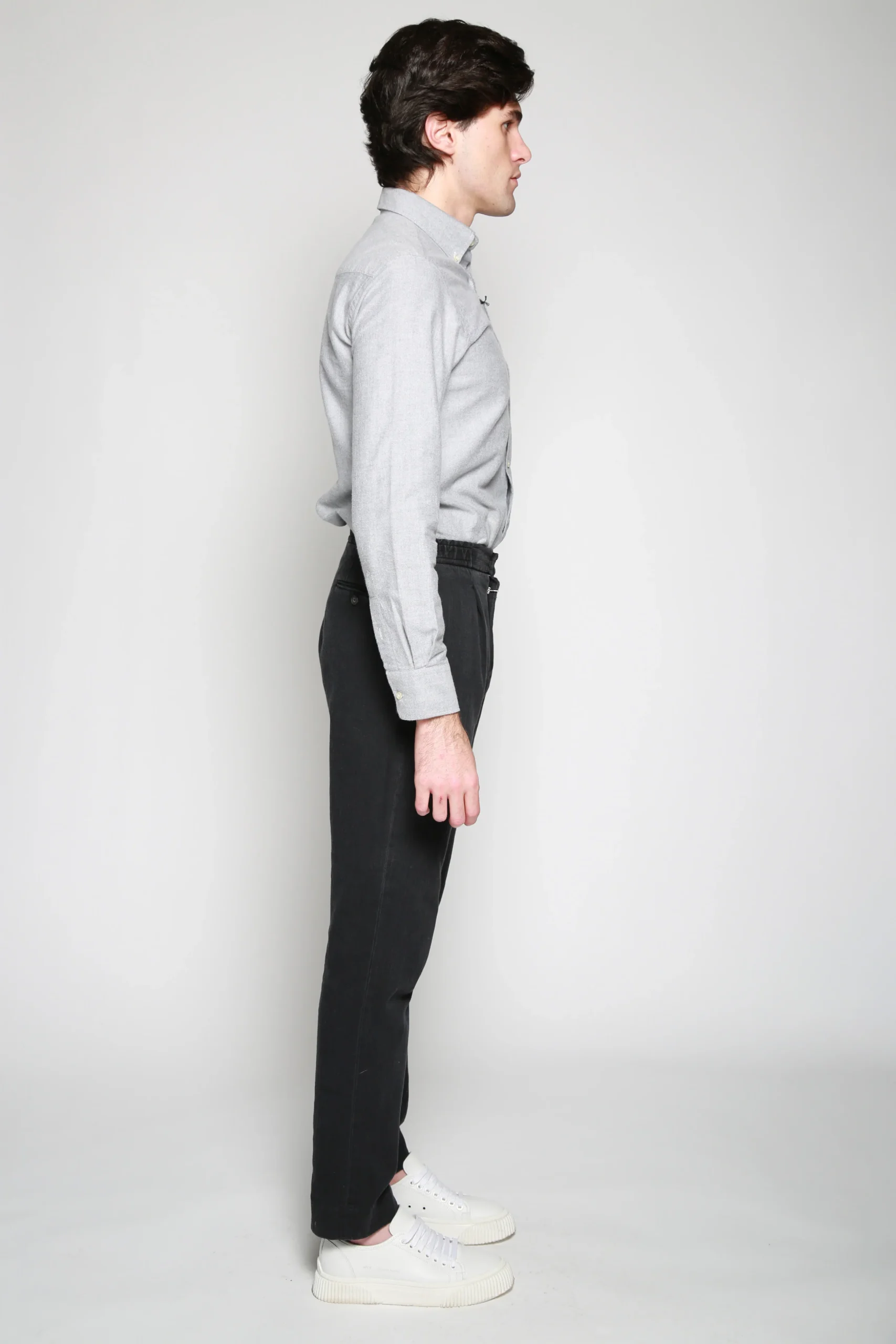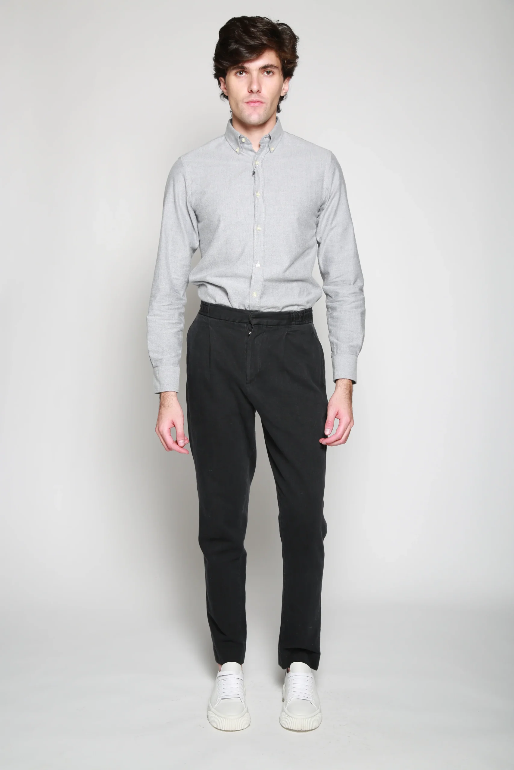Pantalón Casual Drew Stripe Gris para hombre, marca Officine Générale. COMPOSICIÓN Y LAVADO: Consultar etiqueta interna.