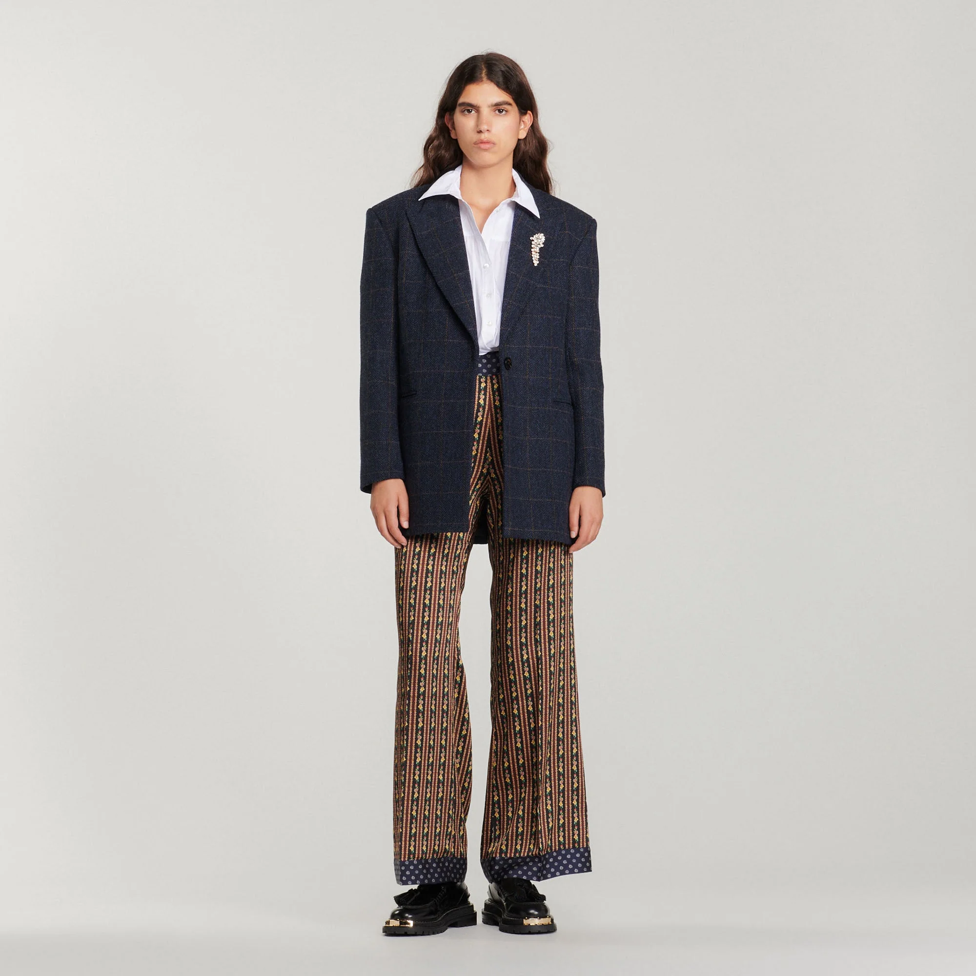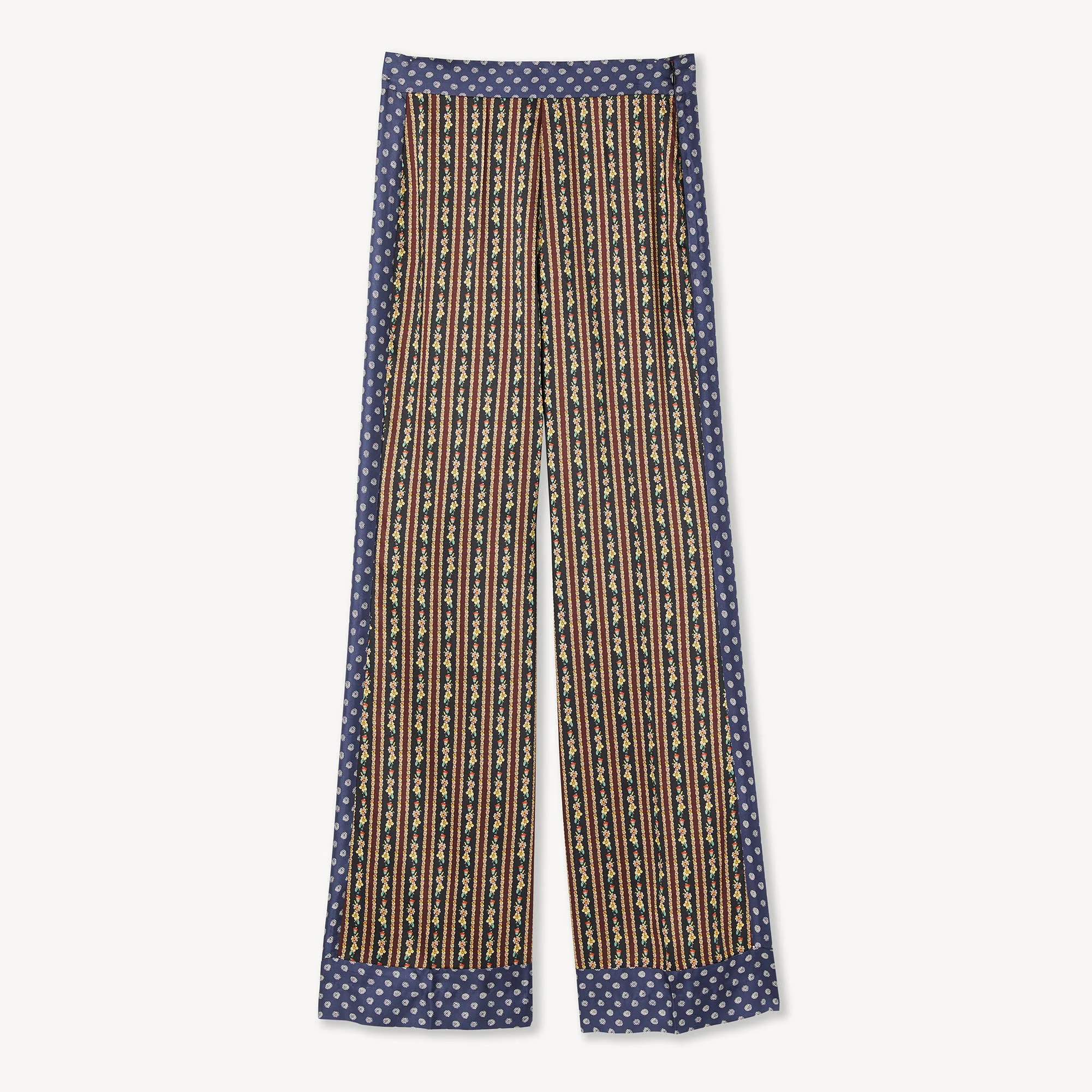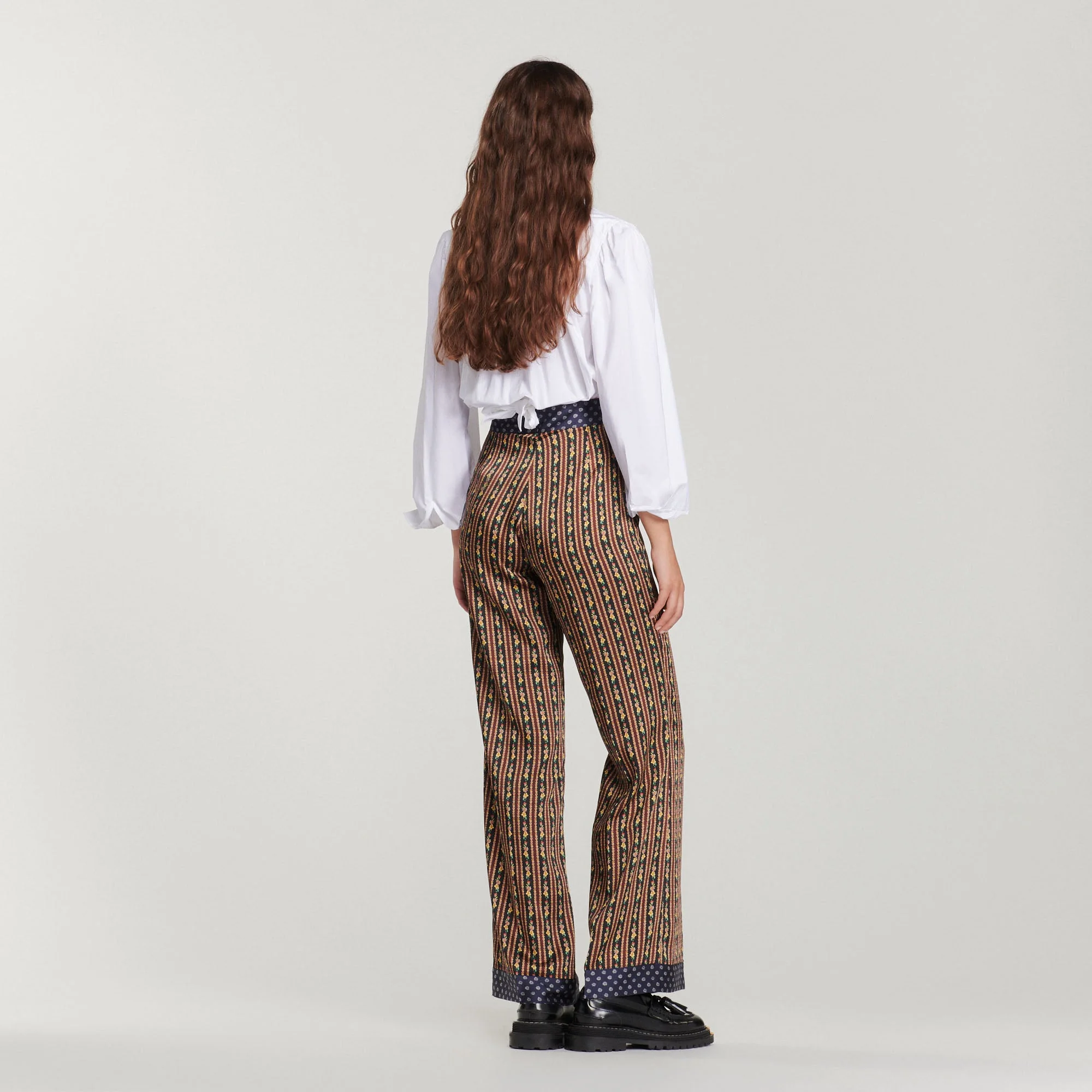 Pantalón fluido de corte recto, sublimado con una combinación de estampados de rayas, flores y lunares.