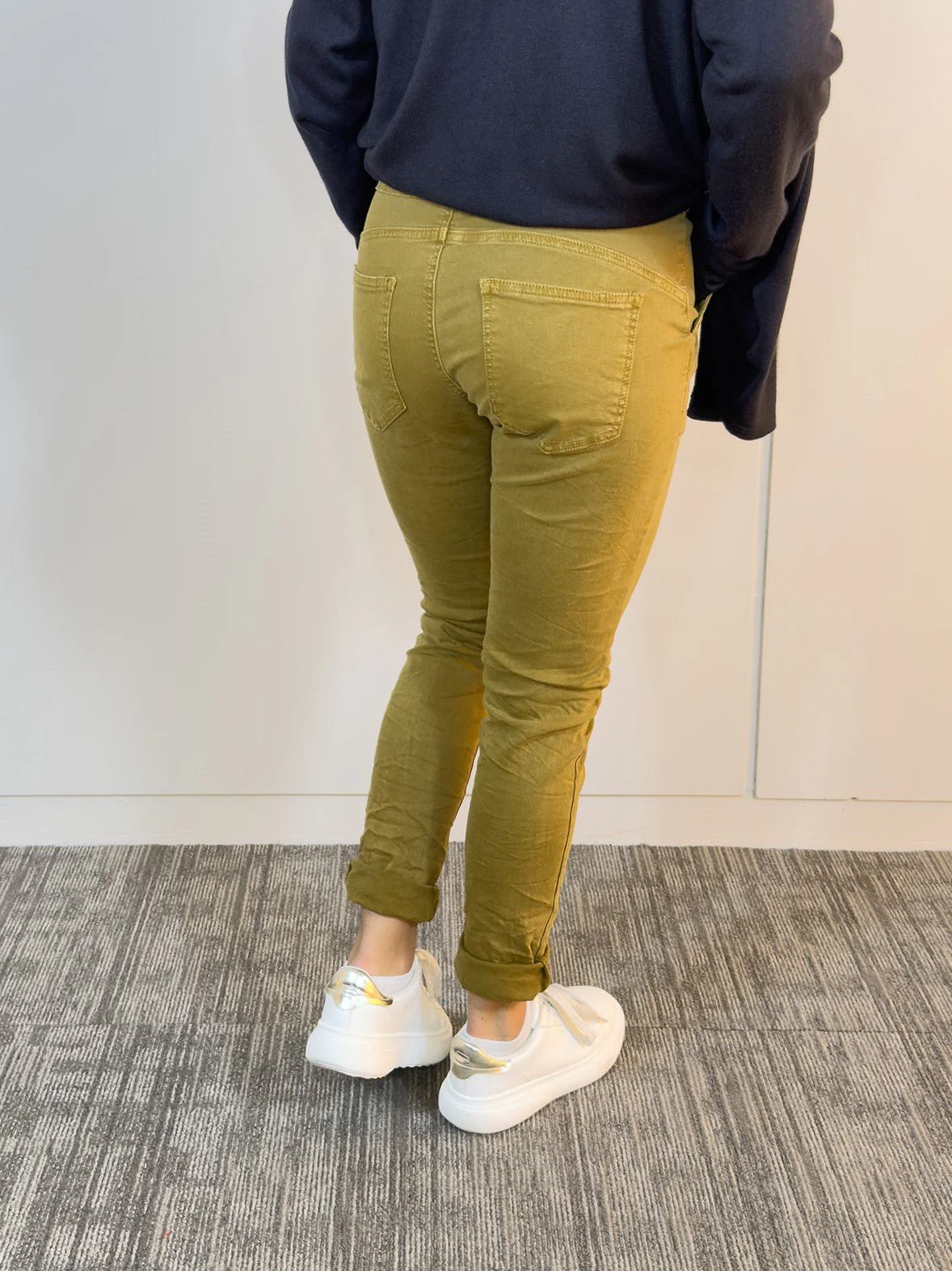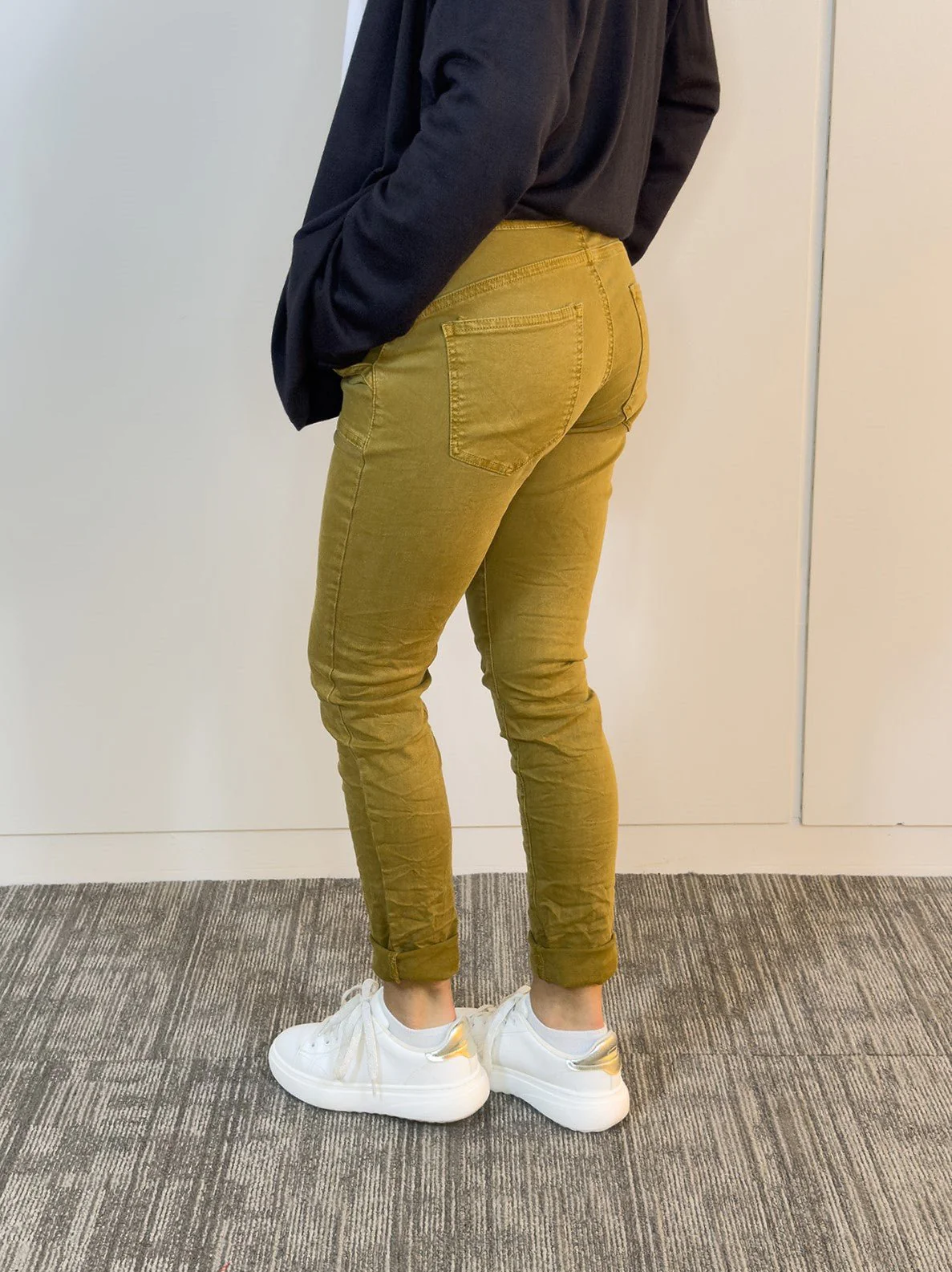Descubre el Pantalón Fortevo Mostaza, una adición perfecta a tu guardarropa. Este pantalón súper elastizado de excelente calidad, con pretina de elastizada y cinturón de lazo, es ideal para cualquier ocasión.