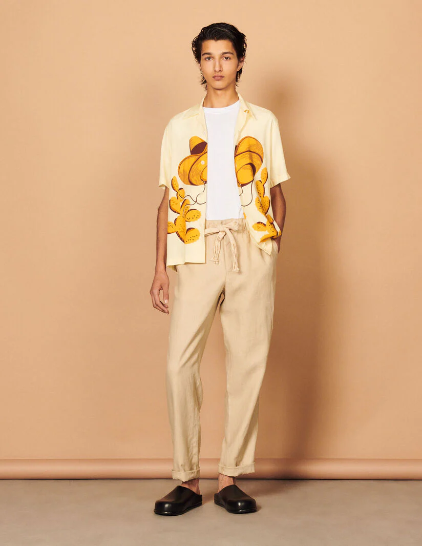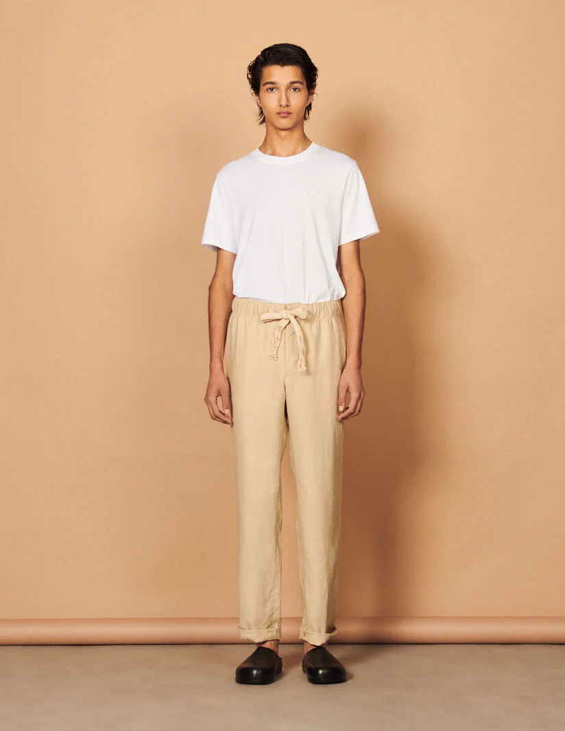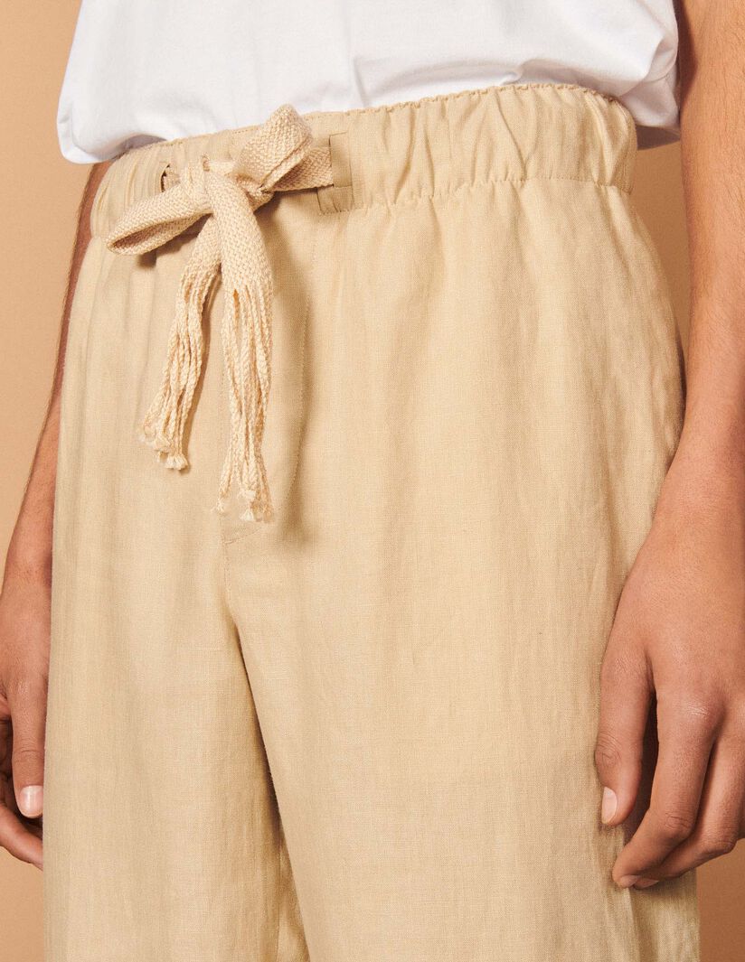 Pantalón ancho desenfadado de lino, con cintura elástica y cordón de ajuste.