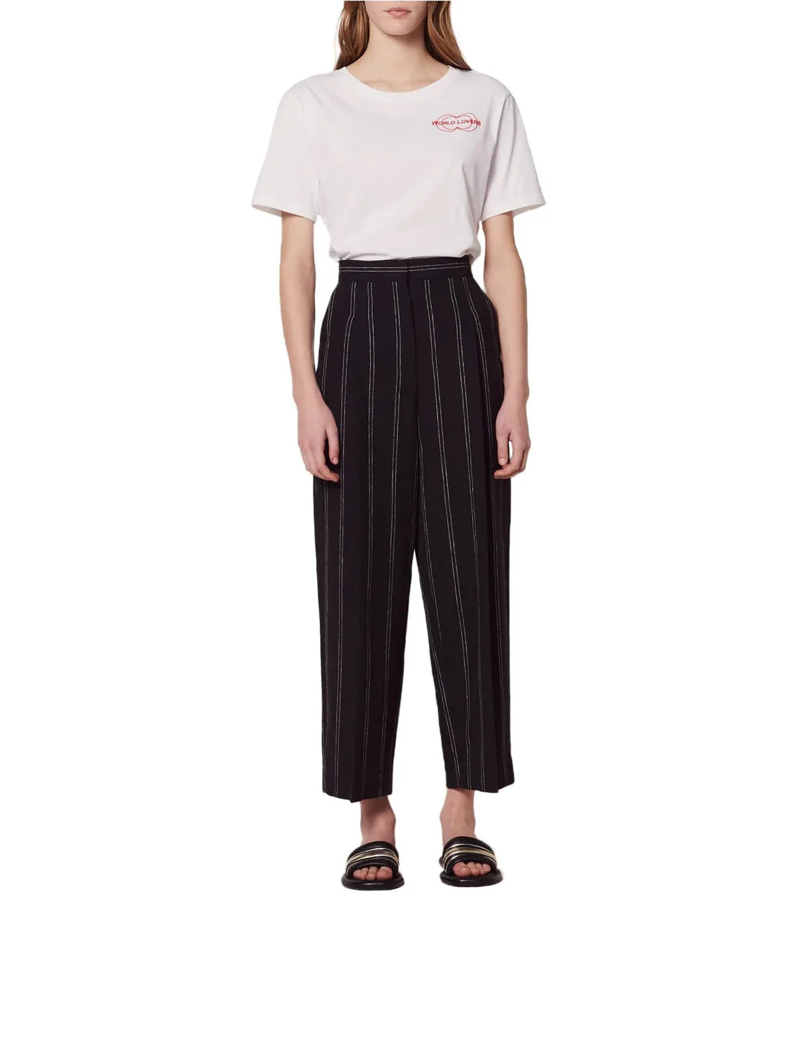 PANTALÓN DE VESTIR CORTE AMPLIO TIRO ALTO, LARGO AL TOBILLO, MARCA SANDRO. CONSULTAR COMPOSICIÓN E INSTRUCCIONES DE LAVADO EN ETIQUETA INTERNA.