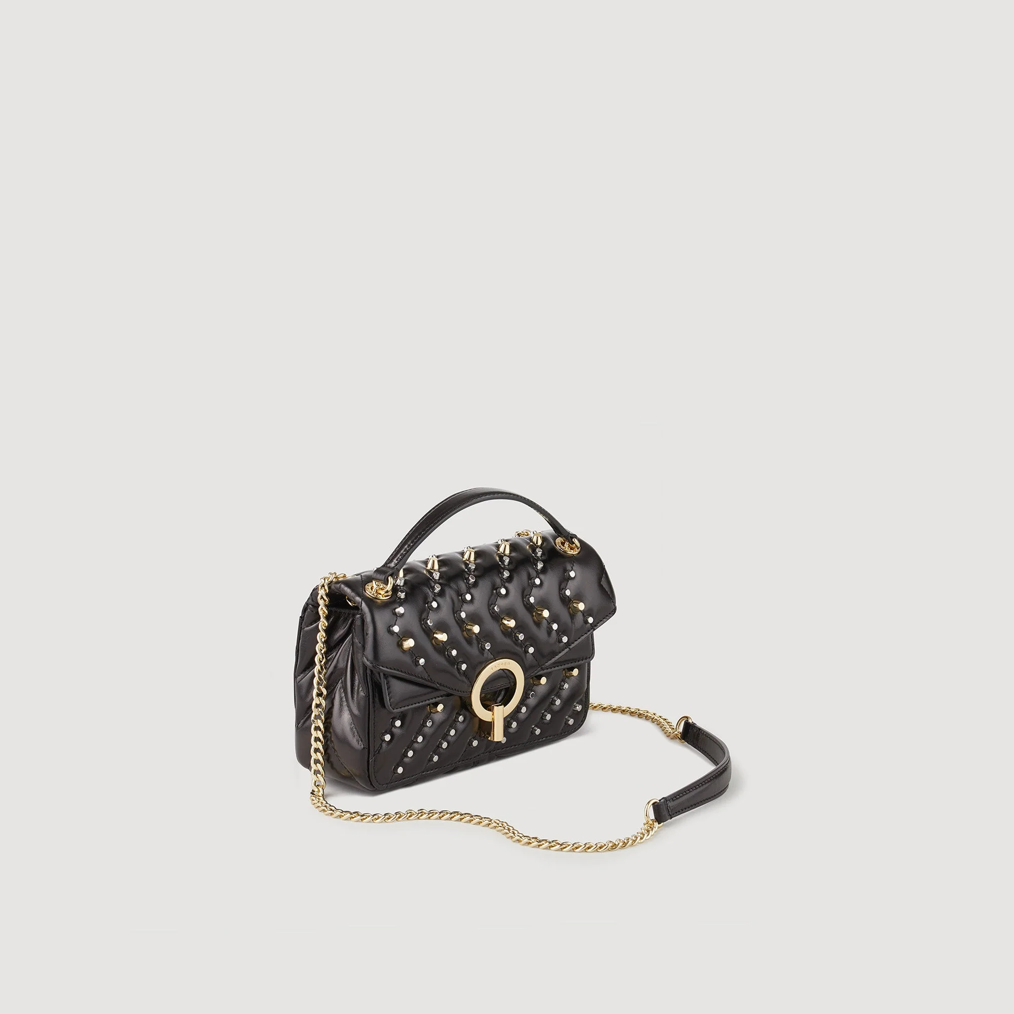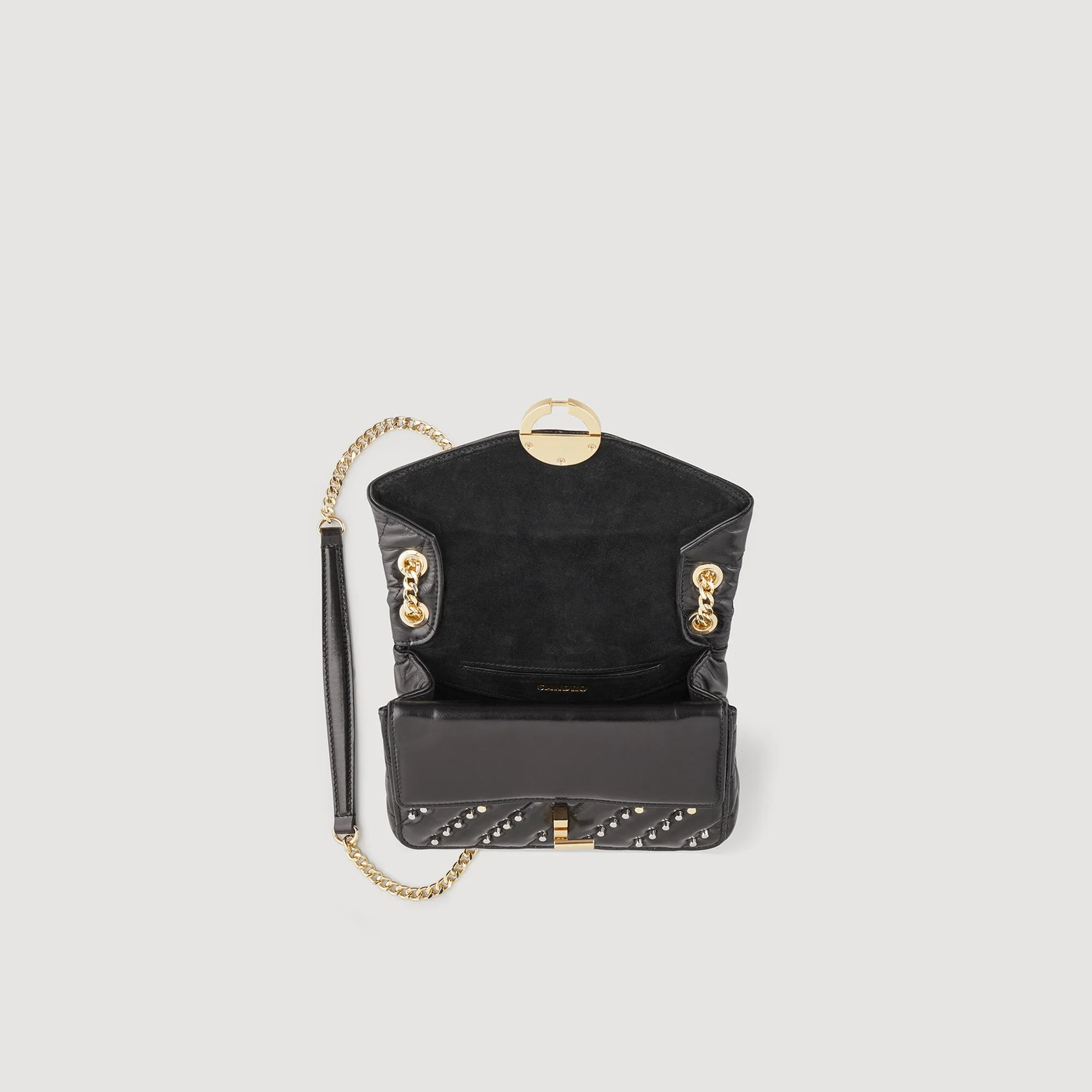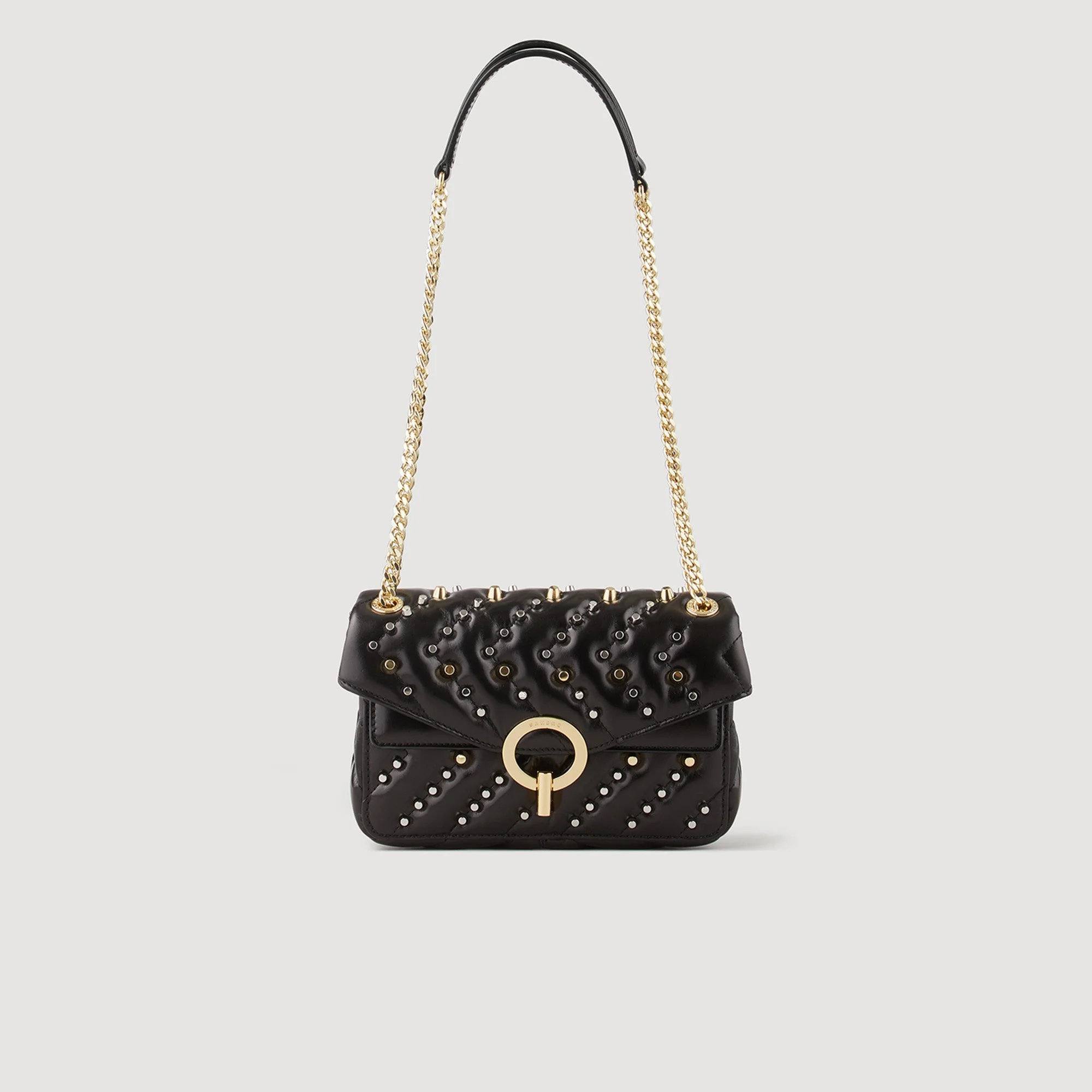 El bolso indispensable YZA viene en una versión de cuero decorada con tachuelas plateadas y doradas. Equipado con un cierre insignia y prácticos compartimentos, cuenta con una correa de cadena y cuero para el hombro que puede llevarse de varias maneras: larga como bandolera o con dos vueltas al hombro.• Pequeño bolso YZA Sandro Femme