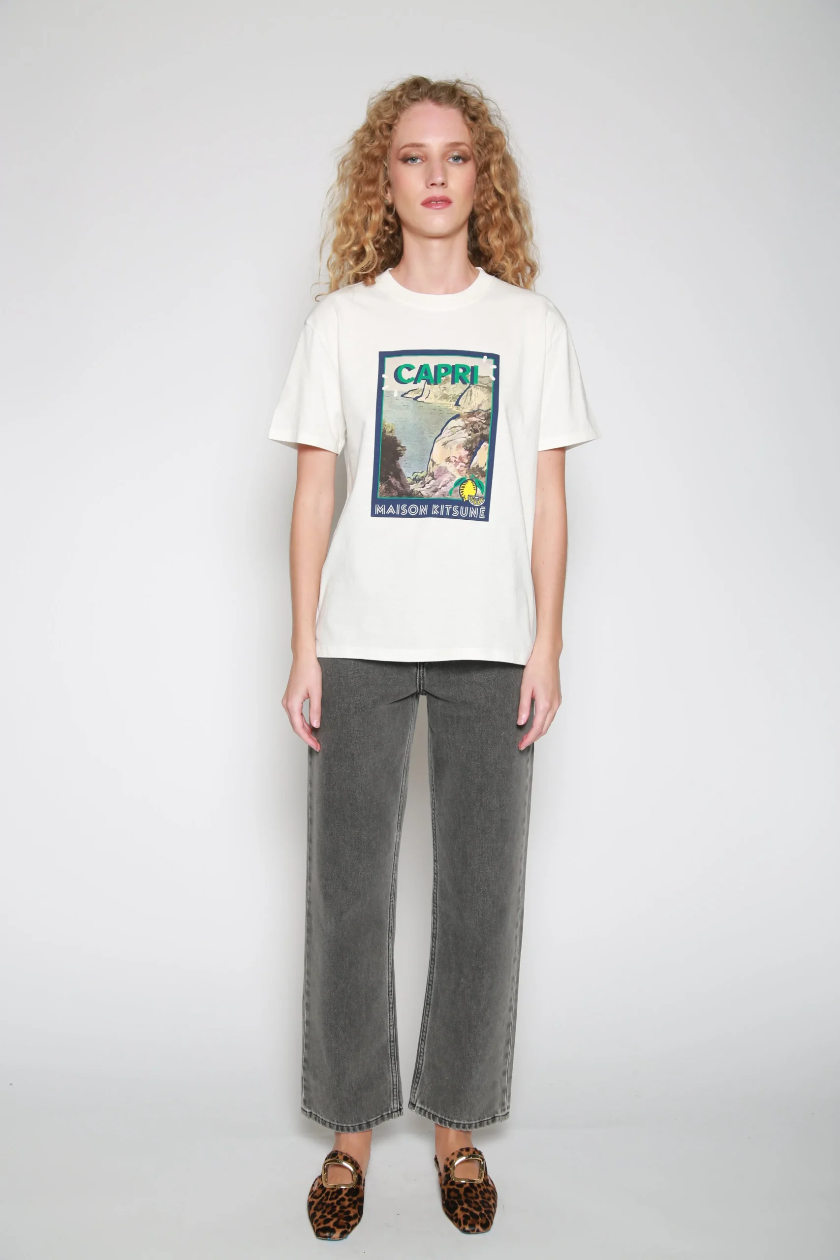 Playera Locandina Crema Gris , marca Maison Kitsuné. CONSULTAR COMPOSICIÓN Y CUIDADOS EN ETIQUETA INTERNA.