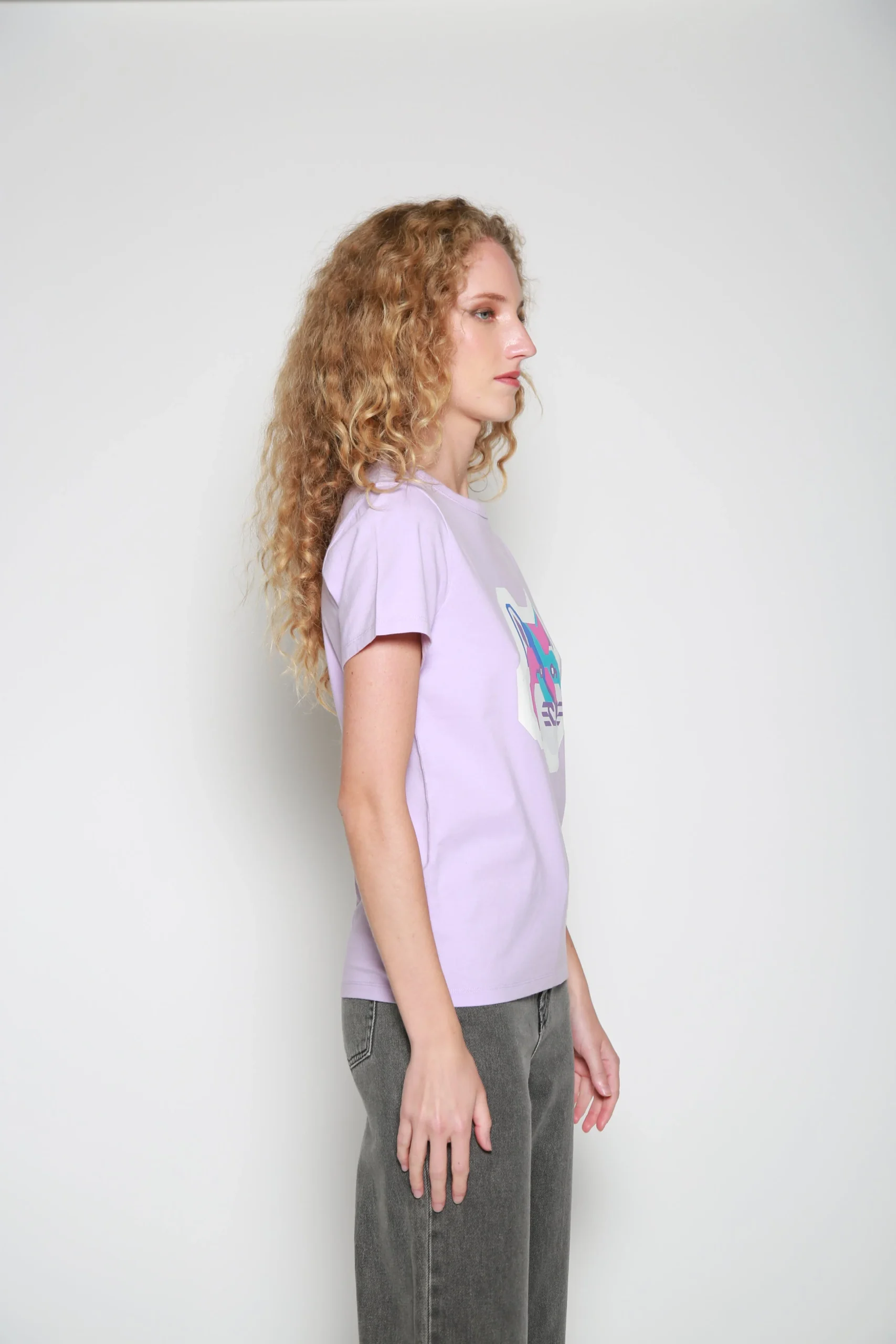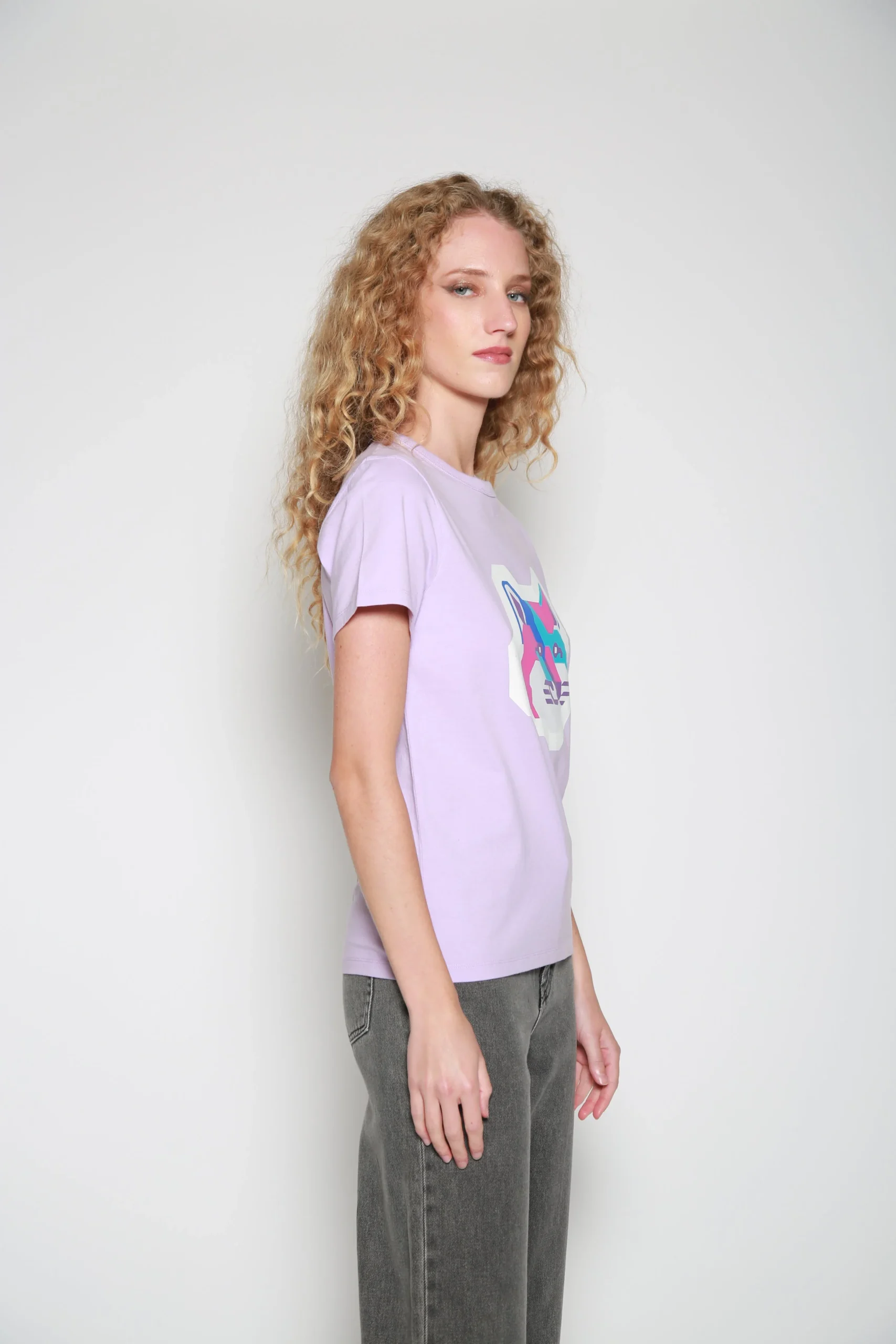 Playera Pixel Fox Head Lila , marca Maison Kitsuné. CONSULTAR COMPOSICIÓN Y CUIDADOS EN ETIQUETA INTERNA.