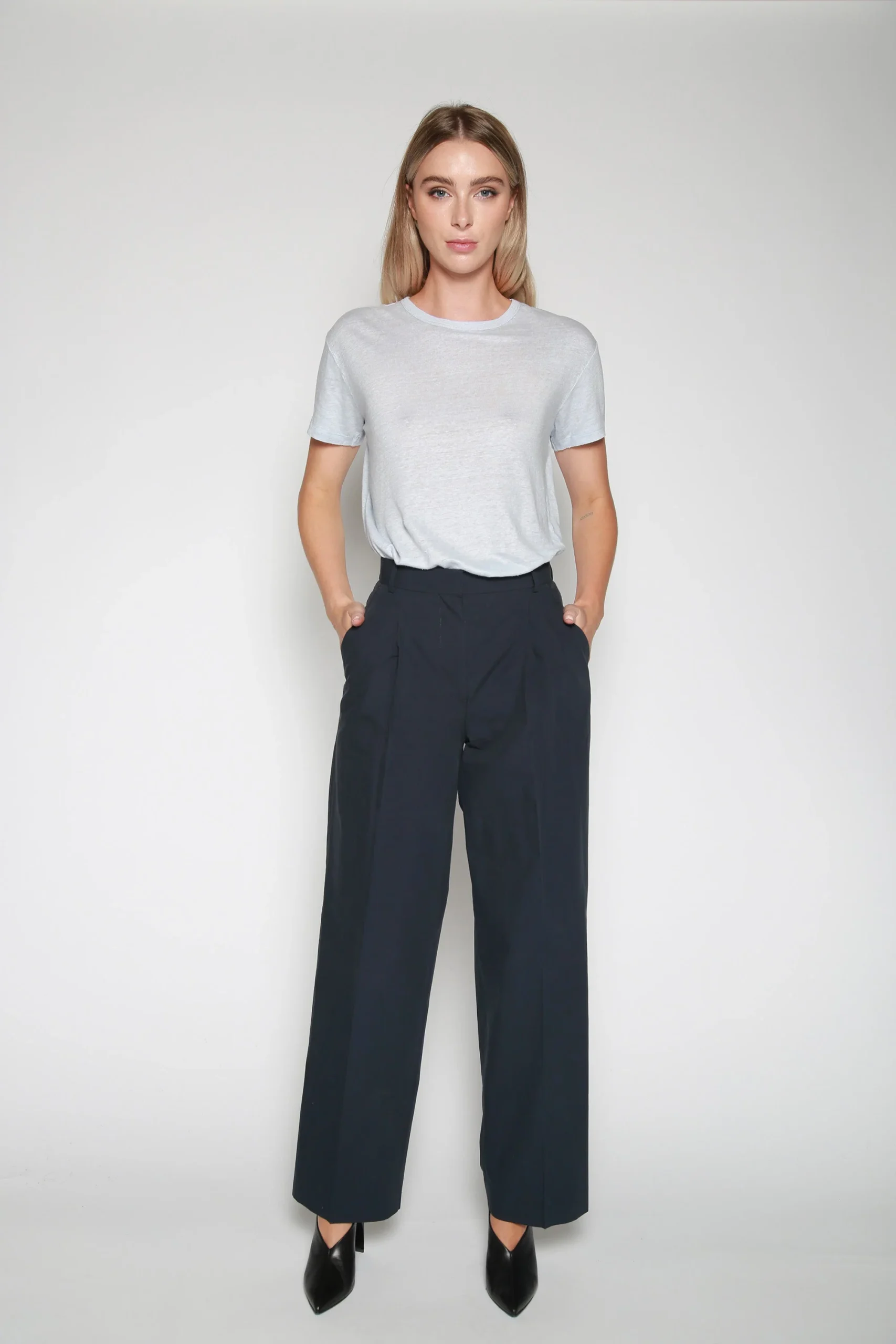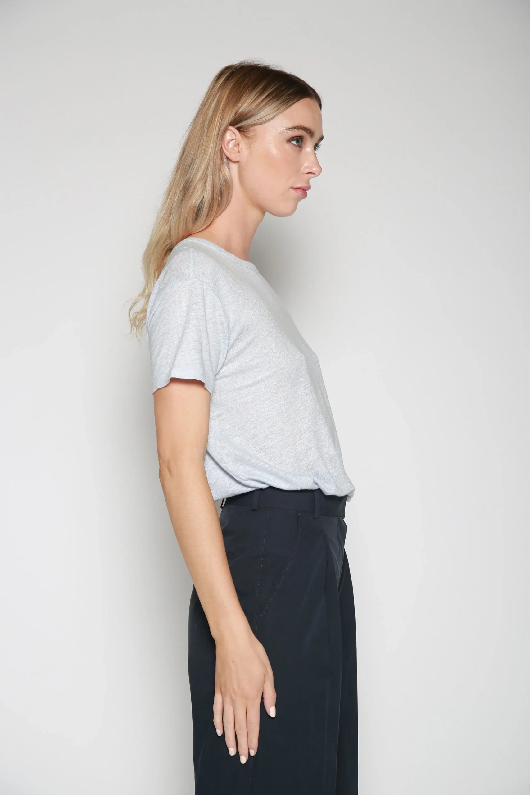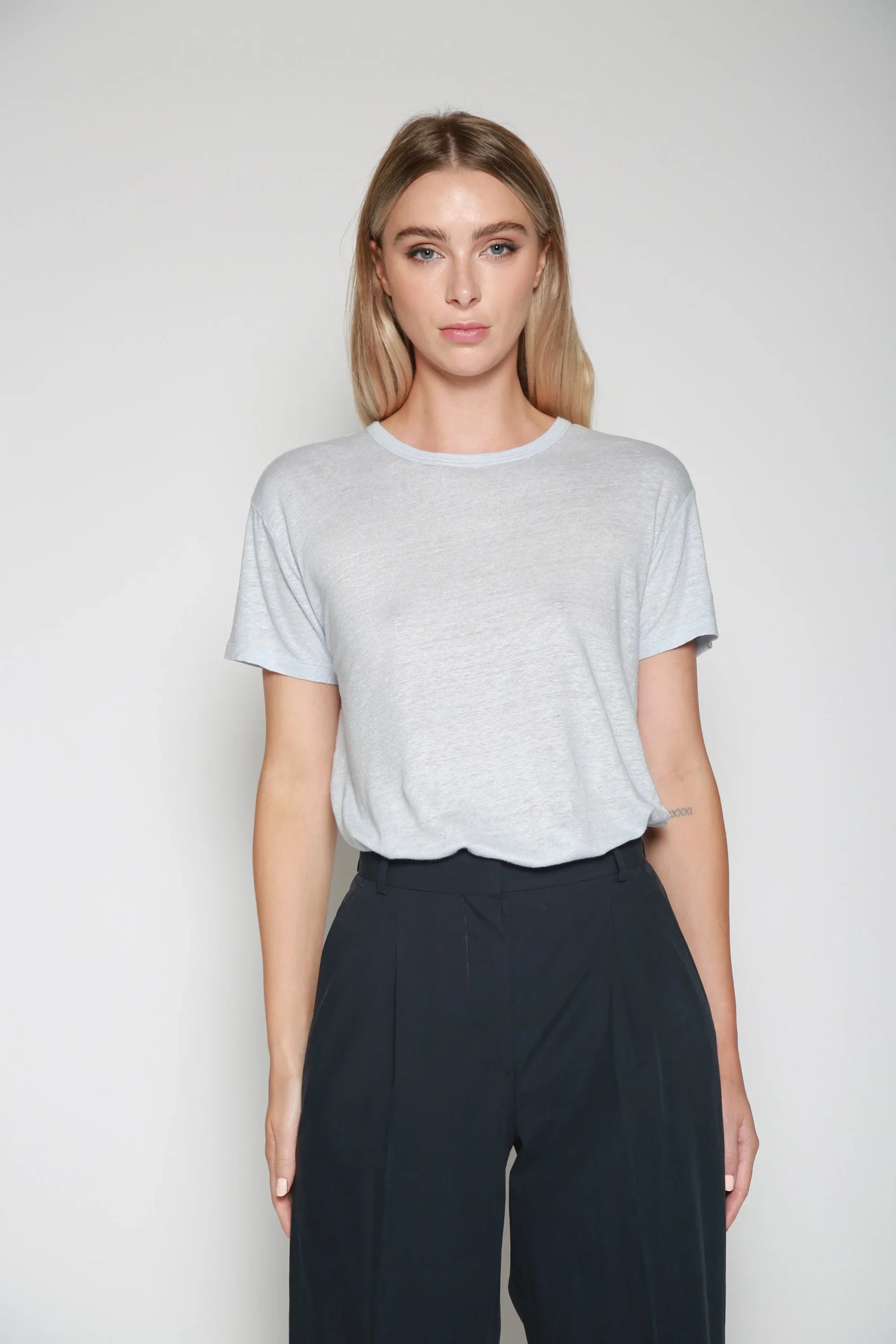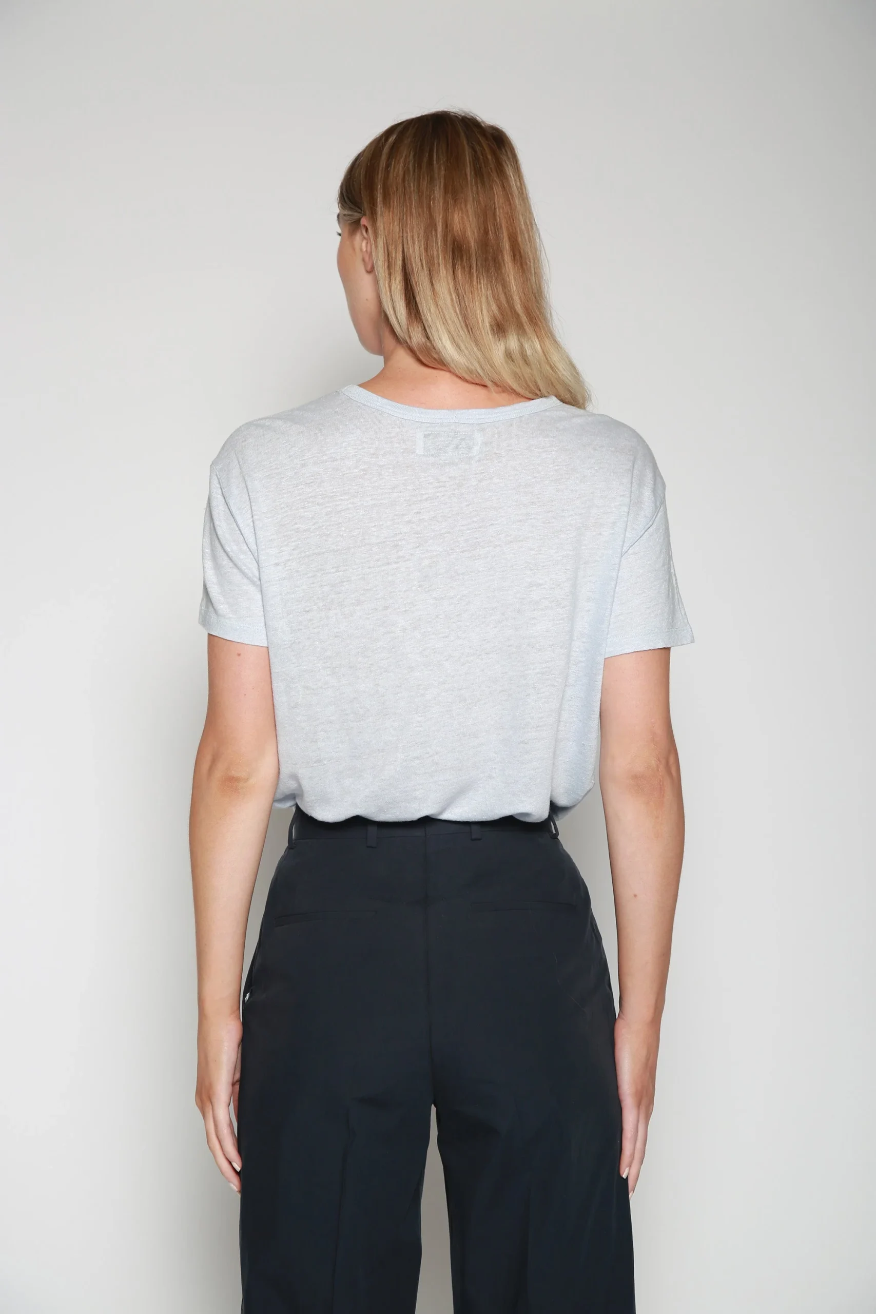 Playera Tara Linen Azul Claro , marca Officine Générale. CONSULTAR COMPOSICIÓN Y CUIDADOS EN ETIQUETA INTERNA.
