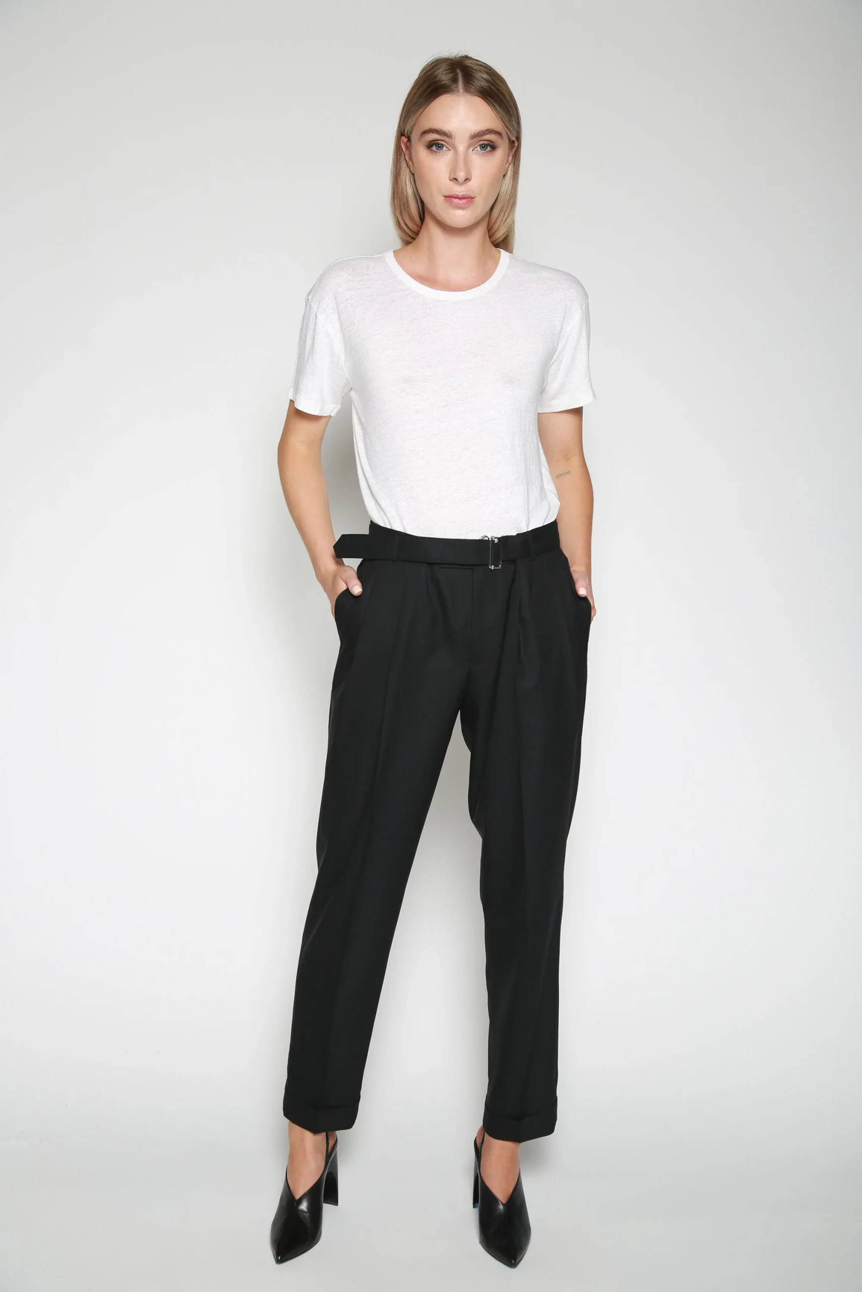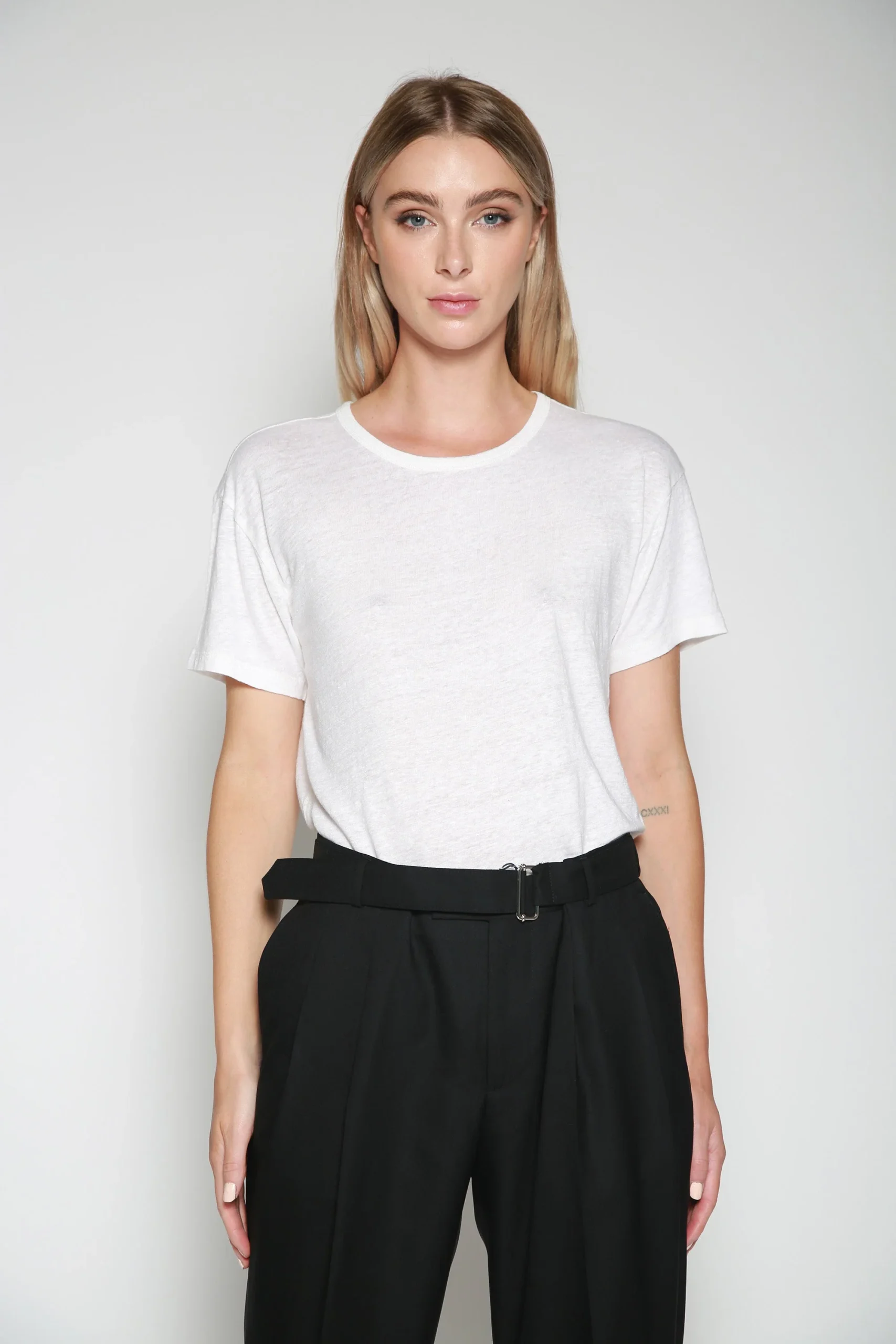 Playera Tara Linen Blanco , marca Officine Générale. CONSULTAR COMPOSICIÓN Y CUIDADOS EN ETIQUETA INTERNA.