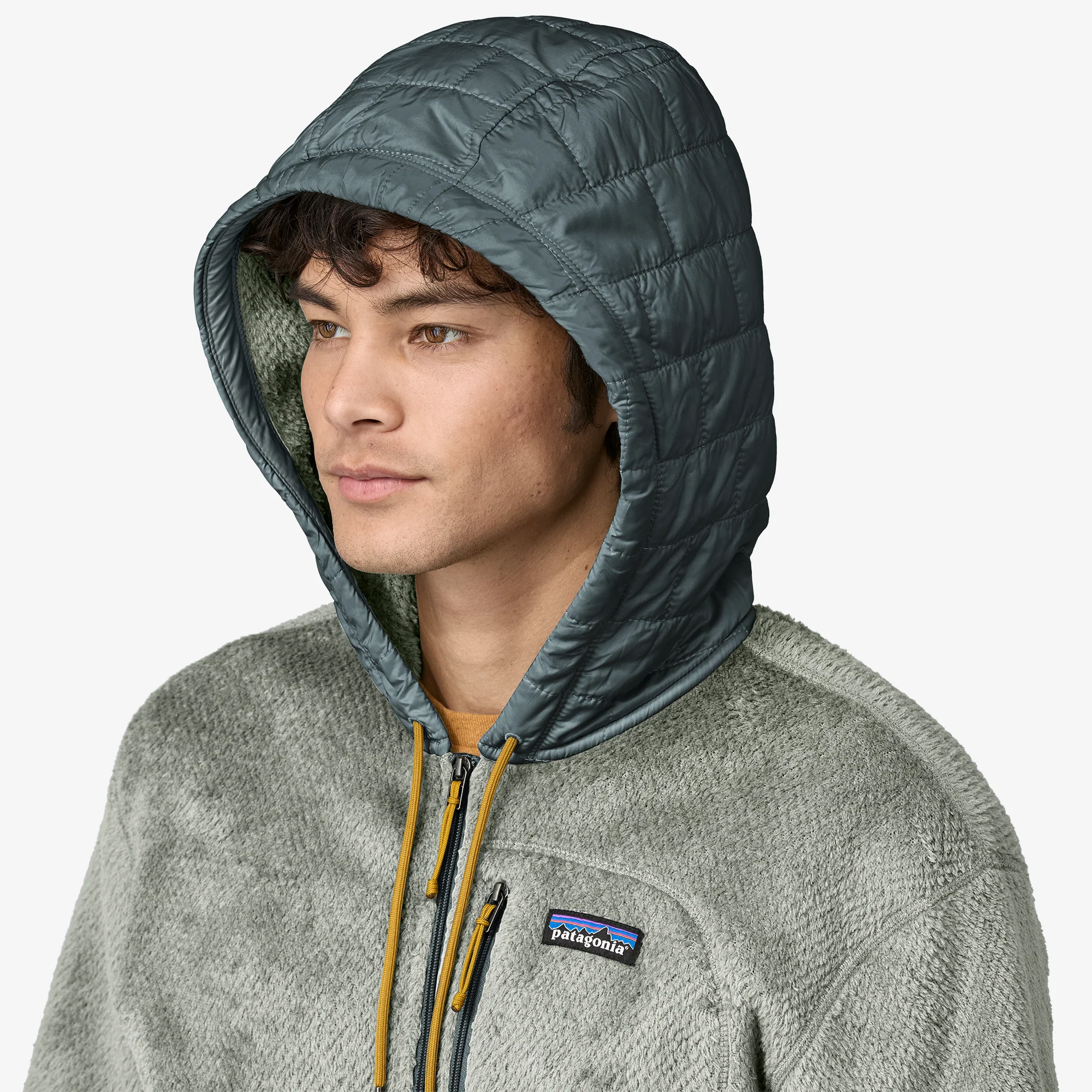 - Parte superior: 7,8-Oz (221,12-g) 100% polar de poliéster reciclado. Parte inferior y Gorro: 1,4-Oz (39,68-g) 100% ripstop de poliéster reciclado de 20 denier con acabado DWR sin PFC (repelente al agua duradero que no contiene productos químicos perfluorados). Aislamiento en parte inferior y Gorro: Aislamiento térmico PrimaLoft® Gold Insulation Eco de 60 gramos, poliéster reciclado 100% posconsumo con tecnología P.U.R.E.™ (producida generando emisiones de carbono reducidas). Las telas cuentan con certificado de aprobación por Bluesign®. Hecho en una fábrica que cuenta con Certificación Fair Trade™.