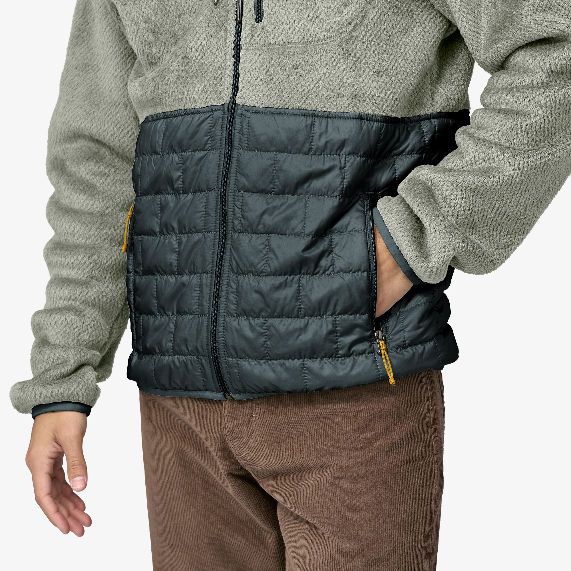 La mitad superior está hecha de polar de poliéster 100% reciclado Re-Tool; la inferior, de ripstop de poliéster 100% reciclado impermeabilizante para plumas con relleno térmico PrimaLoft® Gold.