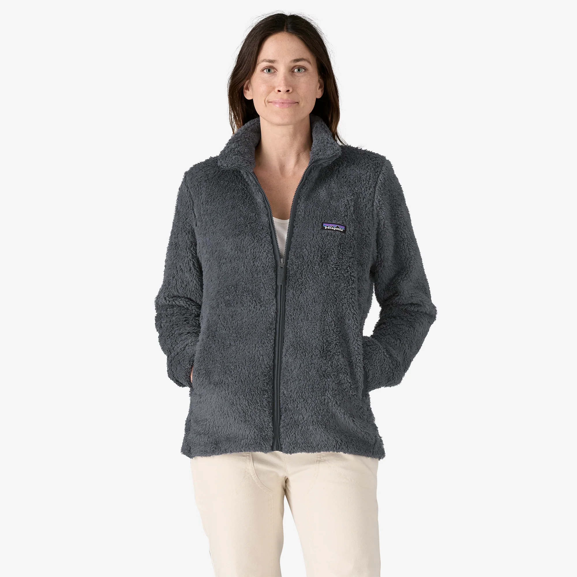 - Cuerpo: 8.6-oz (243.8)-g 100% poliéster reciclado de pelo alto, polar de doble cara. Ribete y forro: tejido liso 100% poliéster reciclado de 2.3-oz (65.2-g) con un acabado DWR (repelente al agua duradero). El tejido del cuerpo tiene certificado de aprobación por bluesign®. Con certificación Fair Trade™.