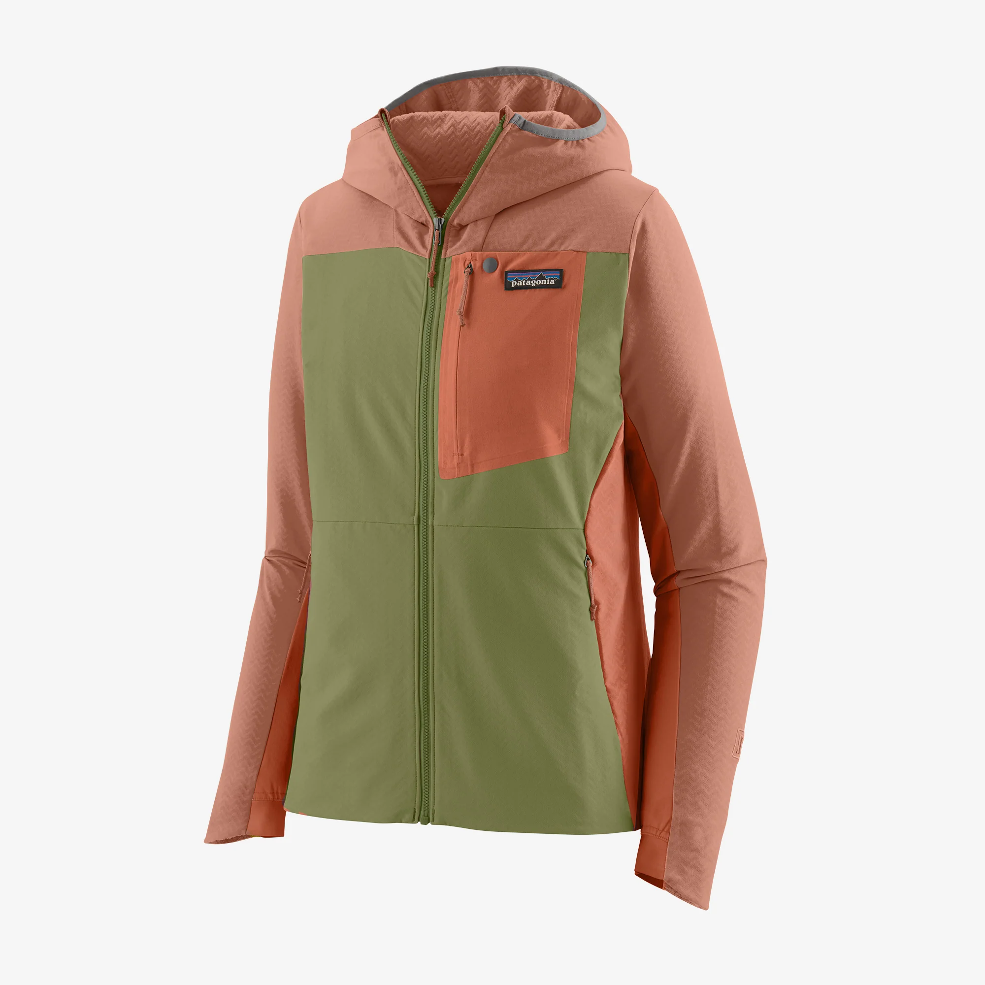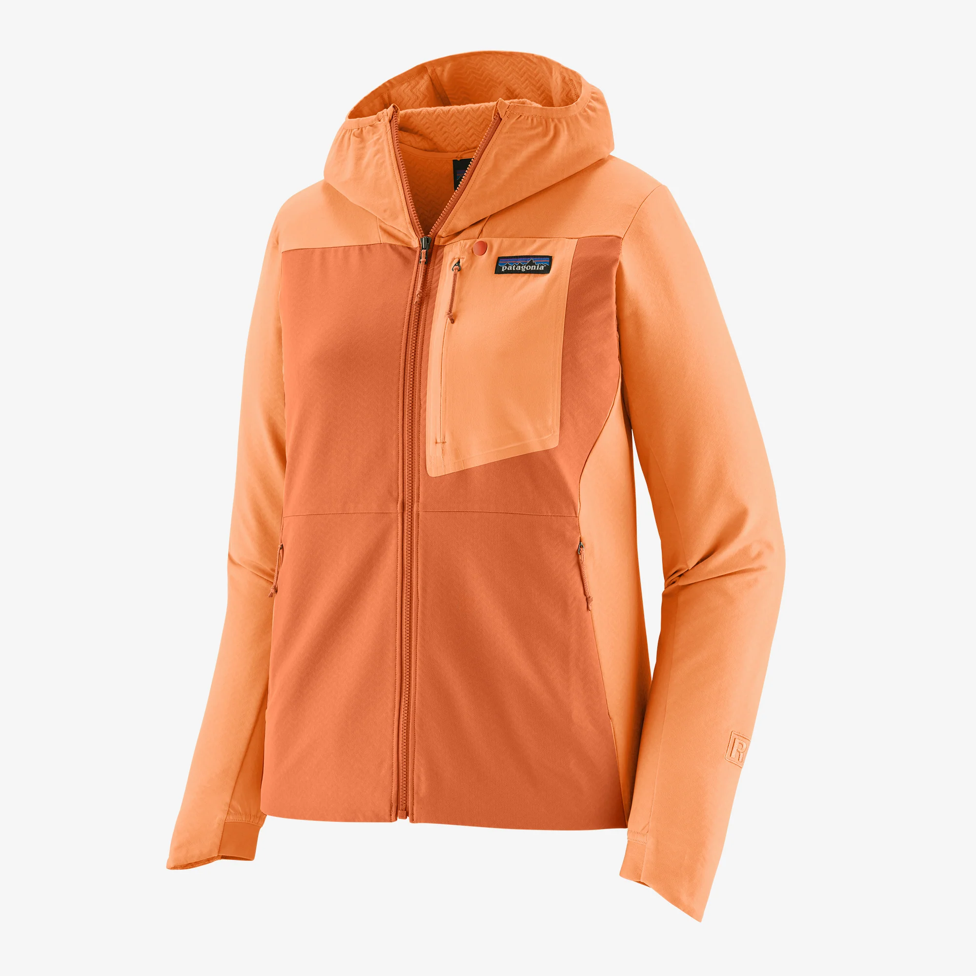 • 167 g de 90% poliéster reciclado/10% spandex tejido doble elástico y respirable con un acabado repelente duradero al agua (DWR) hecho sin productos químicos perfluorados (PFCs/PFAS). La tela está certificada como aprobada por bluesign®. Hecho en una fábrica certificada por Comercio Justo. Instrucciones de cuidado: Lavar a máquina con agua fría, No usar blanqueador, Secar en secadora a baja temperatura, No planchar.