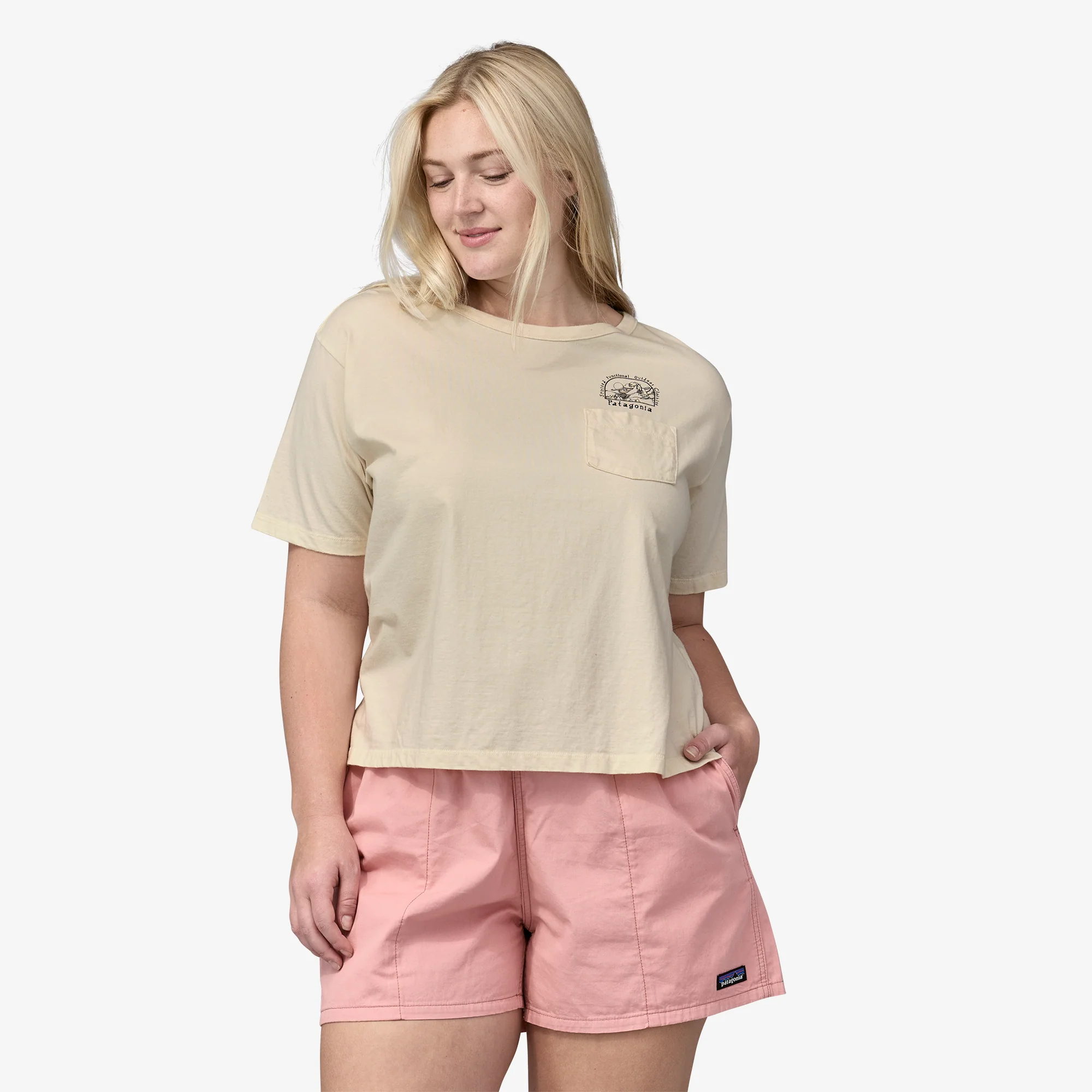 Camiseta holgada de corte cuadrado con mangas ligeramente largas, bolsillo en el pecho y dobladillo recto