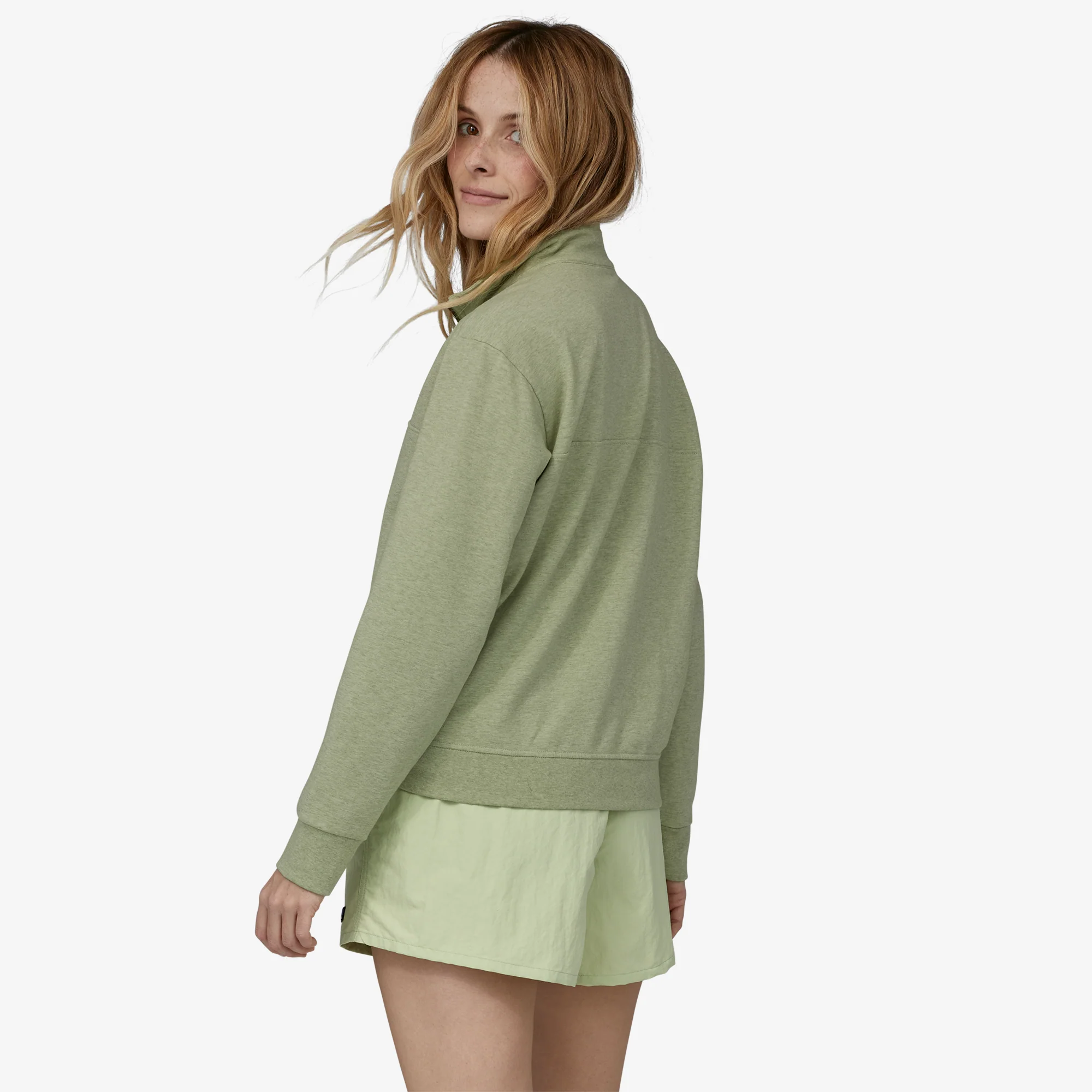 El cuerpo está hecho con pólar 57% algodón Orgánico Regenerativo Certificado™/38% poliéster reciclado/5% spandex; puños y bastilla son de punto canelé 53% algodón Orgánico Regenerativo Certificado/36% poliéster reciclado/11% spandex