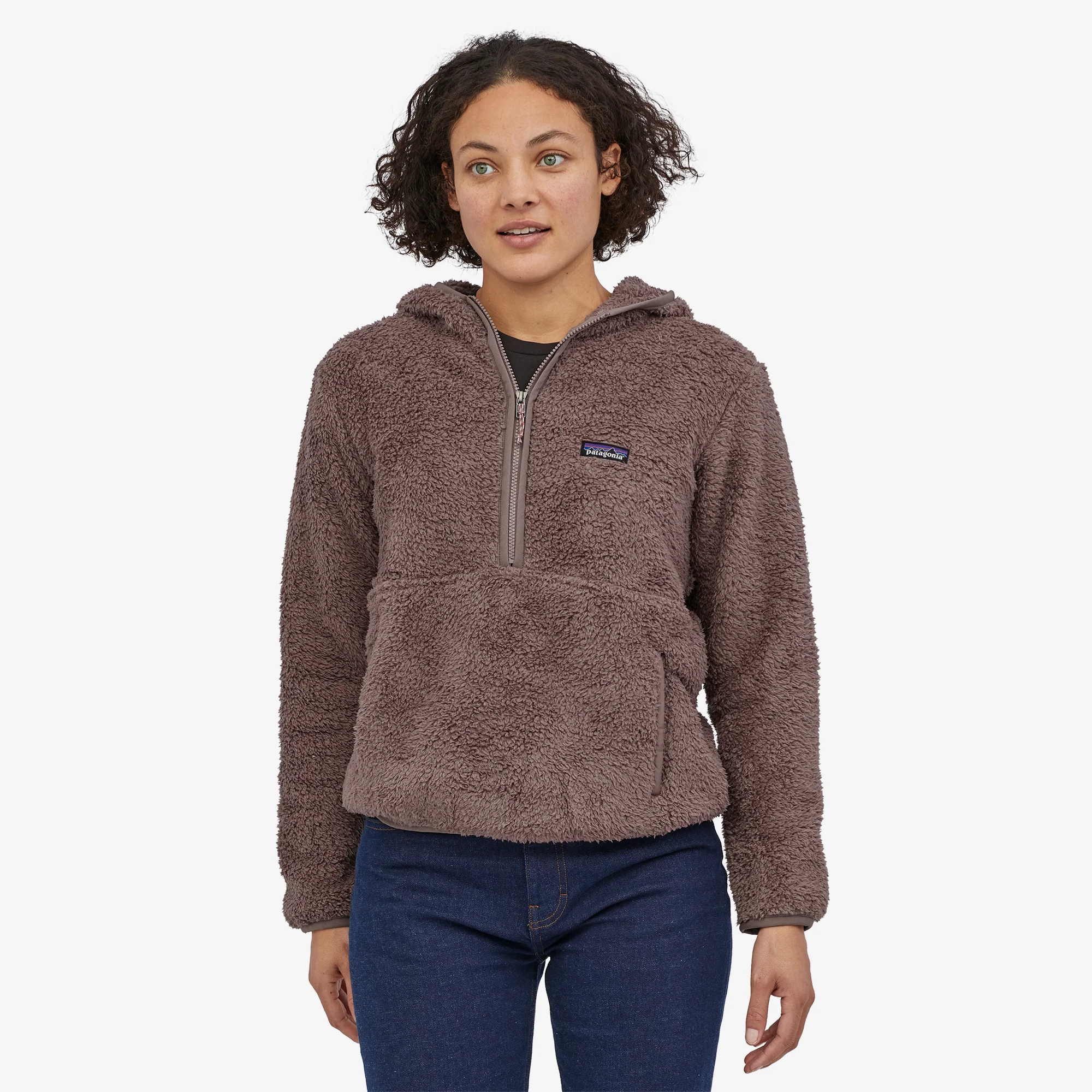 • Cuerpo: 8,6-oz 100% poliéster reciclado de pelo alto, polar de doble cara. Ribete: tejido liso 100% poliéster reciclado de 2,3-oz con un acabado DWR (Repelente al agua duradero). Forro del bolsillo: malla cepillada de punto por urdimbre 100% poliéster reciclado de 3.5-oz (141,7-g). El tejido del cuerpo está certificado como aprobado por bluesign®. Con Certificación Fair Trade™