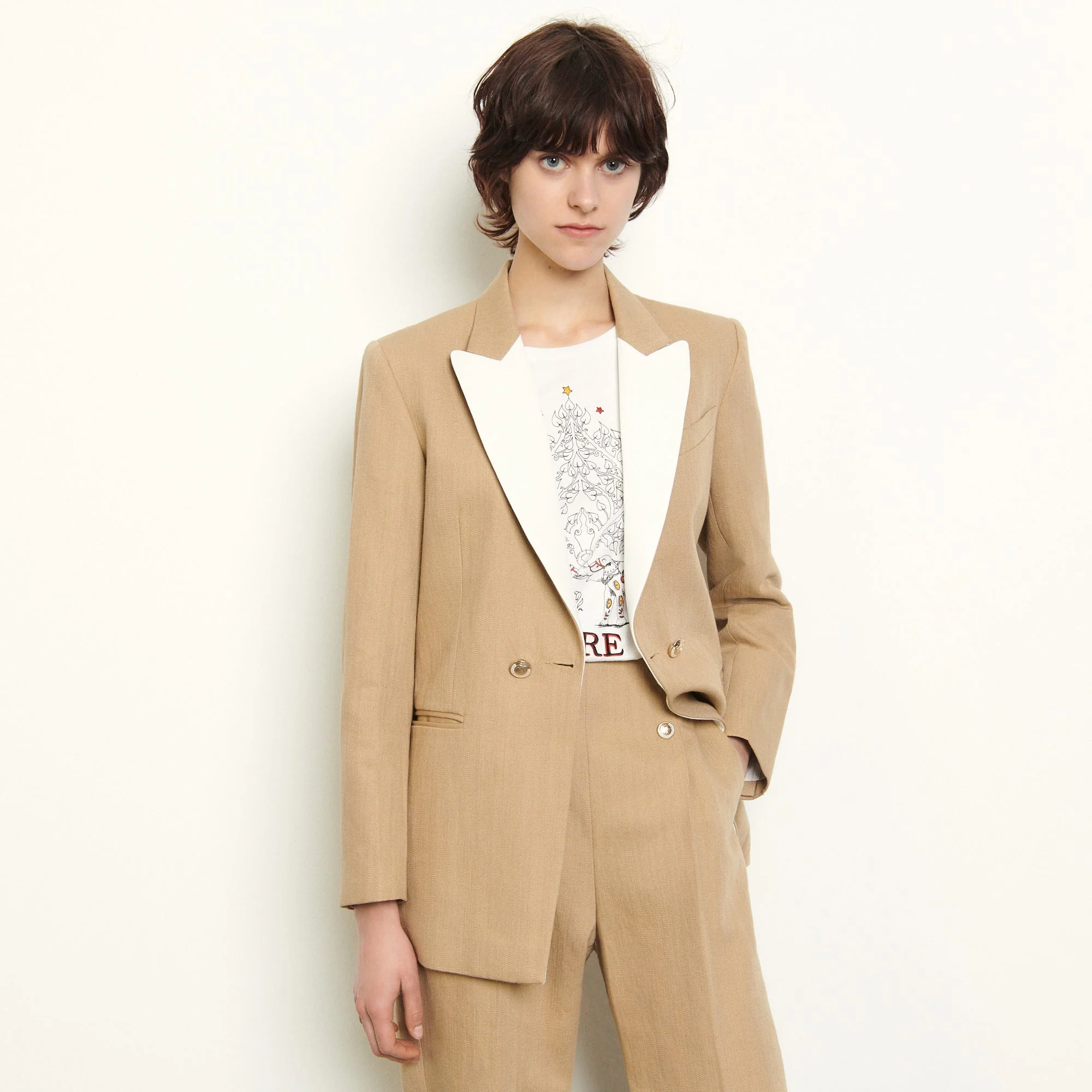 Saco Parise Camello, marca Sandro.