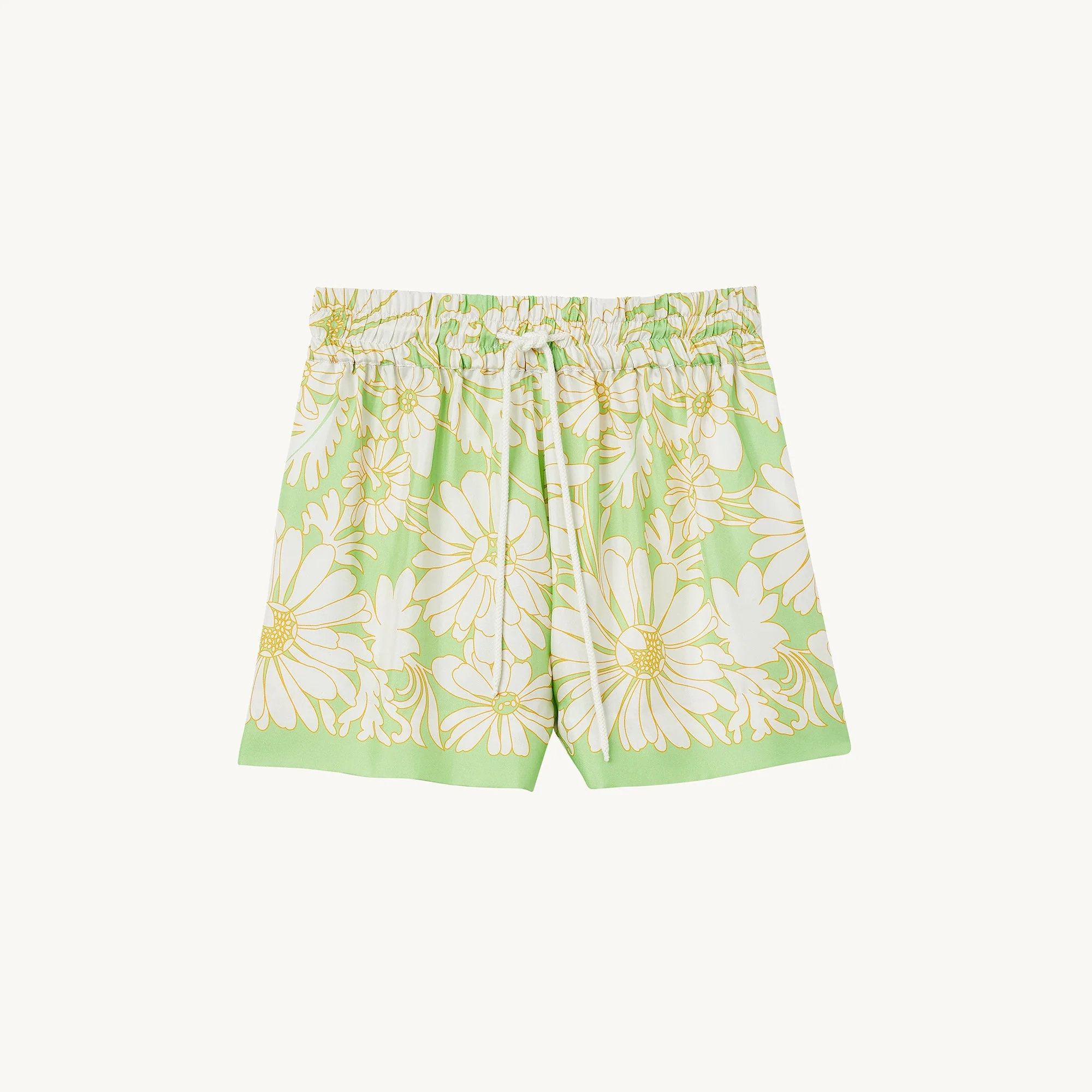 Short ancho tipo boxer con cintura con cordón corredizo, sublimado con un estampado Daisy.