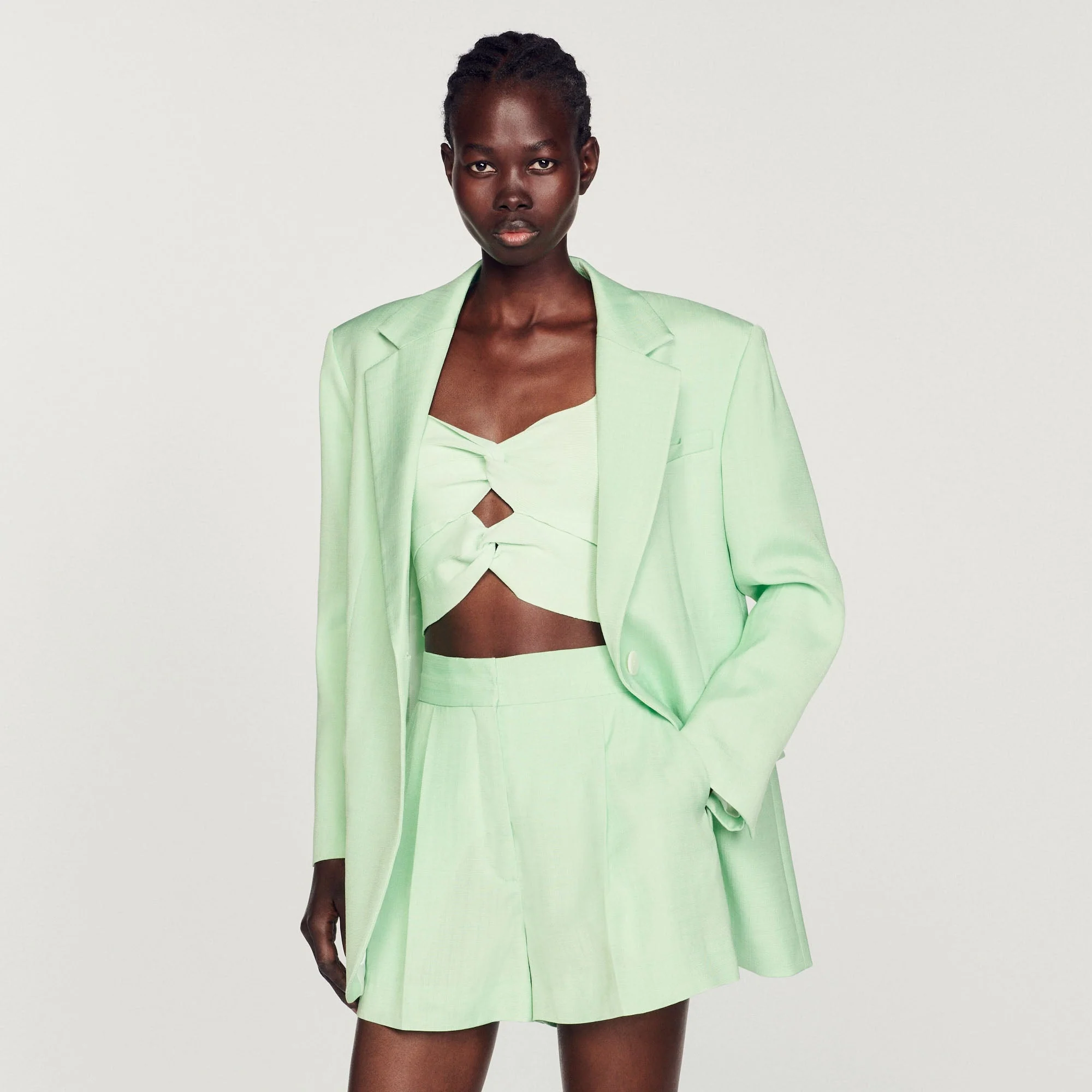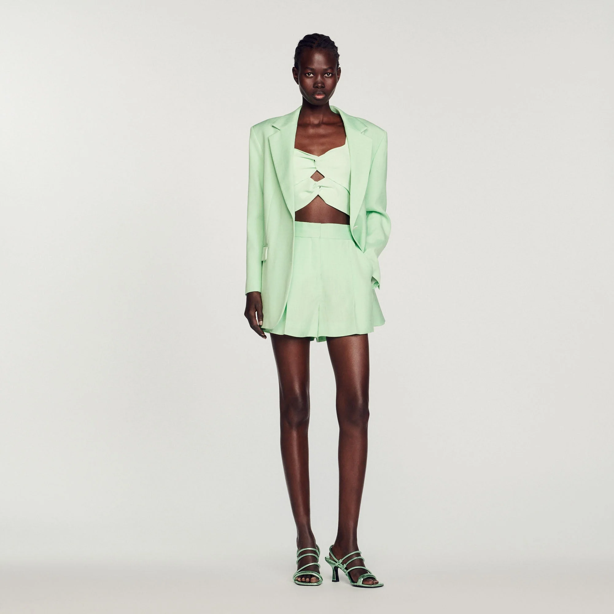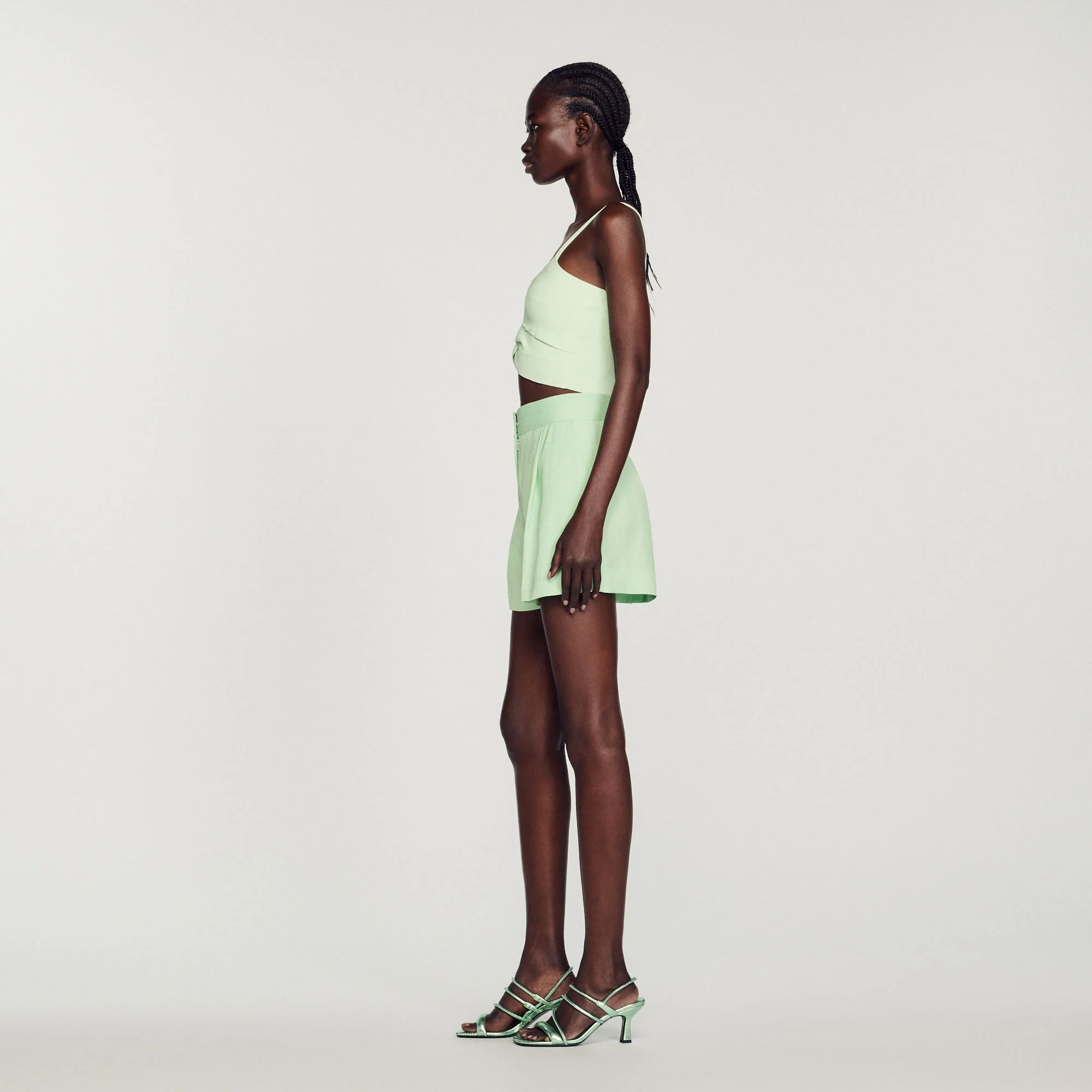 • Cierre de corchetesLa modelo mide 178 cm y lleva la talla 36Short a juego con la