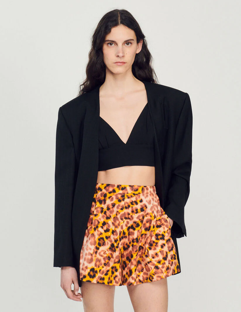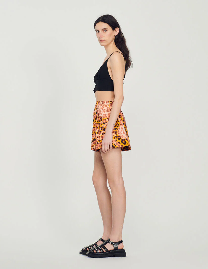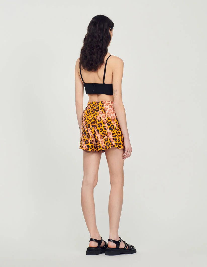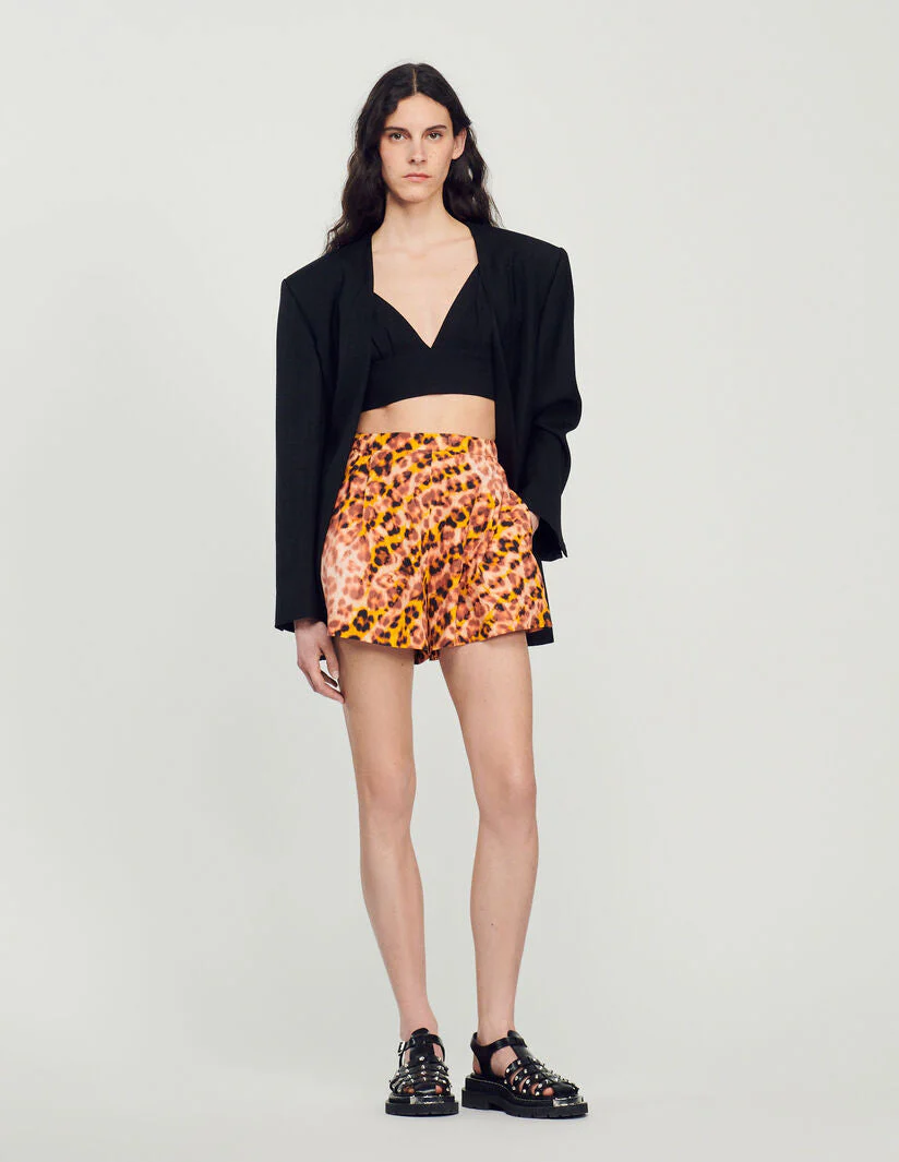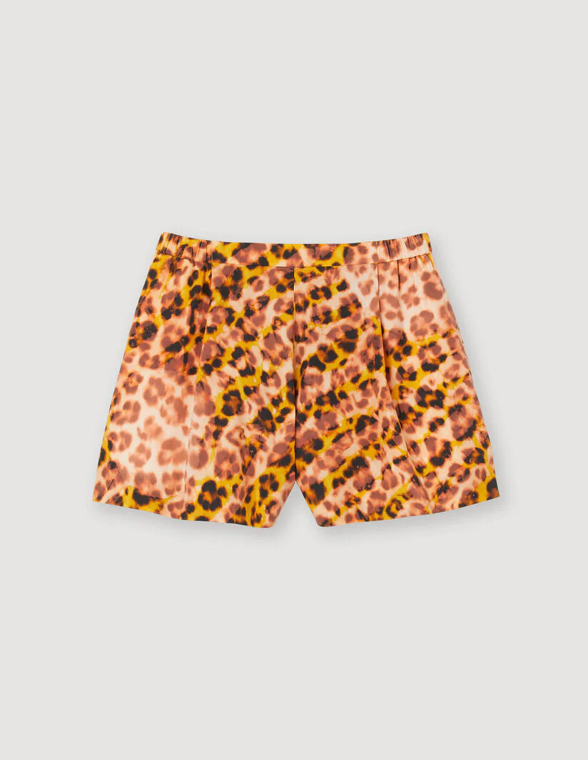 Short ancho de corte recto con pinzas amplias, sublimado con un estampado de leopardo.• Short con estampado de leopardo Sandro de mujer