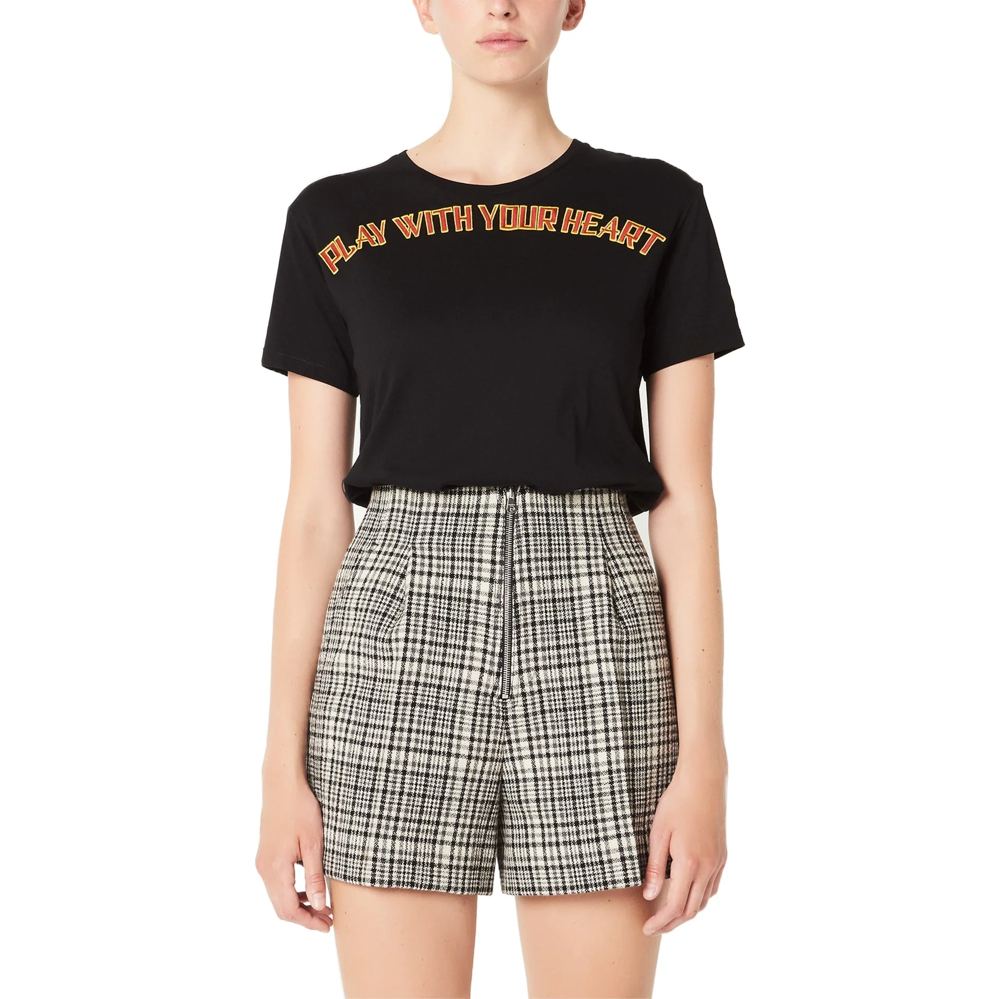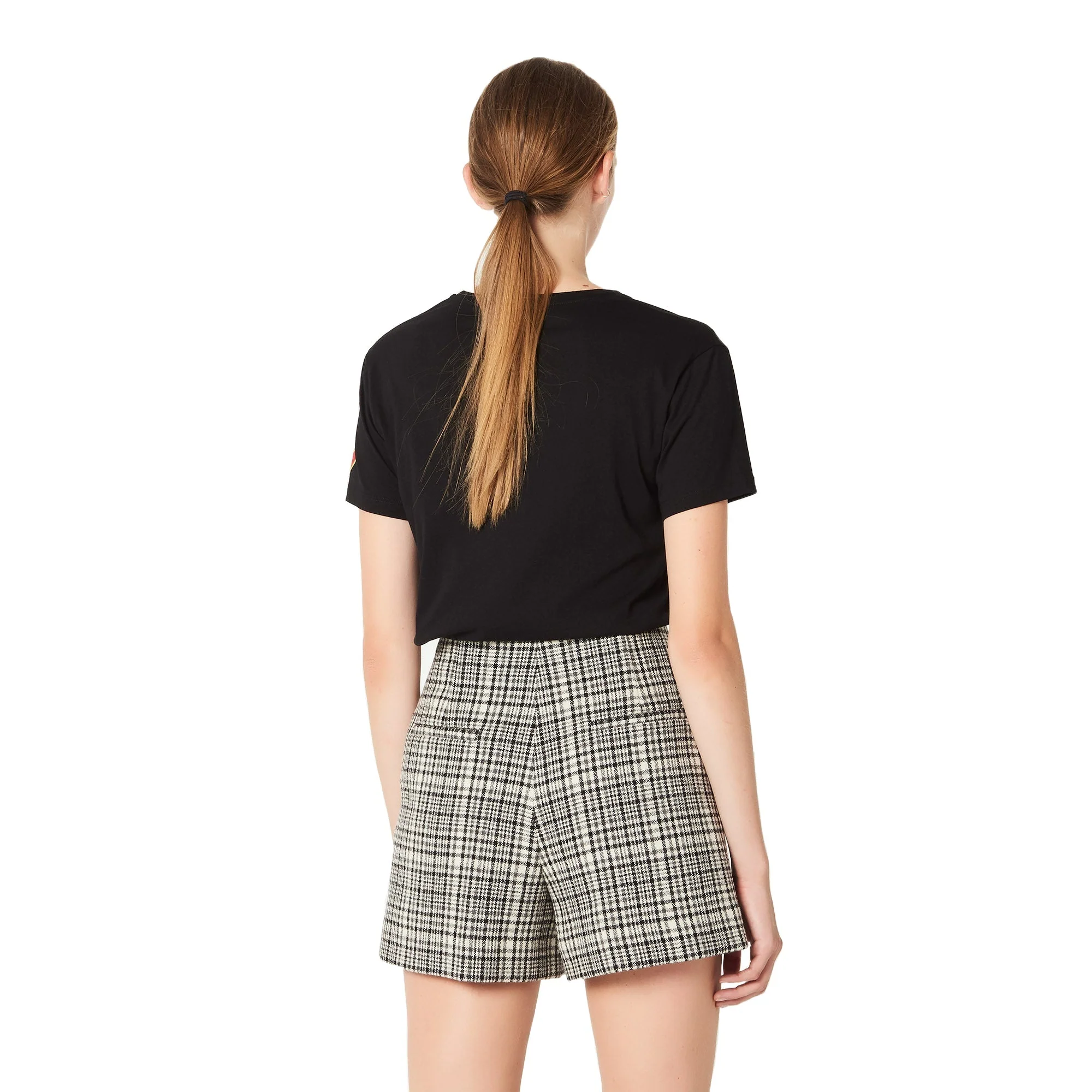 SHORT EN TELA DE CUADROS, MARCA SANDRO. 65% LANA, 30% POLIAMIDA, 5% OTRAS FIBRAS. LIMPIEZA EN SECO PROFESIONAL. REVISAR ETIQUETA INTERNA DE LAVADO PARA MÁS INFORMACIÓN..