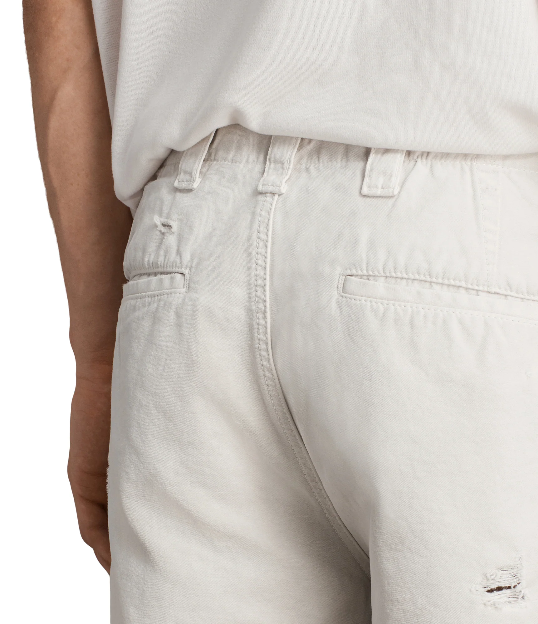 SHORT PALM, MARCA ALLSAINTS. SHORT TROUSER BOLSILLOS LATERALES, GRIS MARFIL. 97% ALGODÓN, 3% ELASTANO. LAVAR A MÁQUINA AL REVÉS.