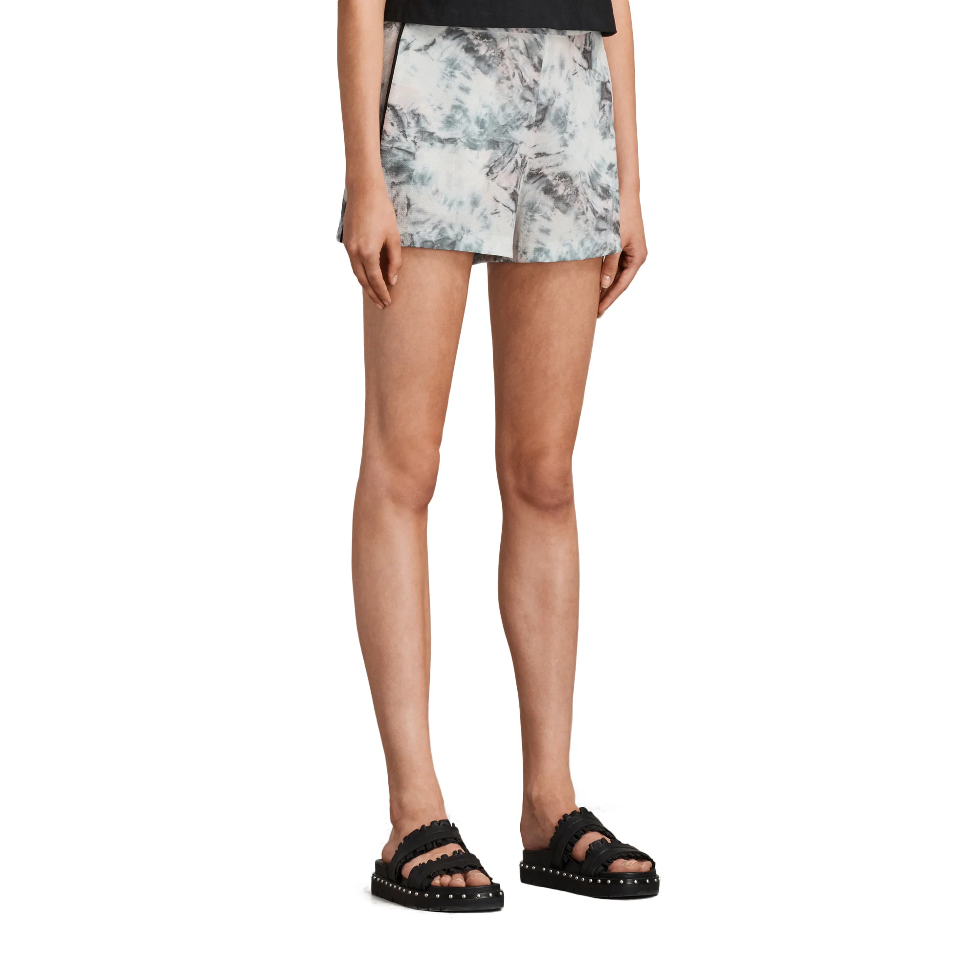 SHORT EMEN TYDE, MARCA ALLSAINTS. SHORT CORTE FLUÍDO CON FRANJAS LATERALES A CONTRASTE. 100% VISCOSA. LAVADO EN SECO.