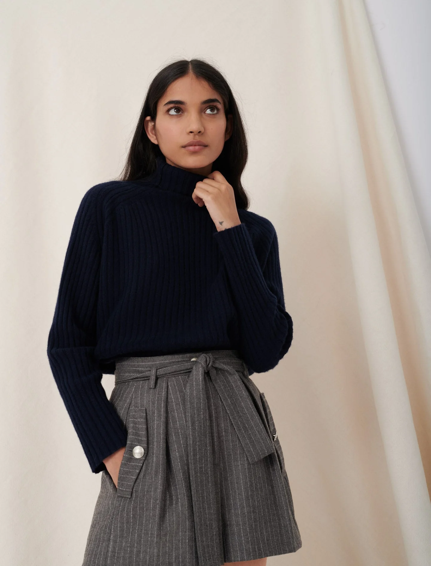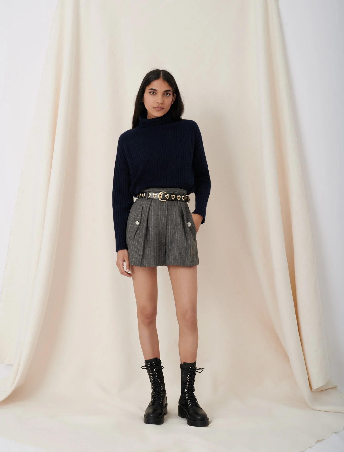 Short de rayas estilo tenis con cinturón desmontable y anudado. Rebosa elegancia, se lleva por la cintura y está fabricado con una mezcla de tejidos cálidos. Rayas estilo tenis Tiro alto