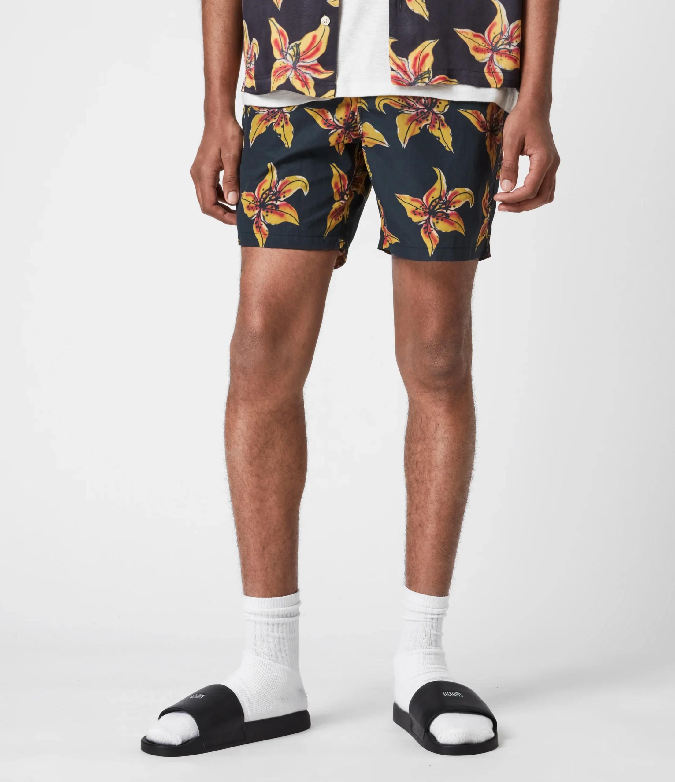 Shorts Hibiscus Black, marca AllSaints. Composición: 100% polyamide