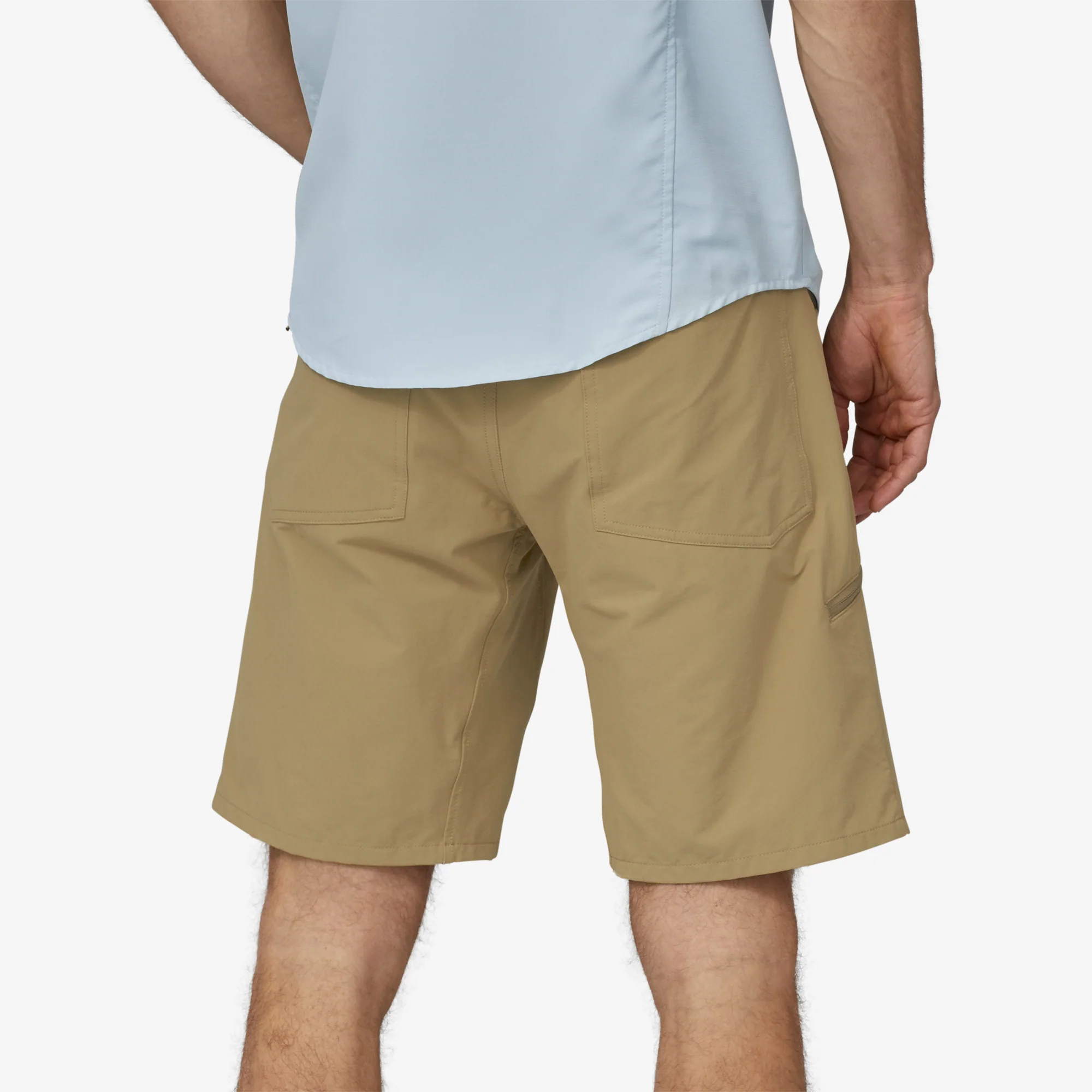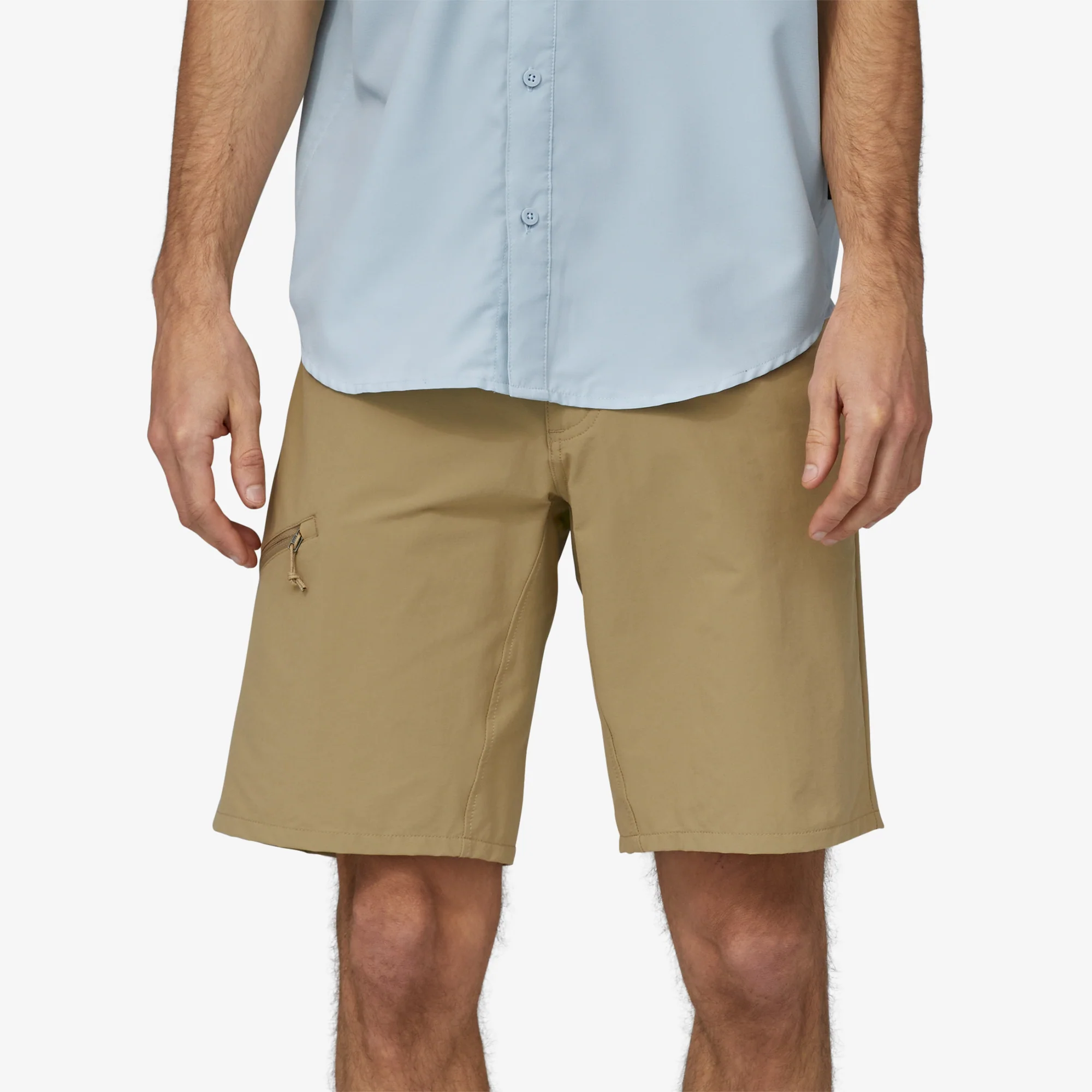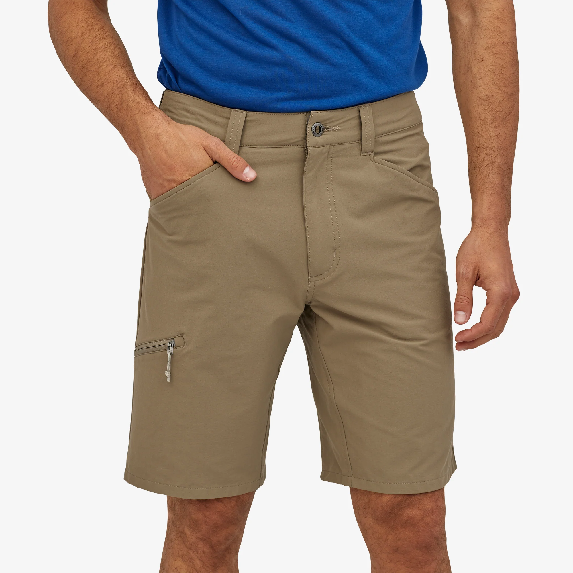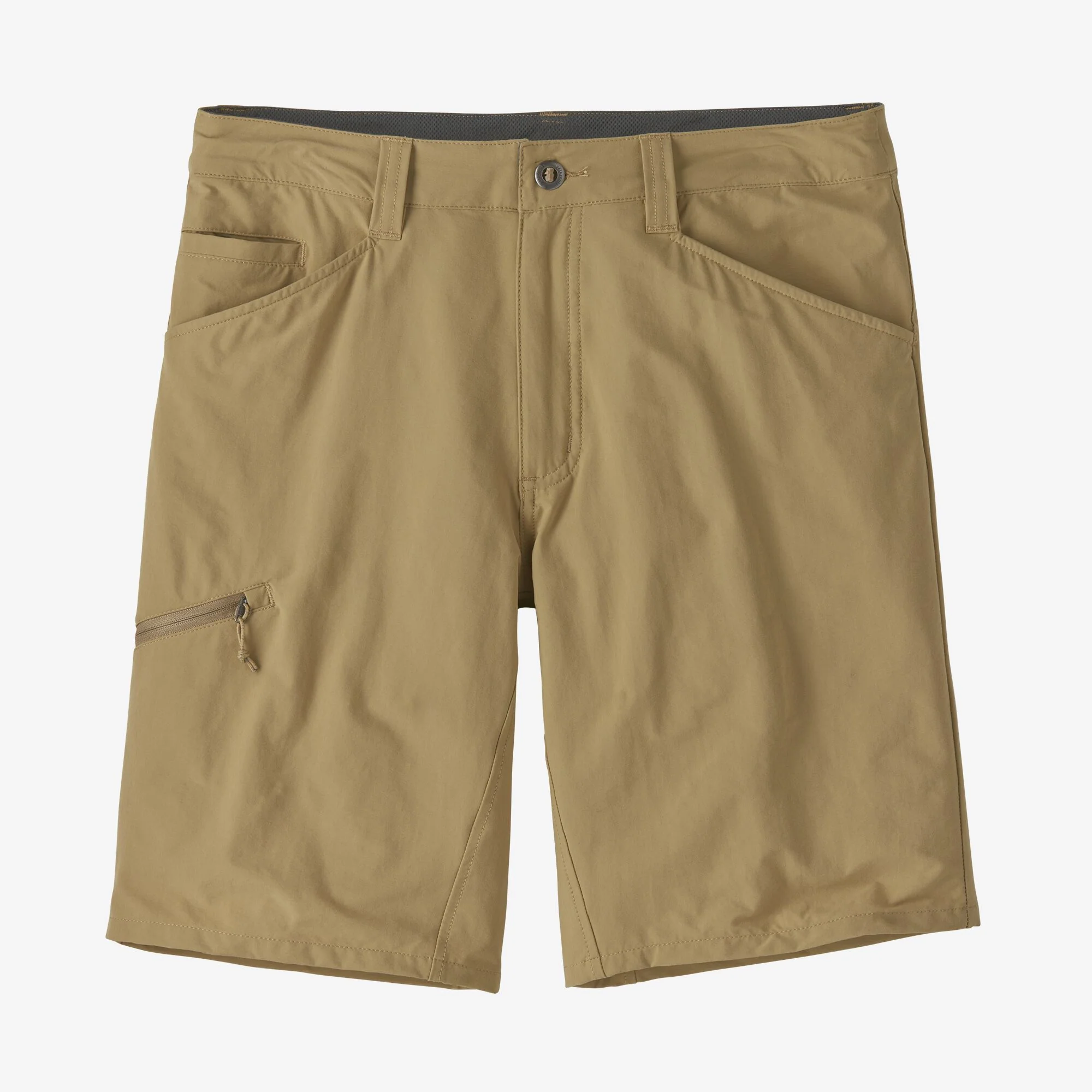 La pretina curva sigue la forma natural de las caderas y proporciona un ajuste contorneado para ayudar a mantener los pantalones cortos en su lugar durante el movimiento; cierre de botón de metal con cremallera