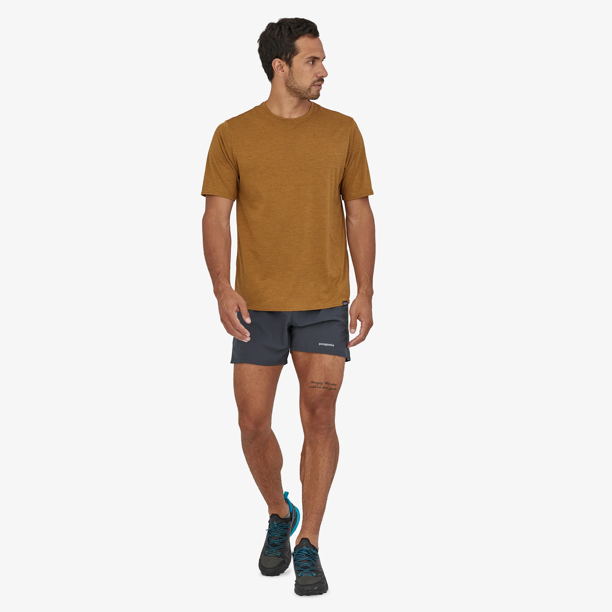 - Cuerpo: 1.9-oz 100% poliéster reciclado ripstop con un acabado DWR (repelente duradero al agua). Bolsillos: 3 oz 89% poliéster reciclado / 11% spandex tejido con un acabado DWR. Forro: crepé 100% poliéster (42% reciclado) de 2.7 oz con control de olor permanente Polygiene®. La tela está certificada por bluesign®.