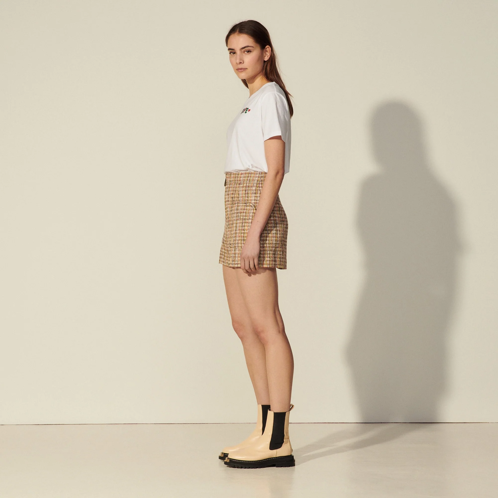 Short De Mujer Sandro • Short De Tweed • Cremallera En El Centro De La Parte Delantera Con Tirador Con Firma • Bolsillos Pespunteados En La Parte Delantera • Talle Alto • La Modelo Lleva La Talla 36Référence : Sfpsh00124 Composición Tejido Principal: 55% Algodón, 34% Poliéster, 9% Acrílico, 2% Nailon Forro: 100% Algodón Forro Cinturón: 100% Algodón