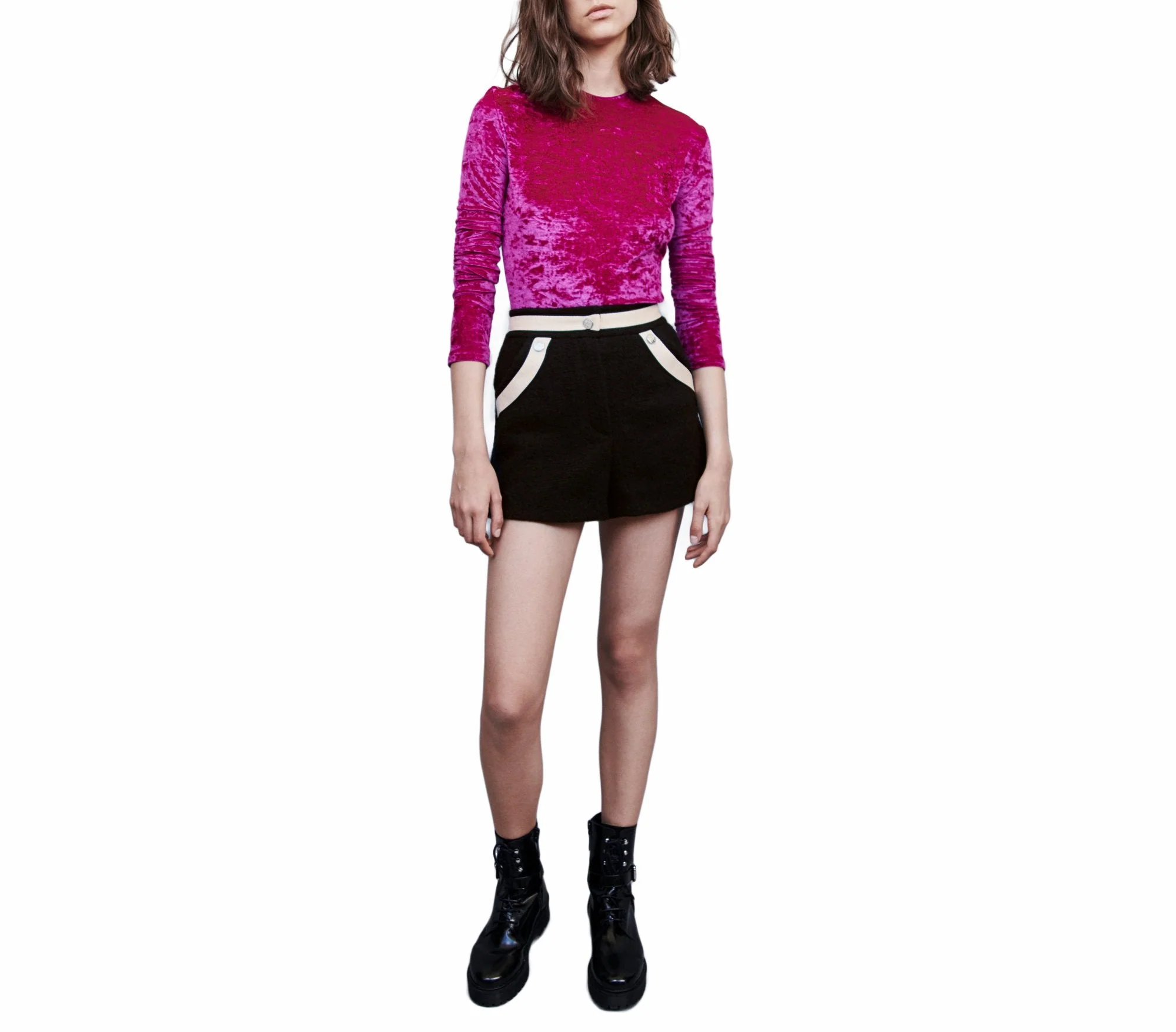 SHORT NEGRO, MARCA MAJE.CONSULTAR COMPOSICIÓN E INSTRUCCIONES DE LAVADO EN ETIQUETA INTERNA.