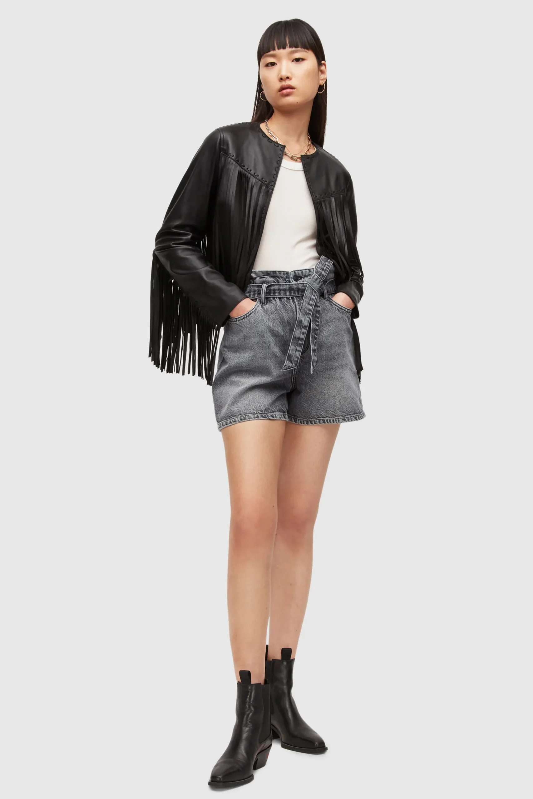 Shorts Palmer Negro, marca AllSaints. Composición: 60% Algodón 40% lyocell