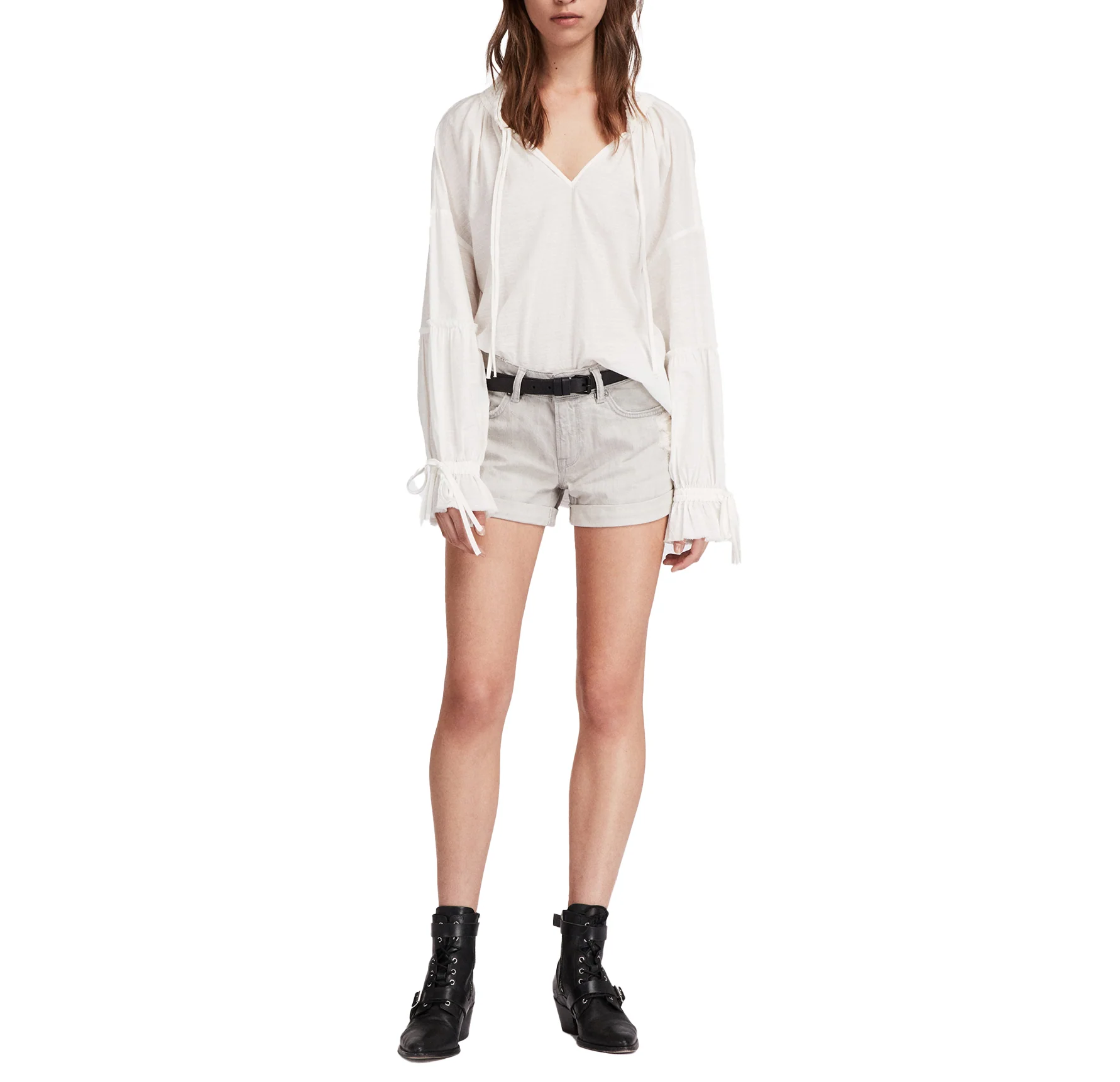 SHORT PAM, MARCA ALLSAINTS. SHORT DENIM CORTE REGULAR CON EFECTO DESGASTADO, DOBLADILLO Y TRABILLAS PARA CINTURON. 100% ALGODÓN. LAVAR A MÁQUINA AL REVÉS.