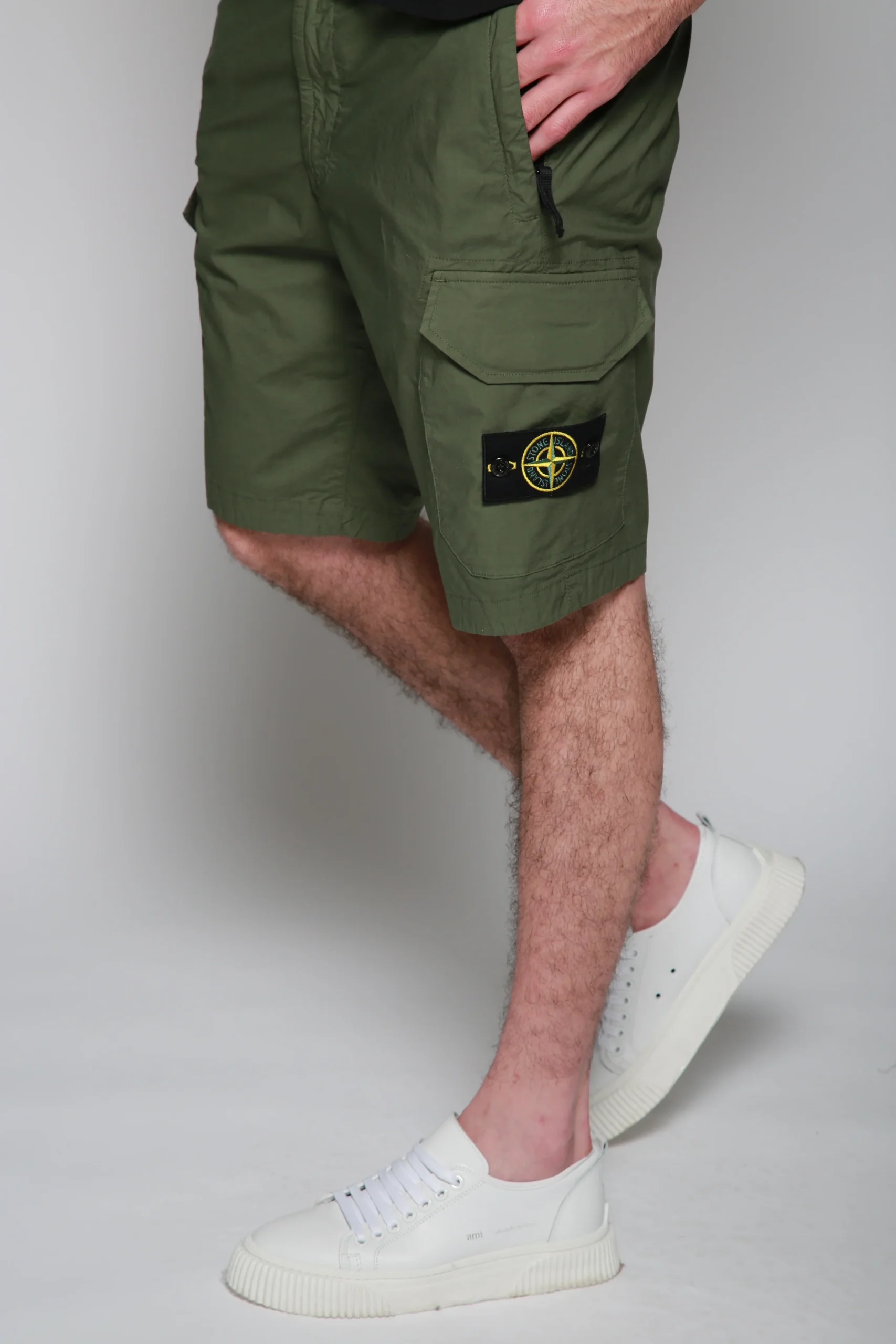 Shorts Verde para hombre, marca Stone Island. COMPOSICIÓN Y LAVADO: Consultar etiqueta interna.
